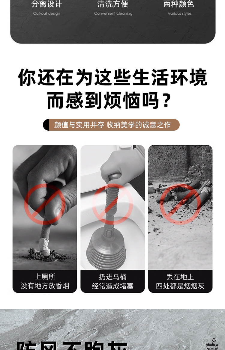 垃圾桶壁挂式烟灰缸创意厕所烟缸家用个性客厅卫生间带盖防飞灰