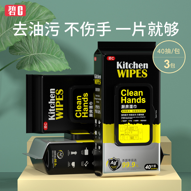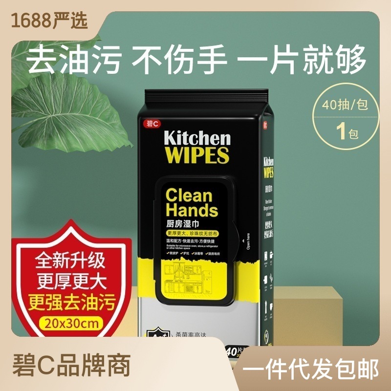 厂家碧c厨房清洁湿巾油烟机灶台擦去油污一次性湿纸巾加大加厚