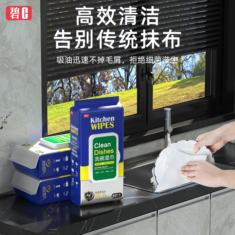 碧C厨房湿巾加大加厚去油去污家用油烟机清洁强力油污多功能湿纸