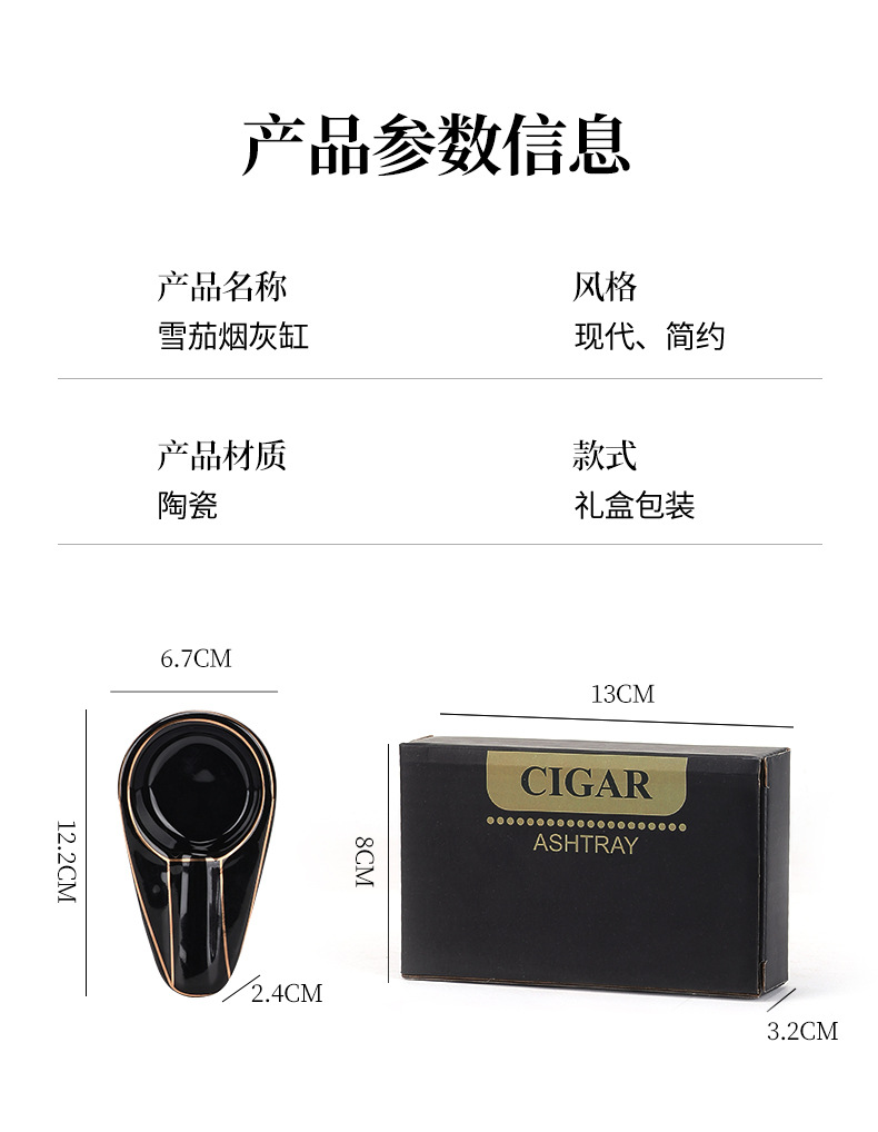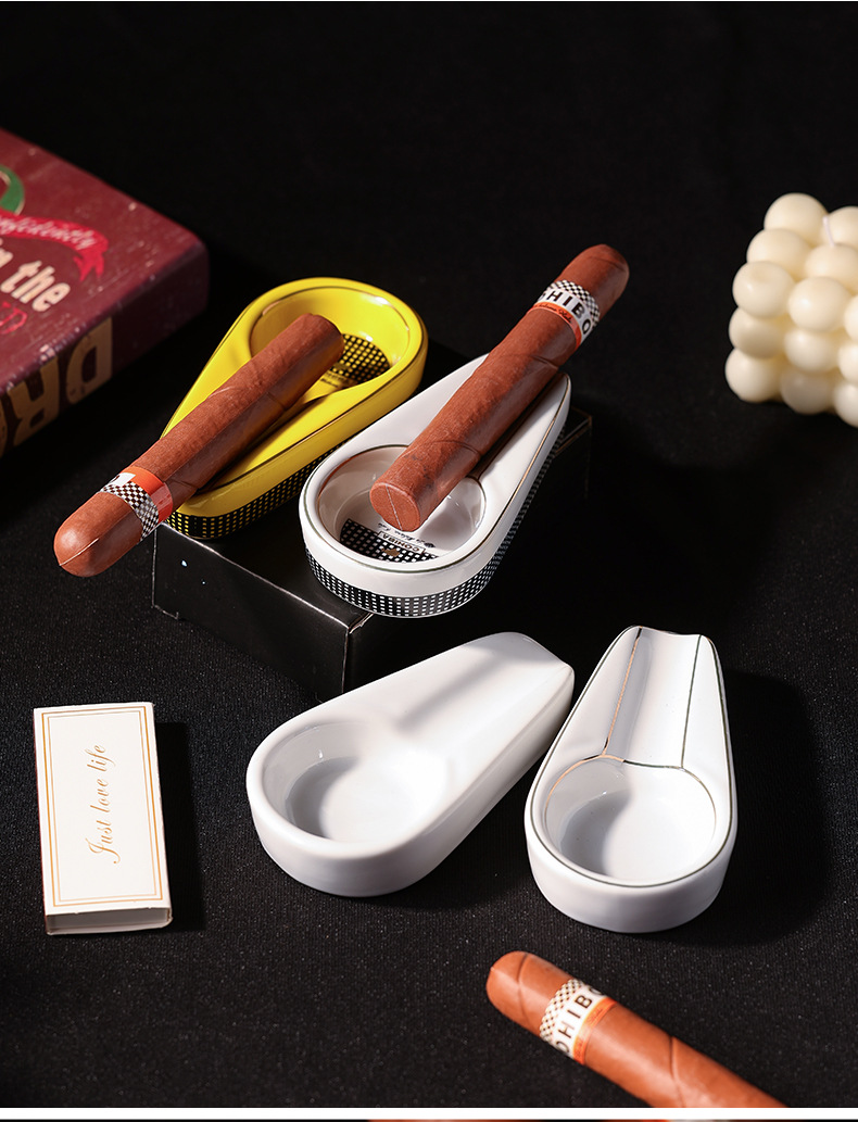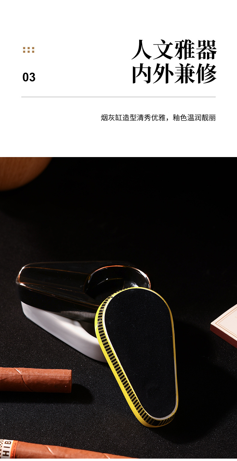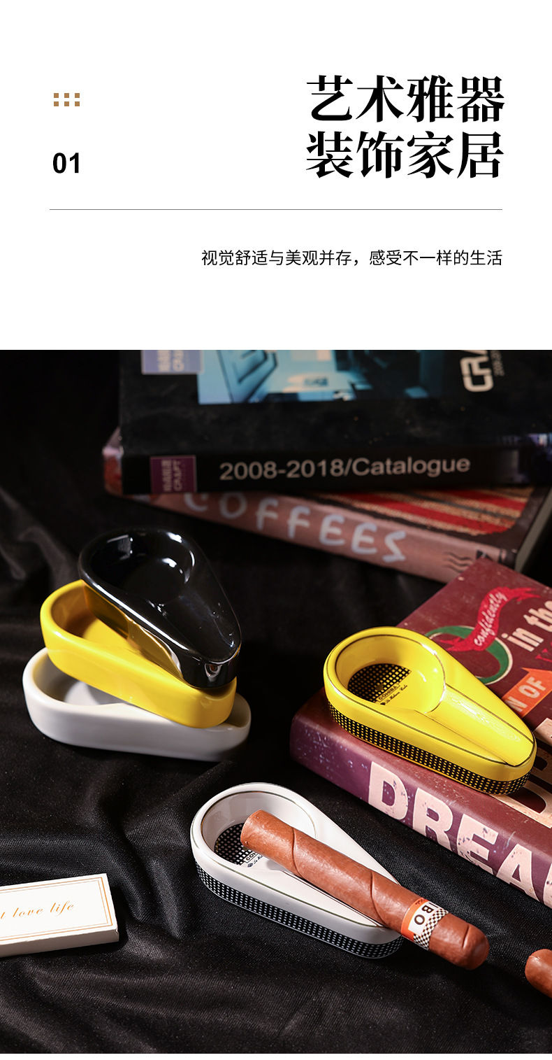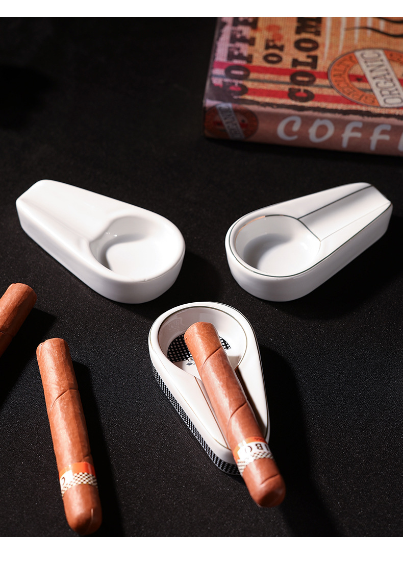 跨境欧式陶瓷雪茄烟灰缸高级感创意个性便携式家用办公室烟缸配件