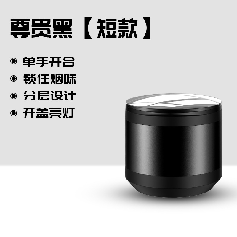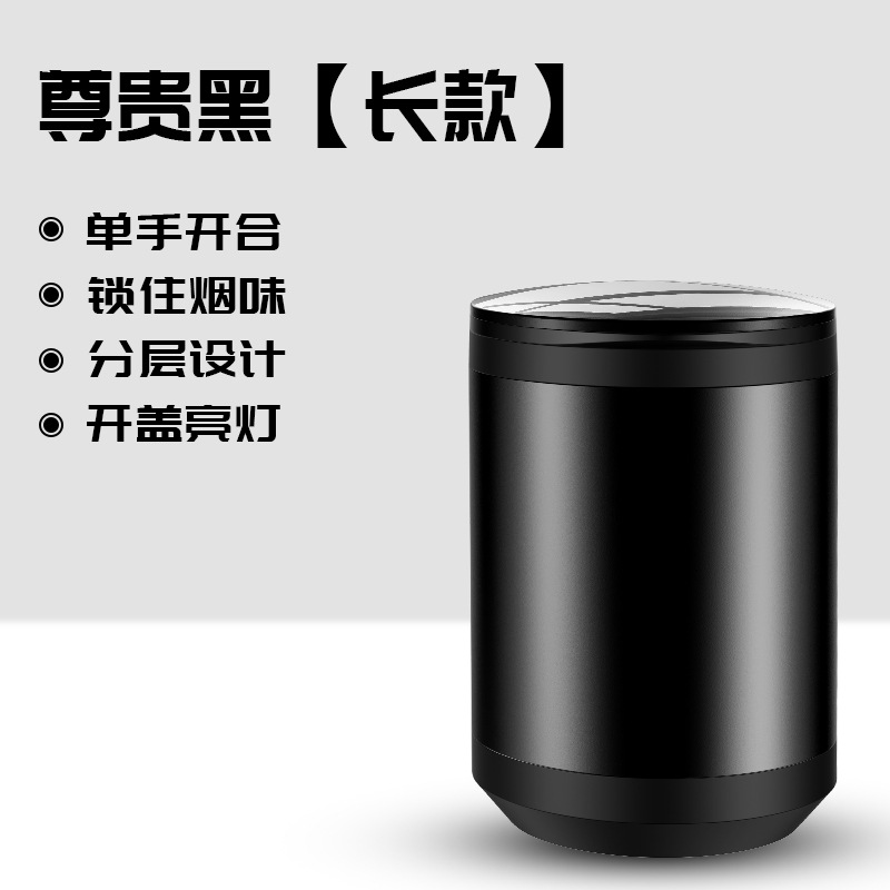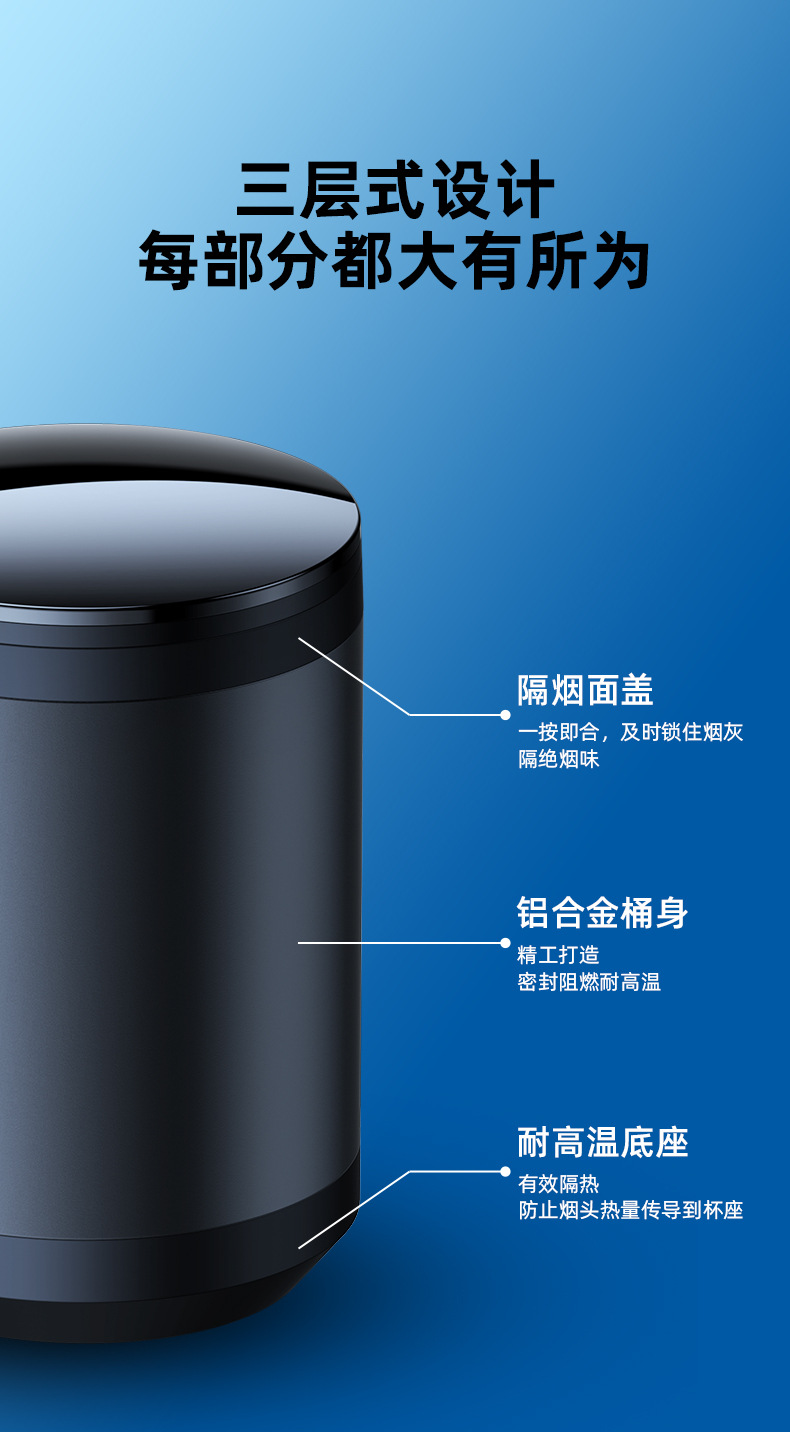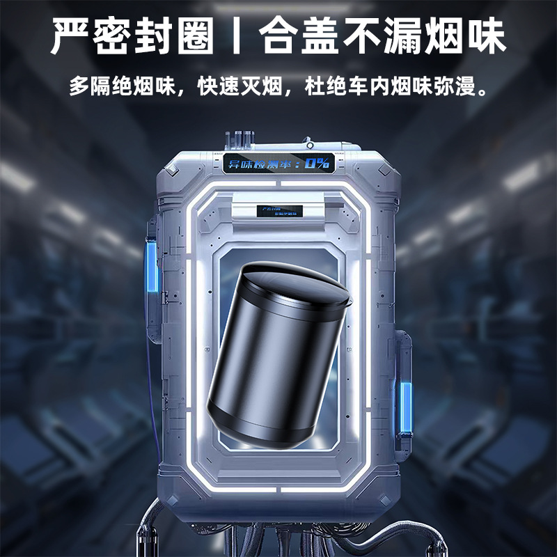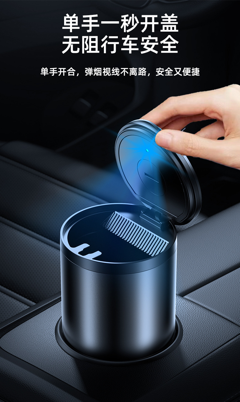 车载烟灰缸汽车高级感矮款防飞灰铝合金不锈钢带灯带盖带车标logo
