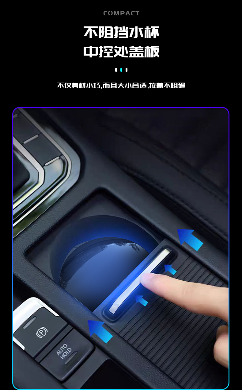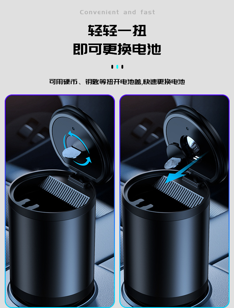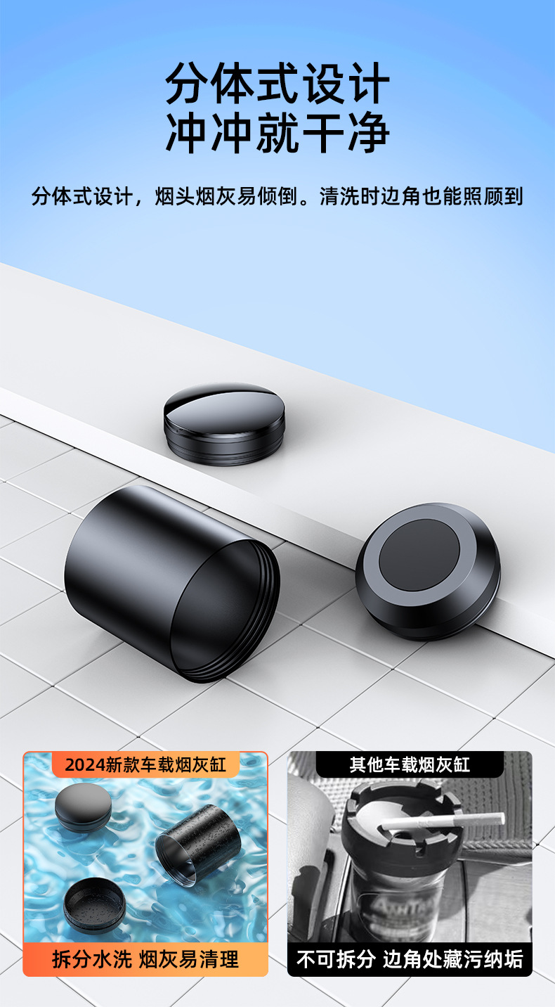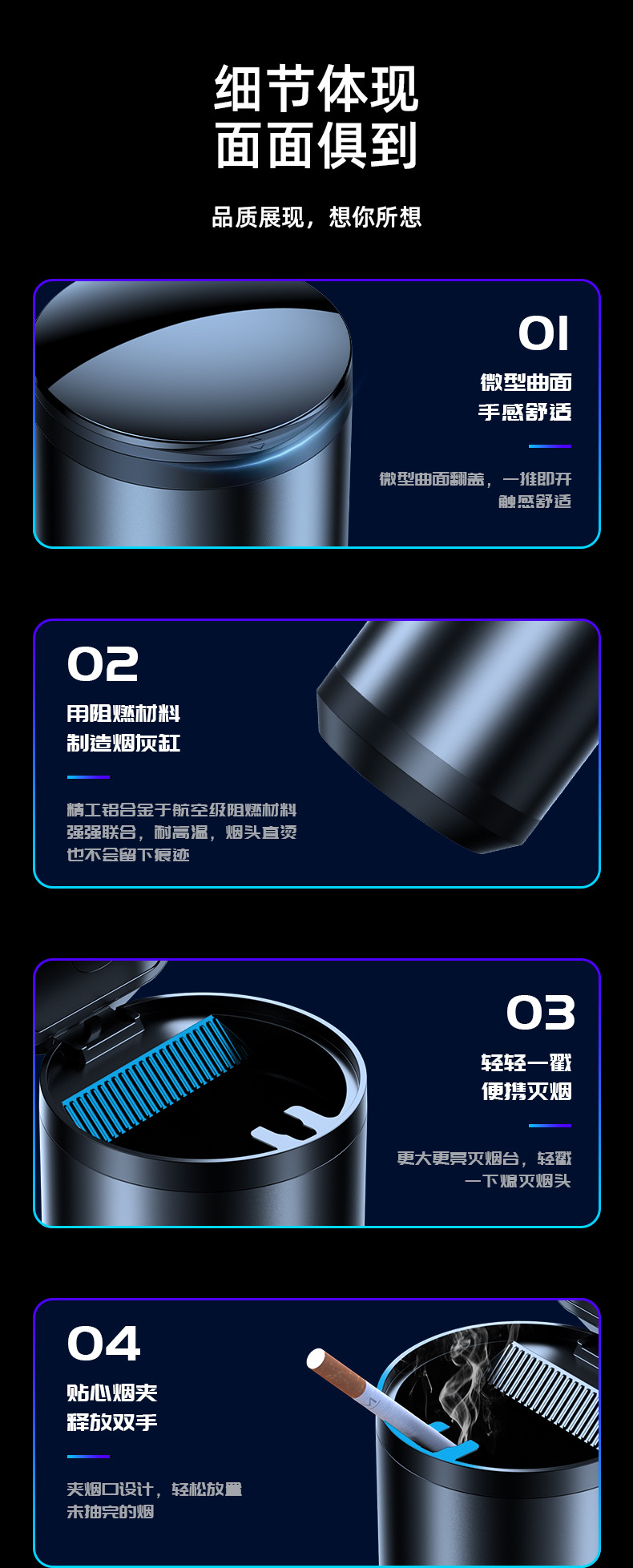 车载烟灰缸汽车高级感矮款防飞灰铝合金不锈钢带灯带盖带车标logo