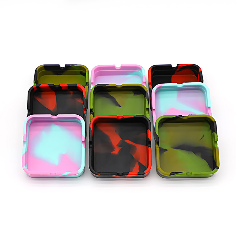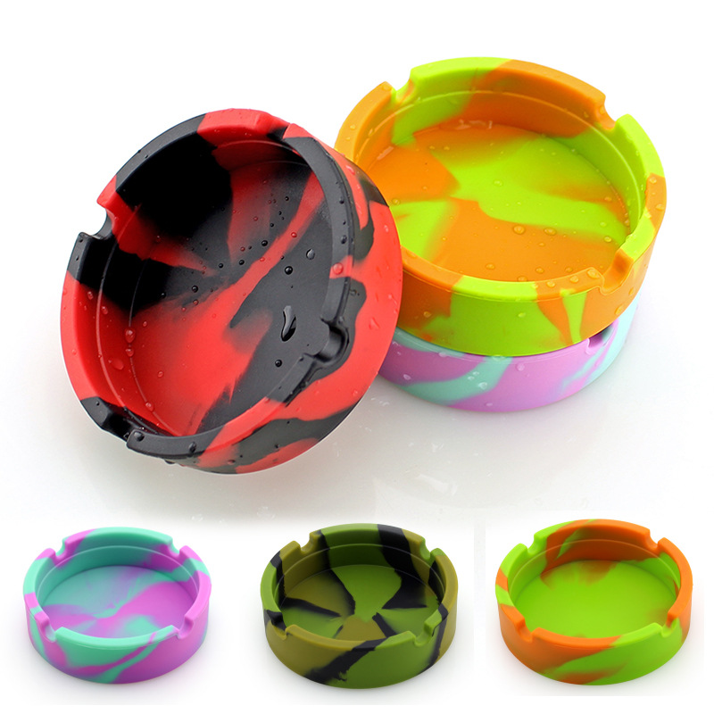 新款硅胶圆形烟灰缸 迷彩混色迷幻烟缸 烟灰盒烟盅印刷logo烟灰缸