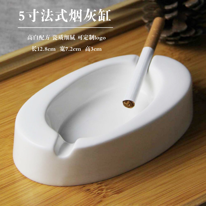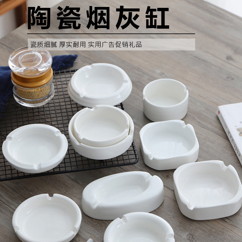简约白瓷大号陶瓷烟灰缸酒店网吧KTV餐馆牙签筒 烟灰缸定logo文字
