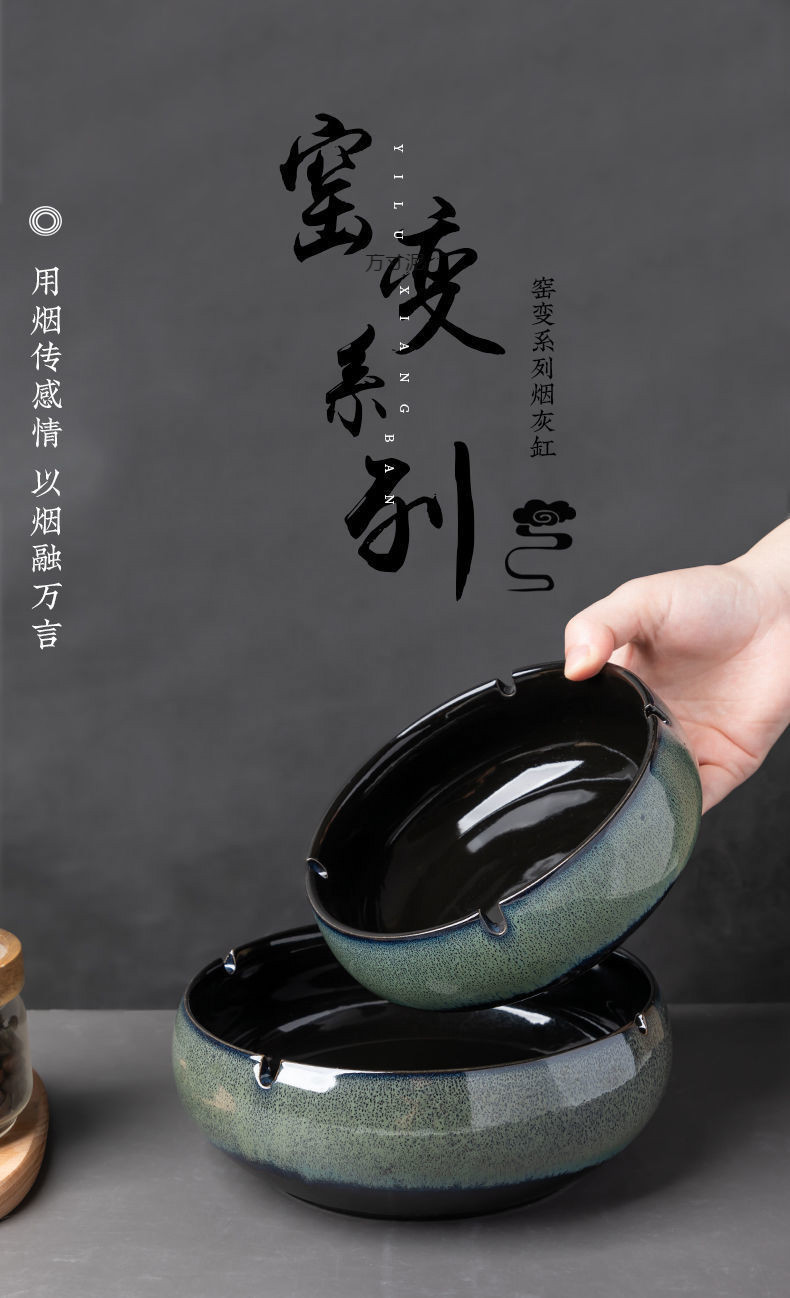 大号烟灰缸个性陶瓷烟缸家用复古中式客厅轻奢办公室潮流烟缸批发