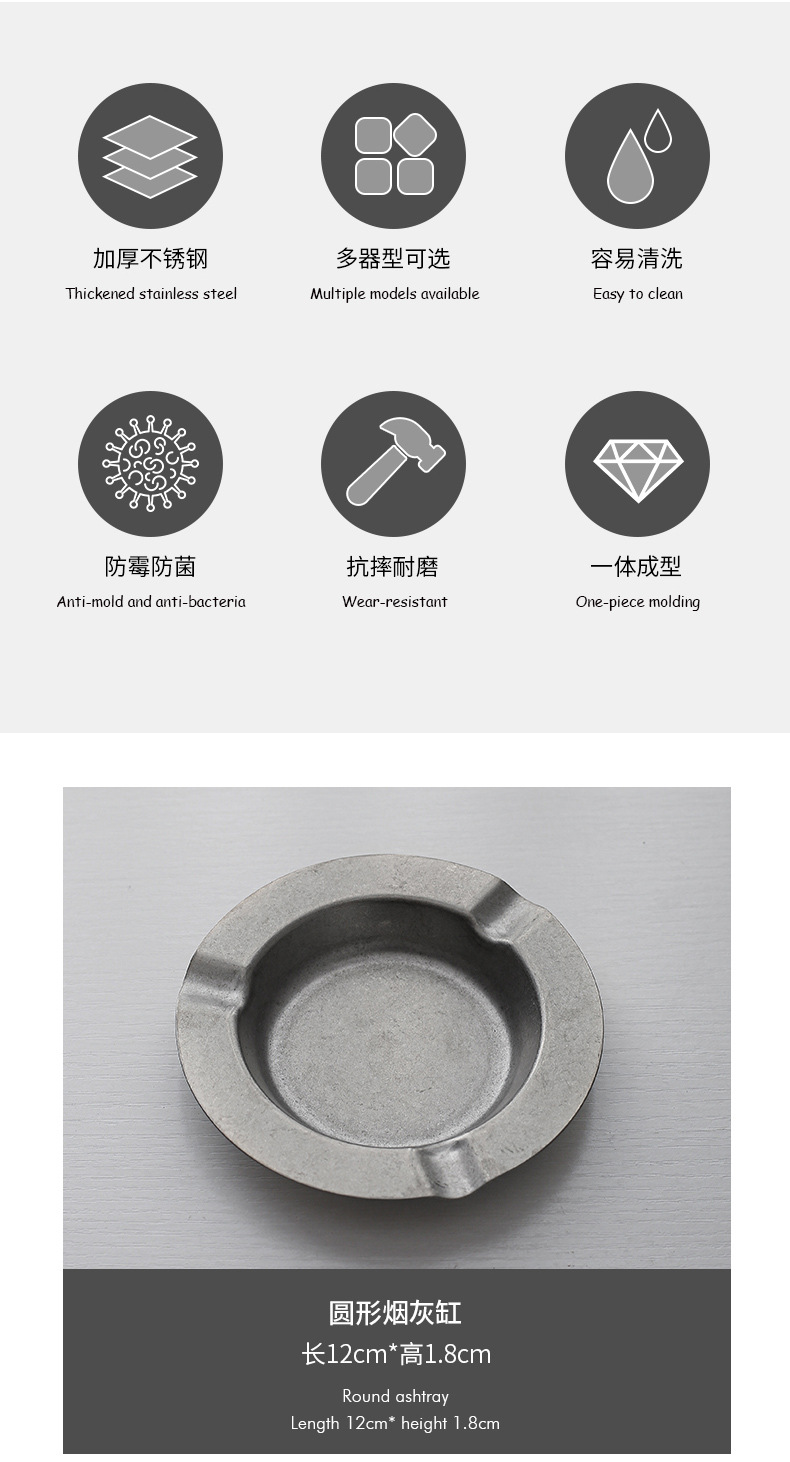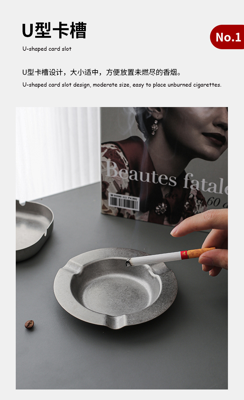 复古高颜值304 不锈钢烟灰缸商用酒吧大卡槽方形圆形创意异形烟缸
