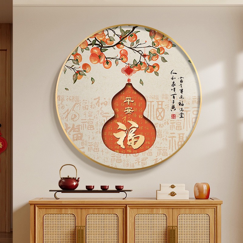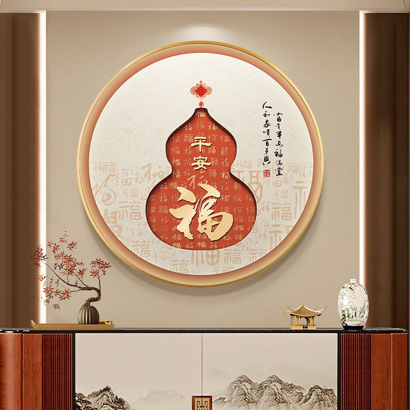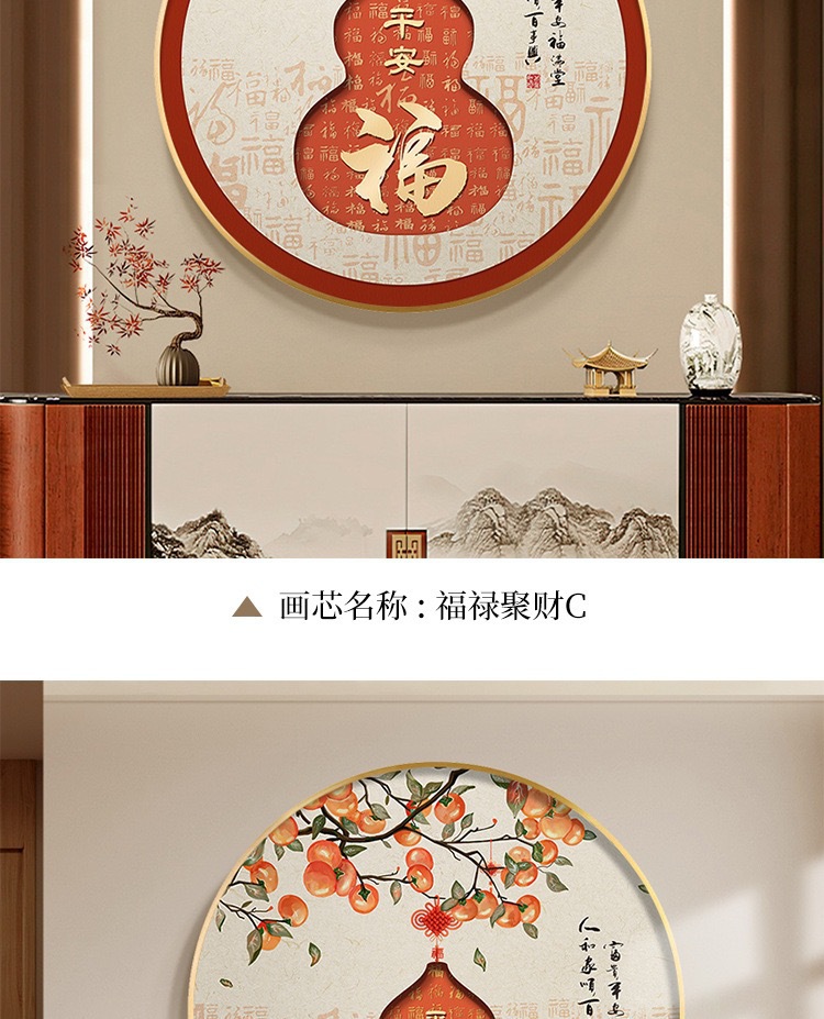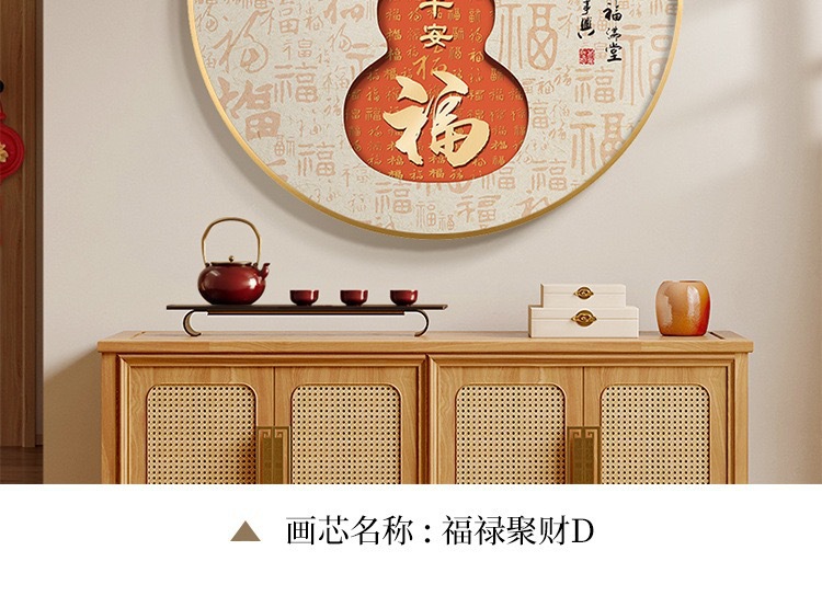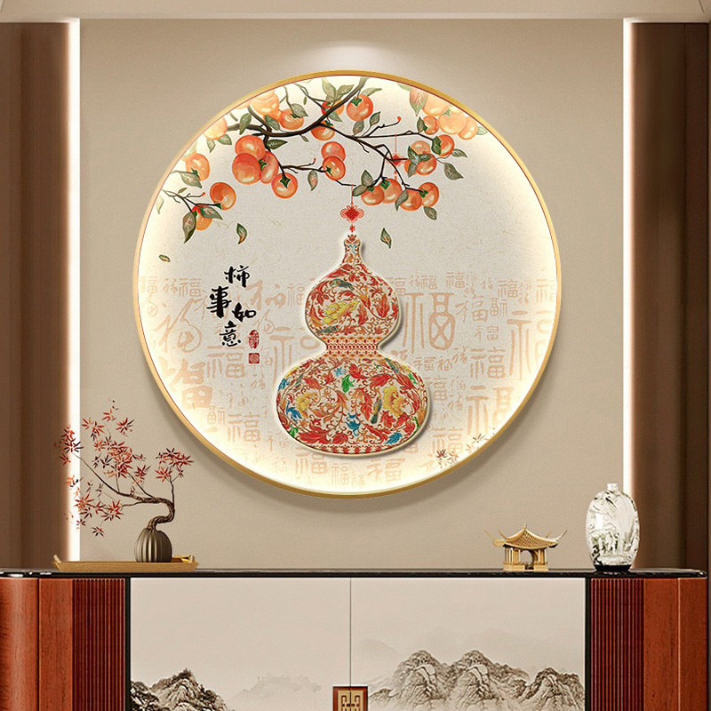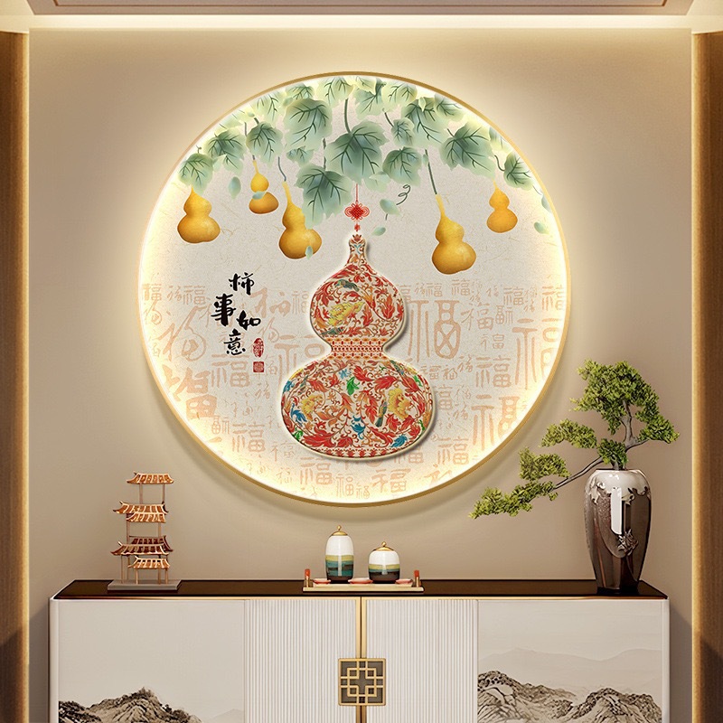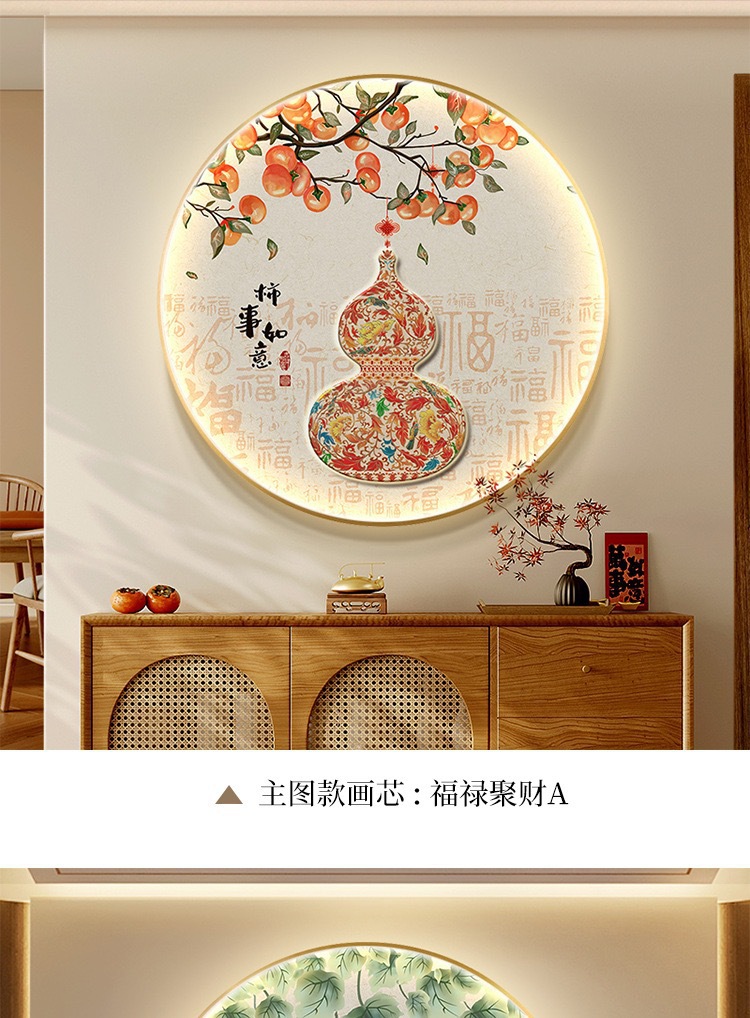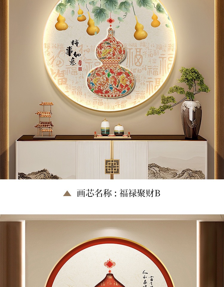 轻奢入户玄关装饰画福禄挂画生财新中式圆形led灯光画背景墙