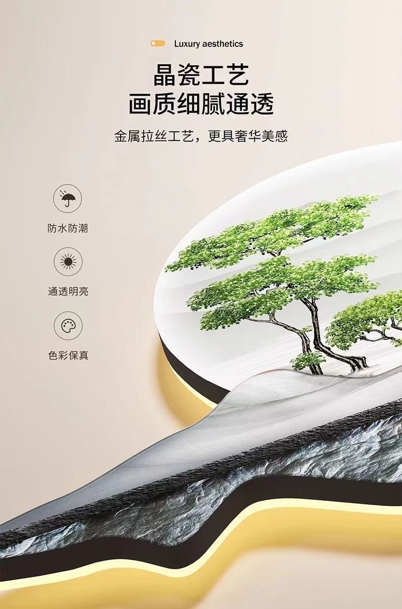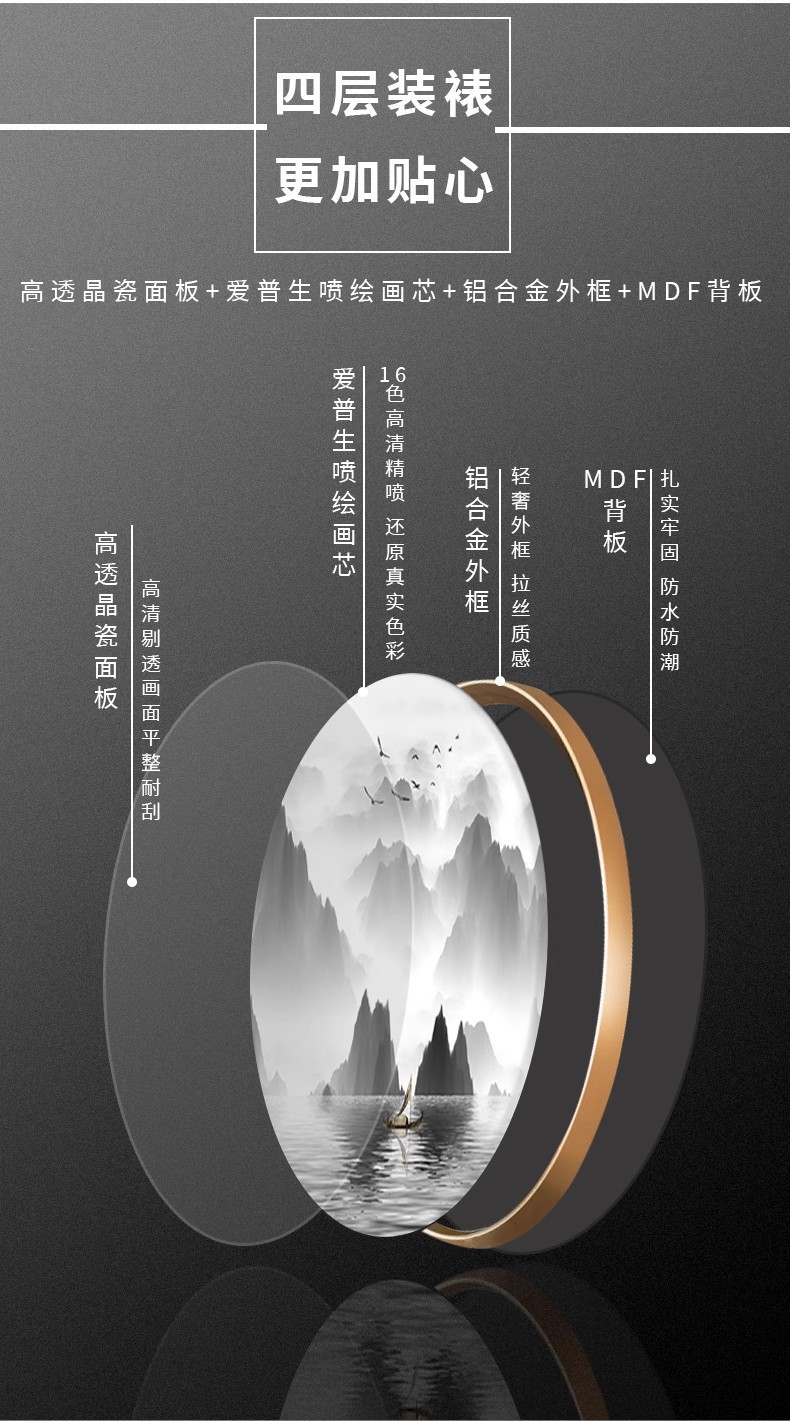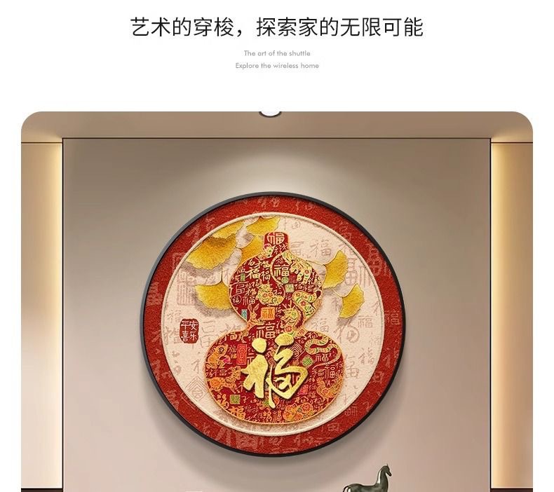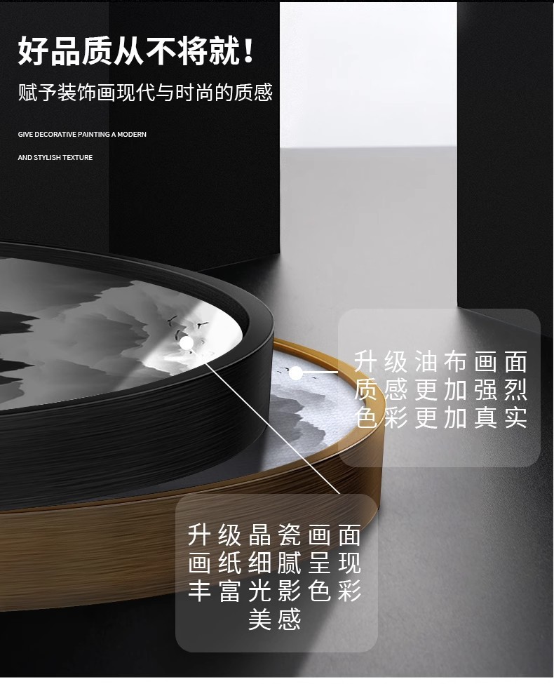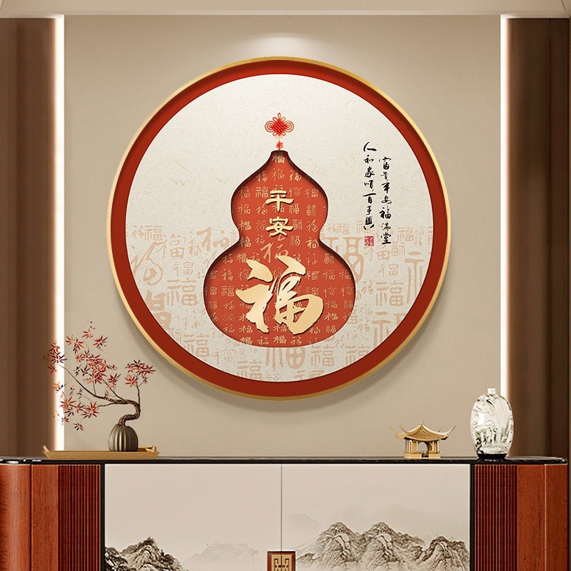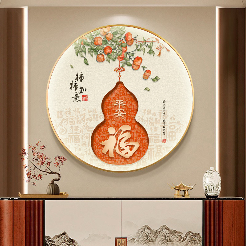 轻奢入户玄关装饰画福禄挂画生财新中式圆形led灯光画背景墙