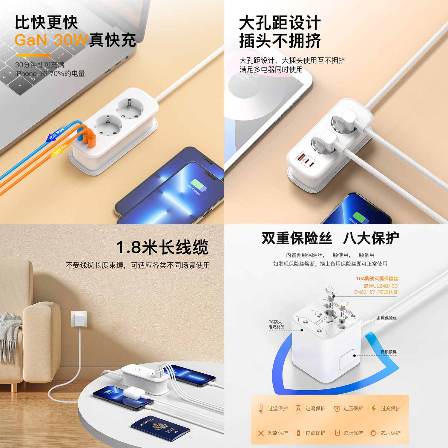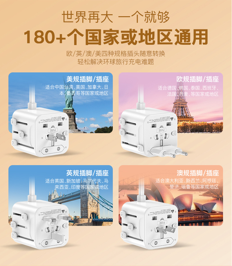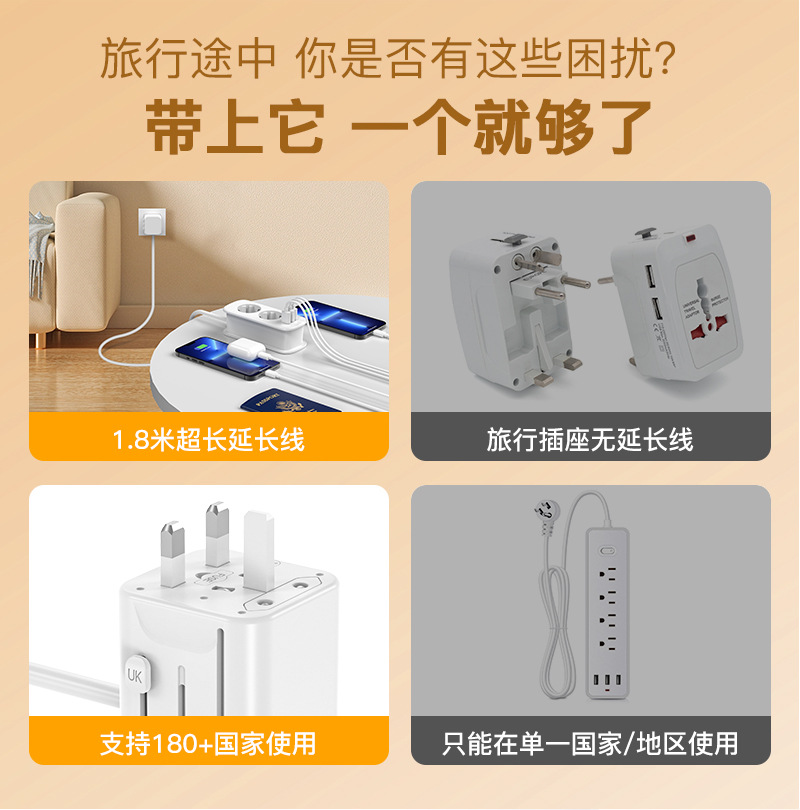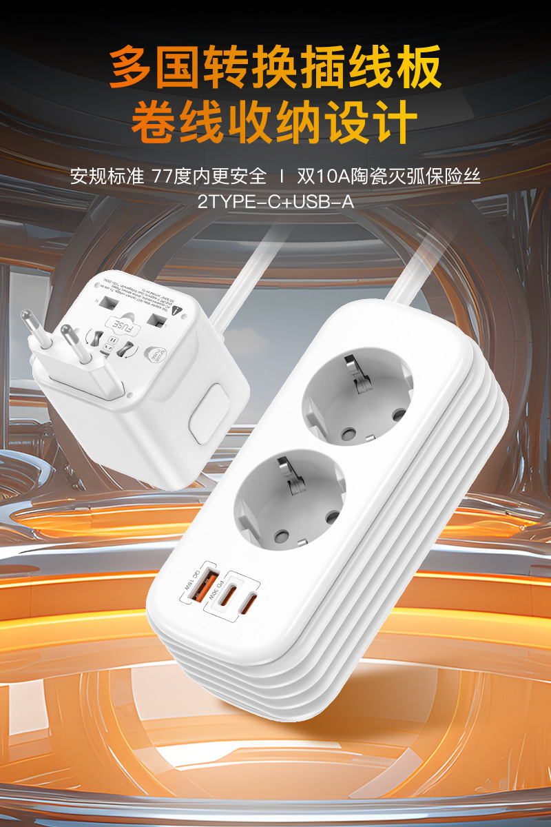新品多国美规欧规插线板卷线收纳插排转换排插插座转换器转换插头