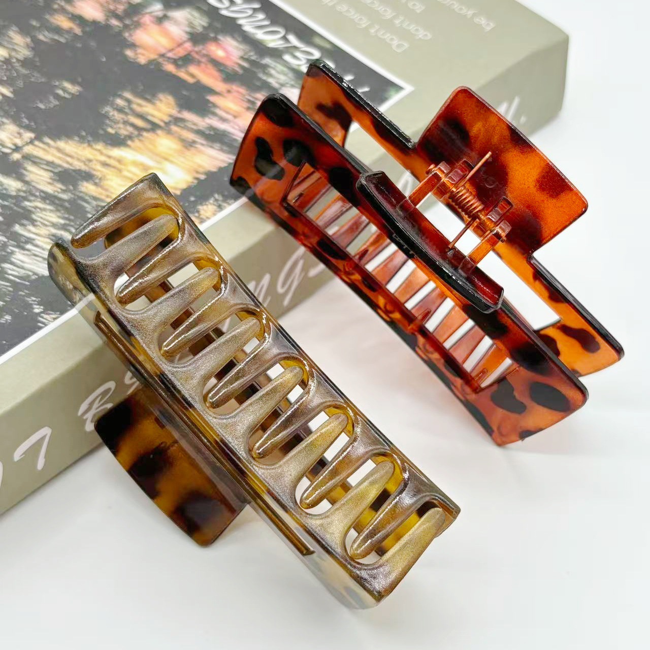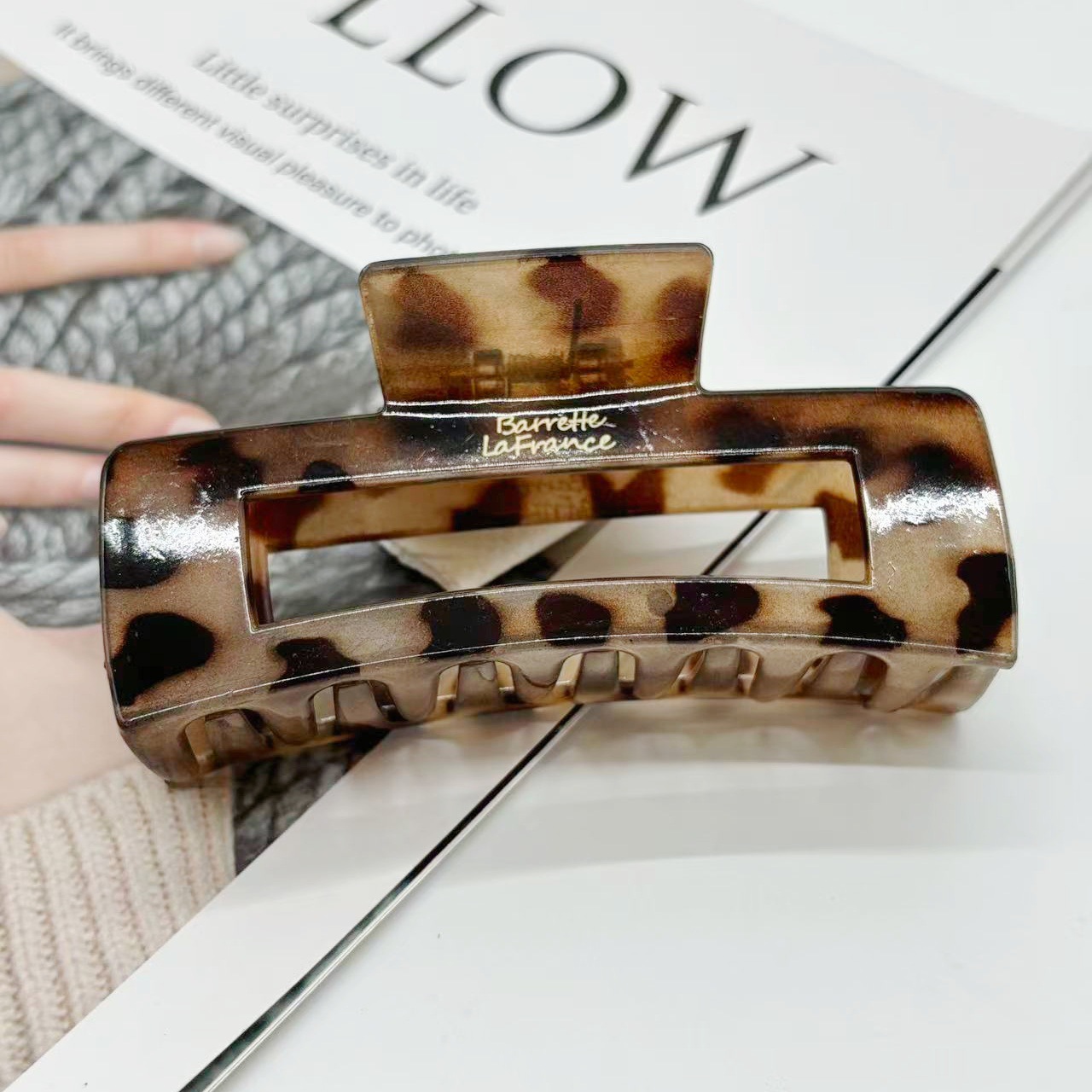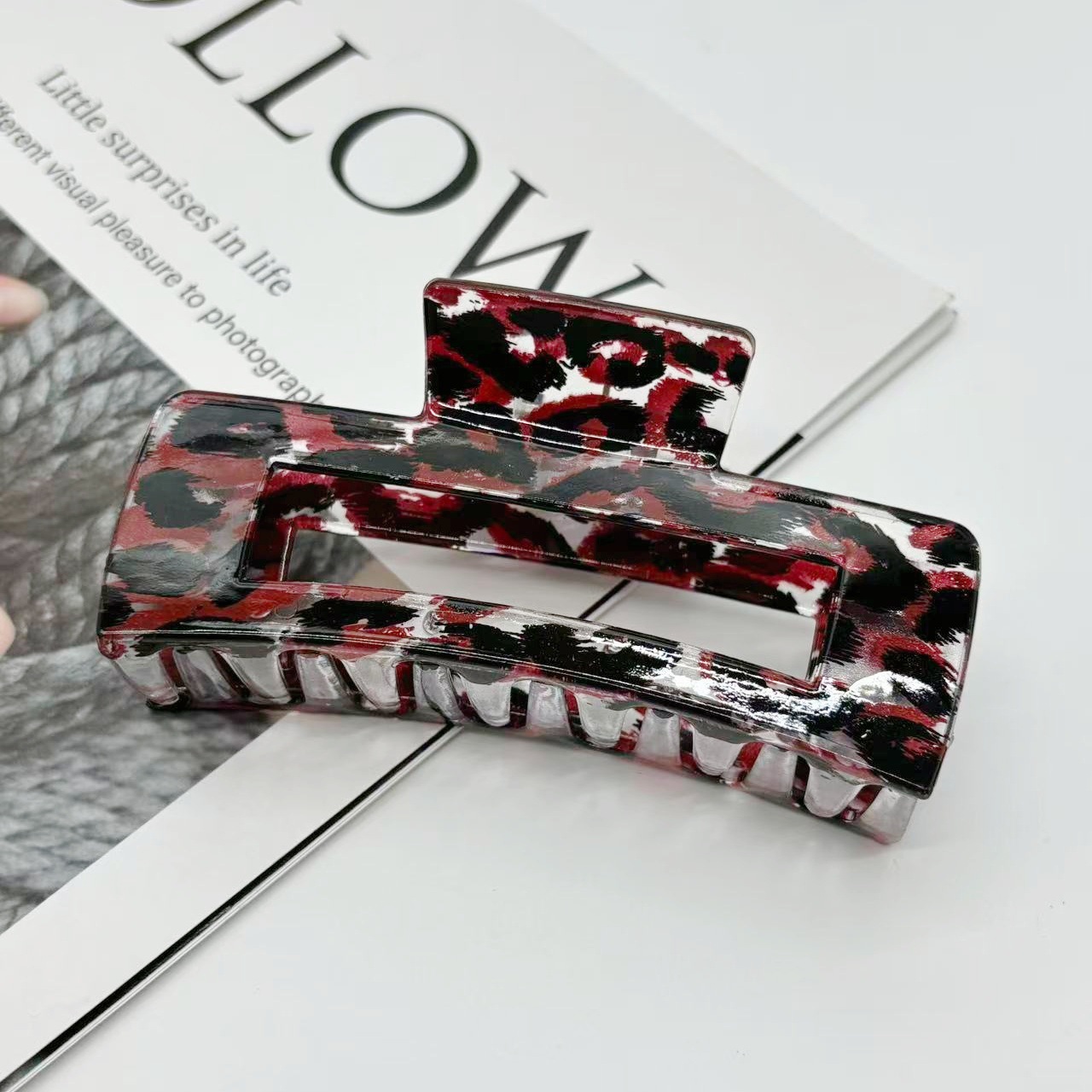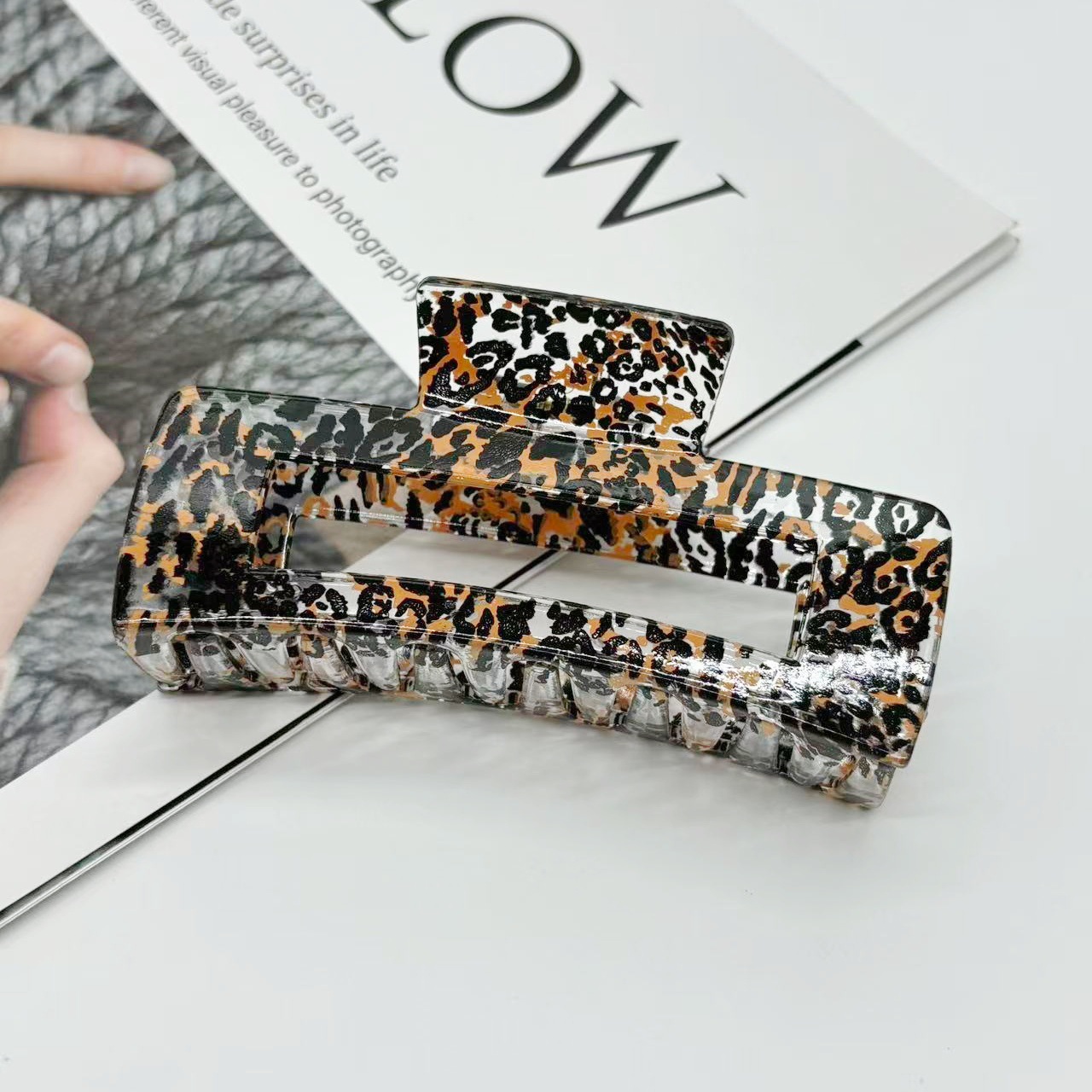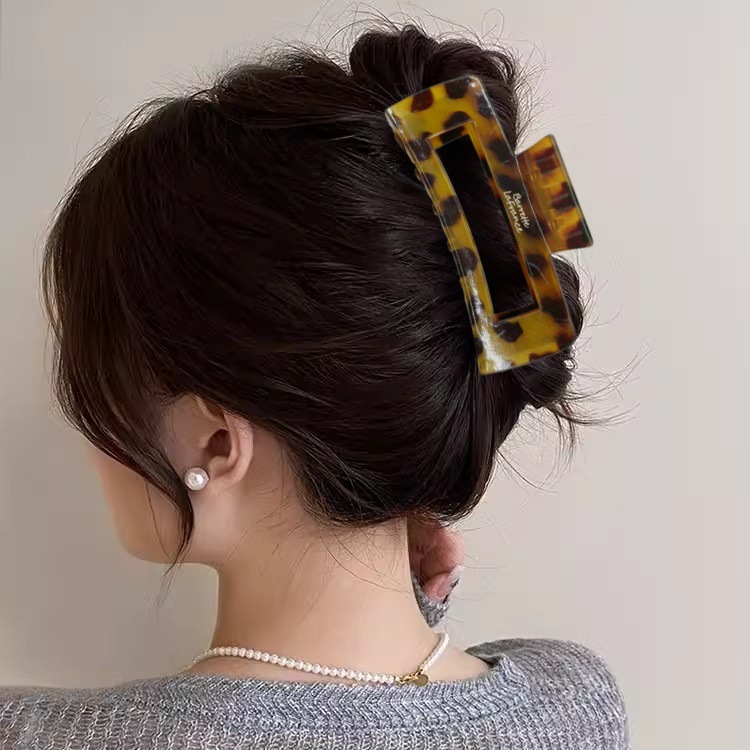 欧美跨境10.5cm豹纹抓夹方块发夹气质豹纹后脑勺盘发夹发饰