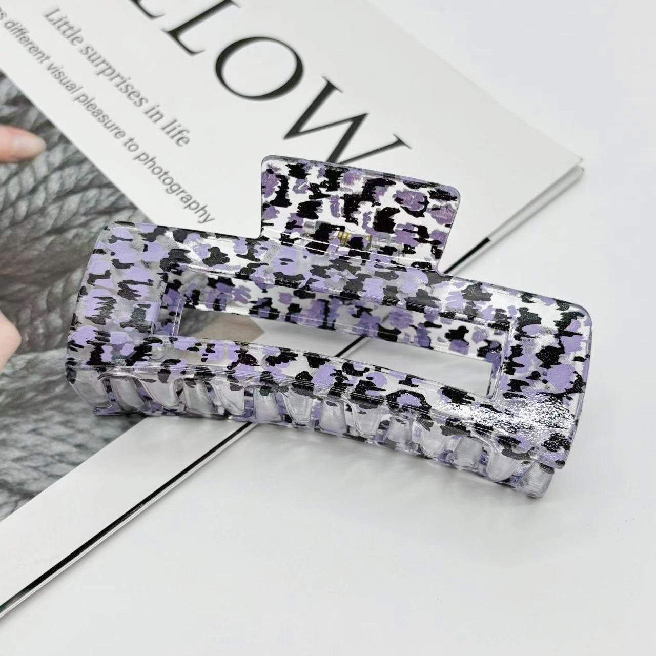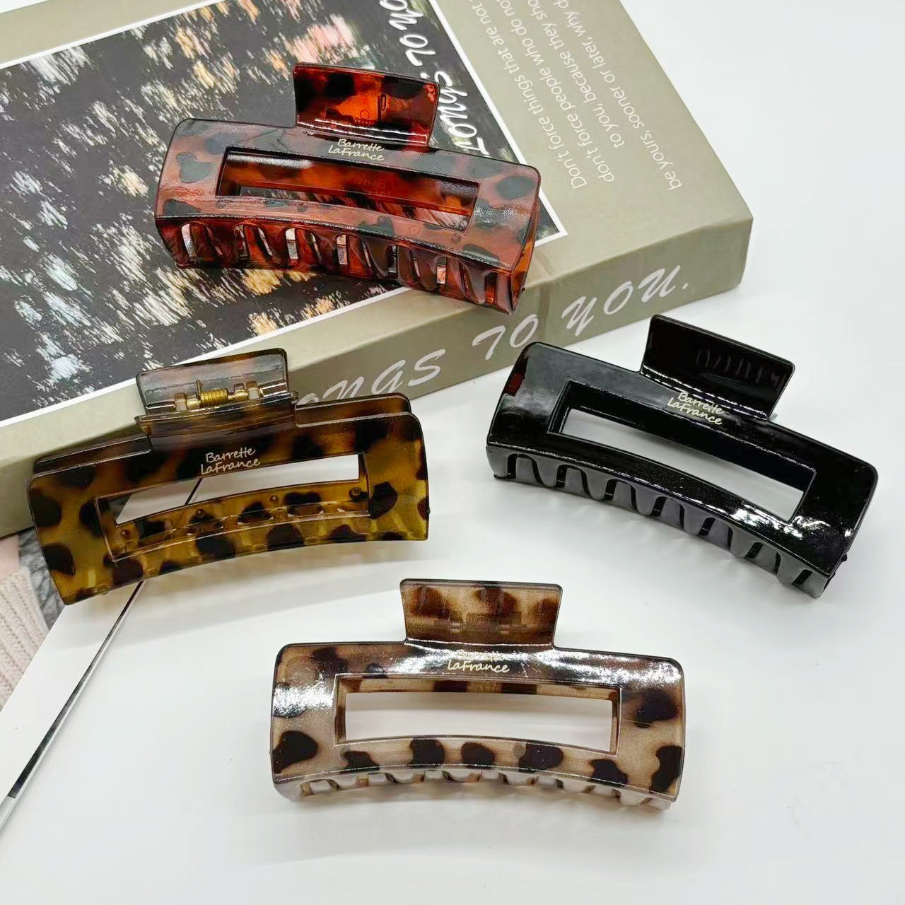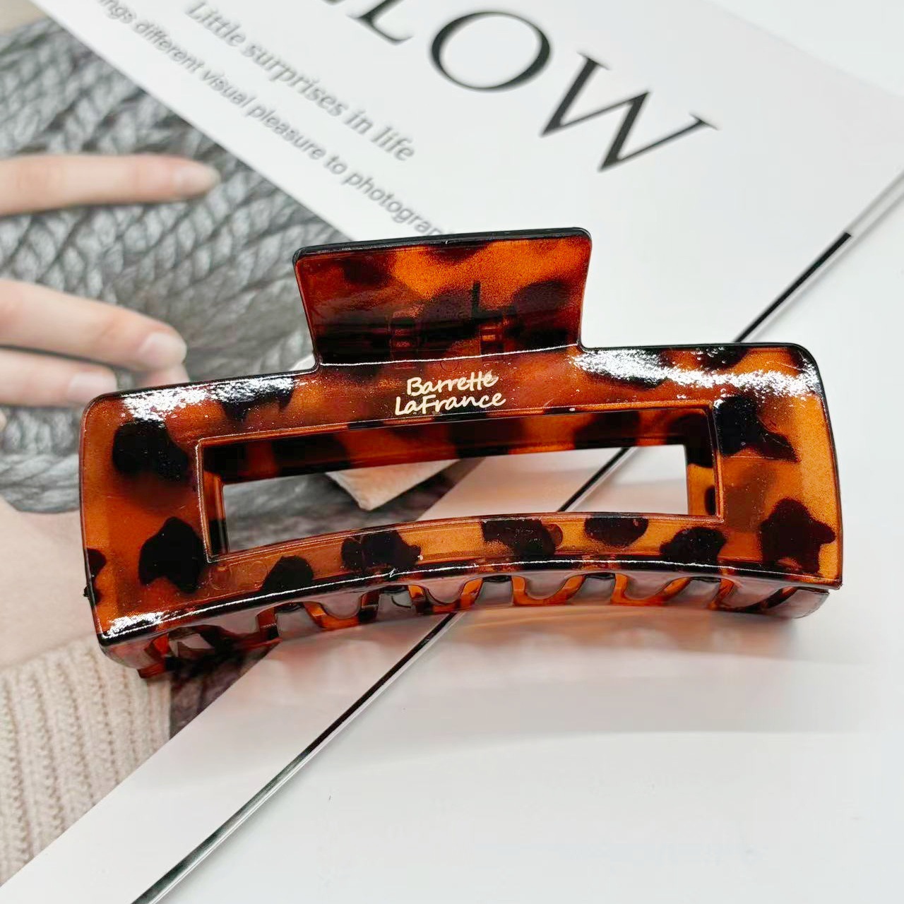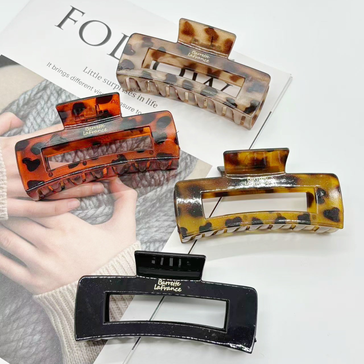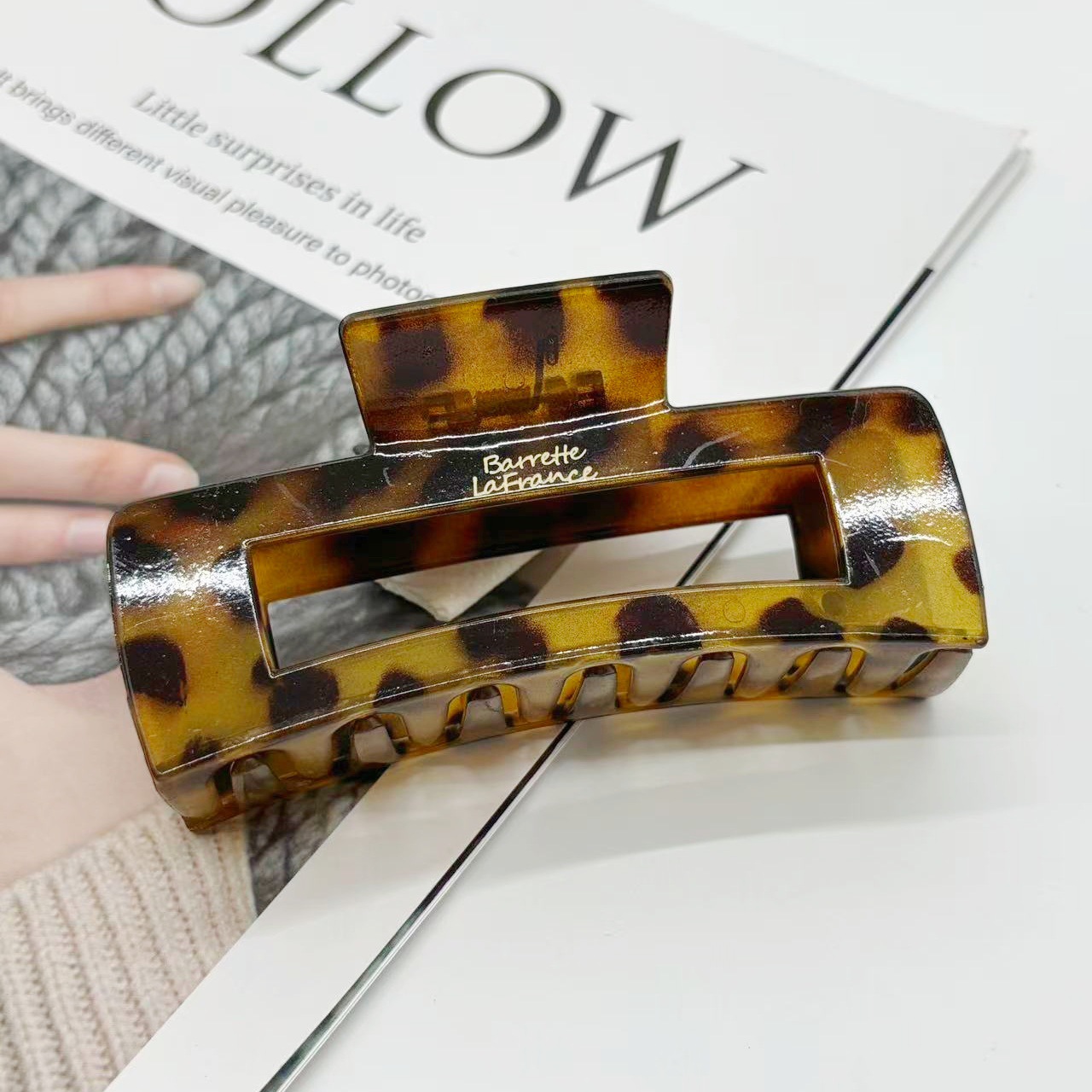 欧美跨境10.5cm豹纹抓夹方块发夹气质豹纹后脑勺盘发夹发饰