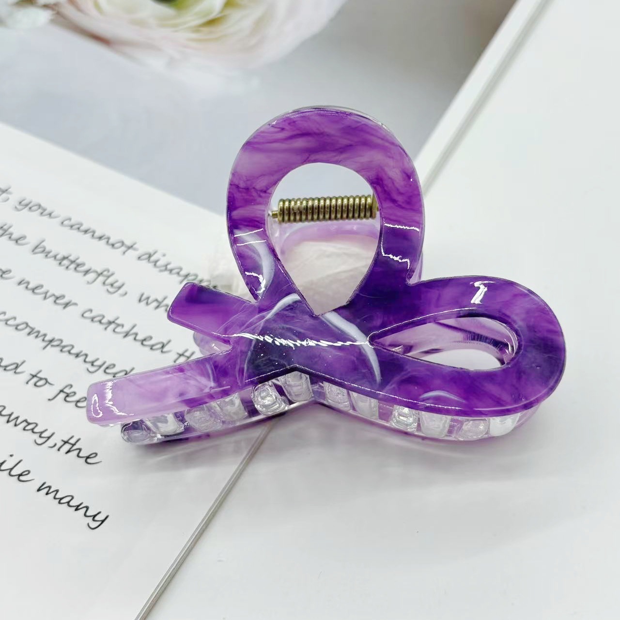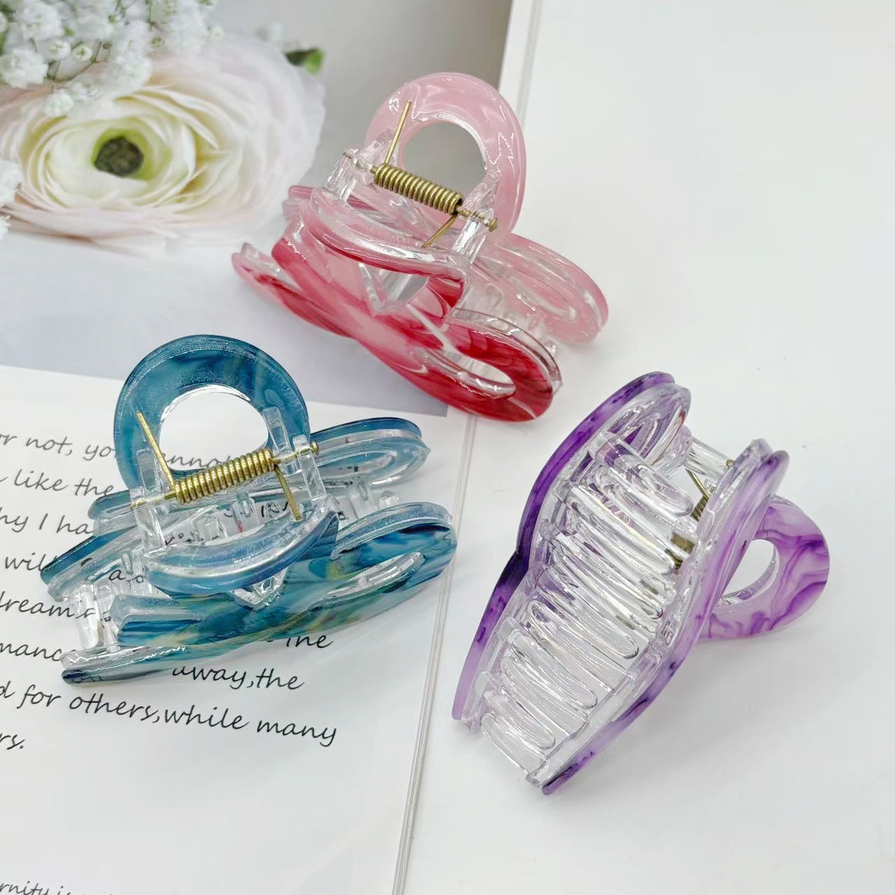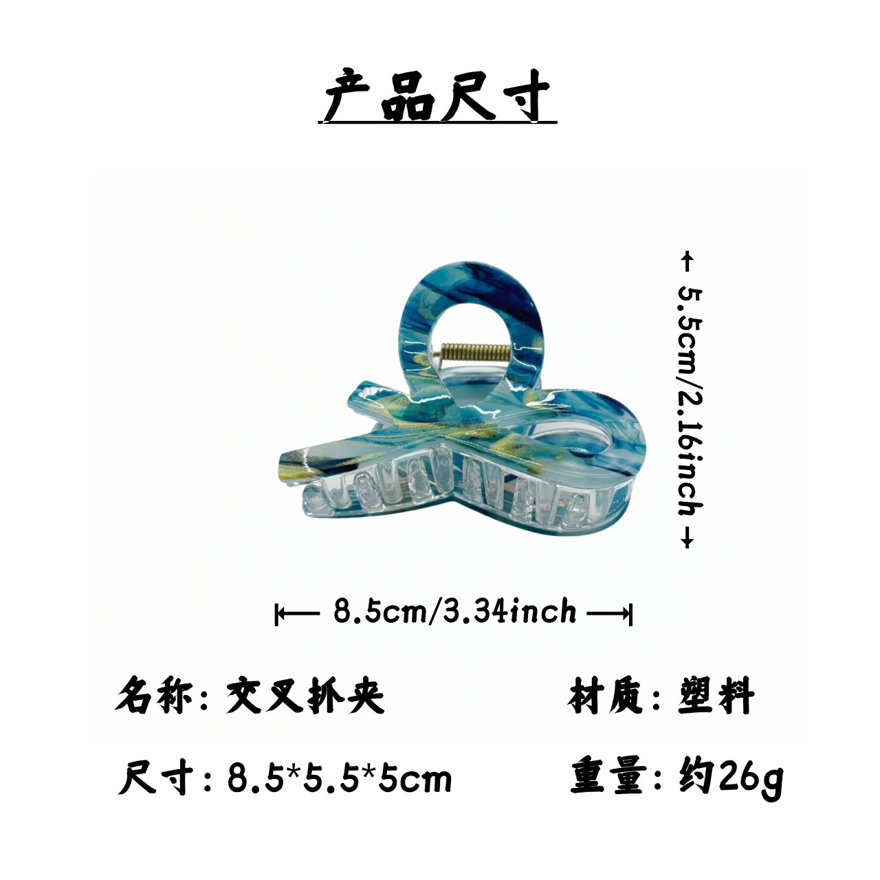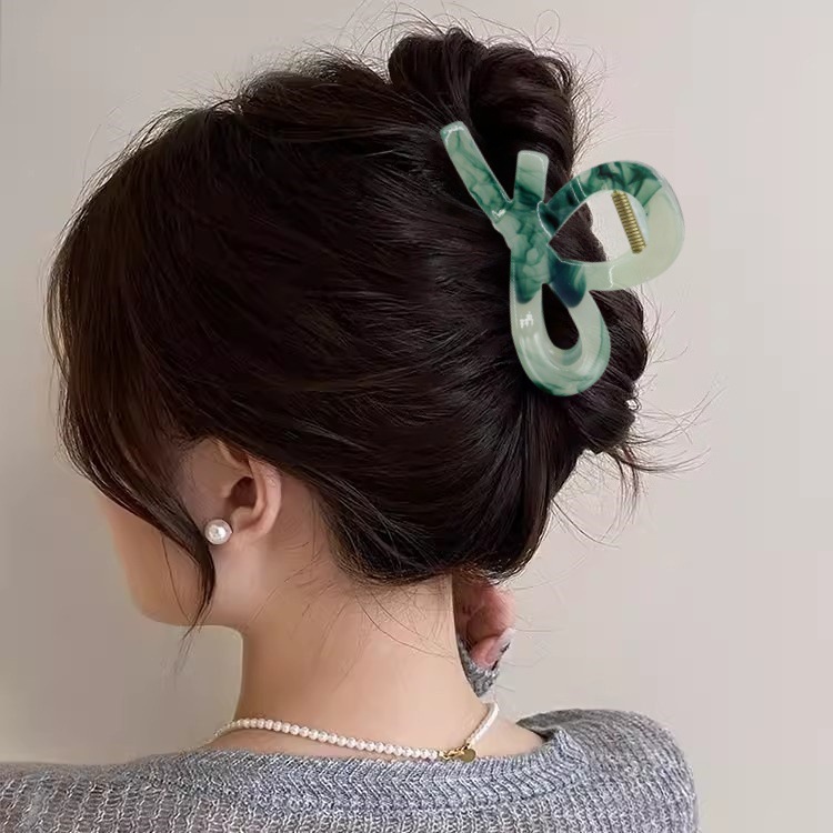 跨境新款中号小又字抓夹百搭半扎发晕染发夹后脑勺盘发鲨鱼夹