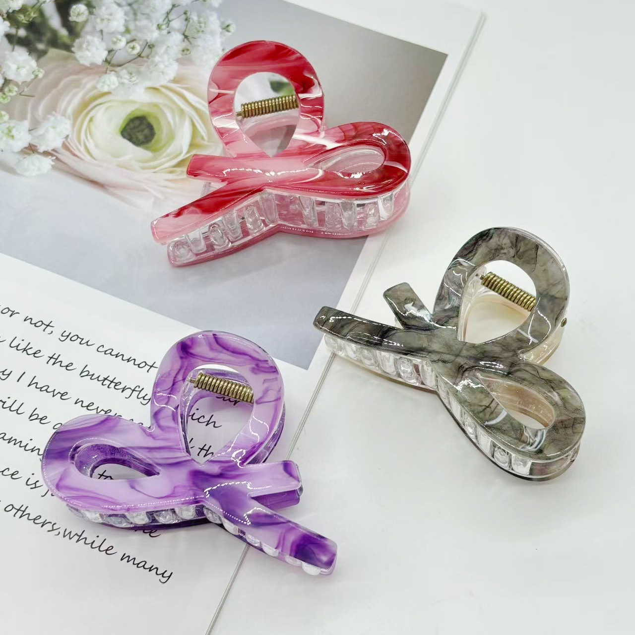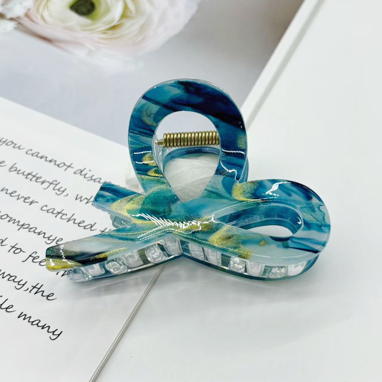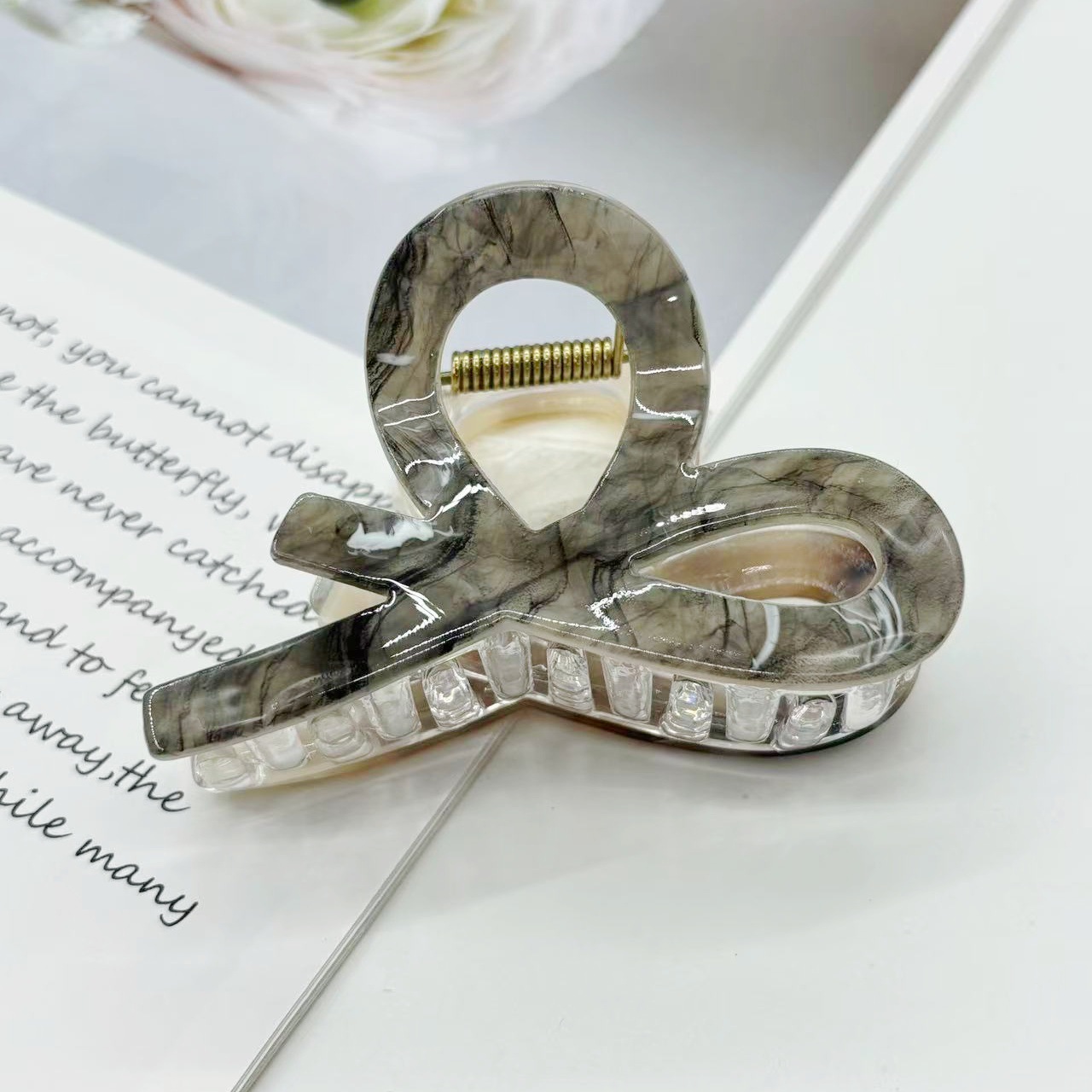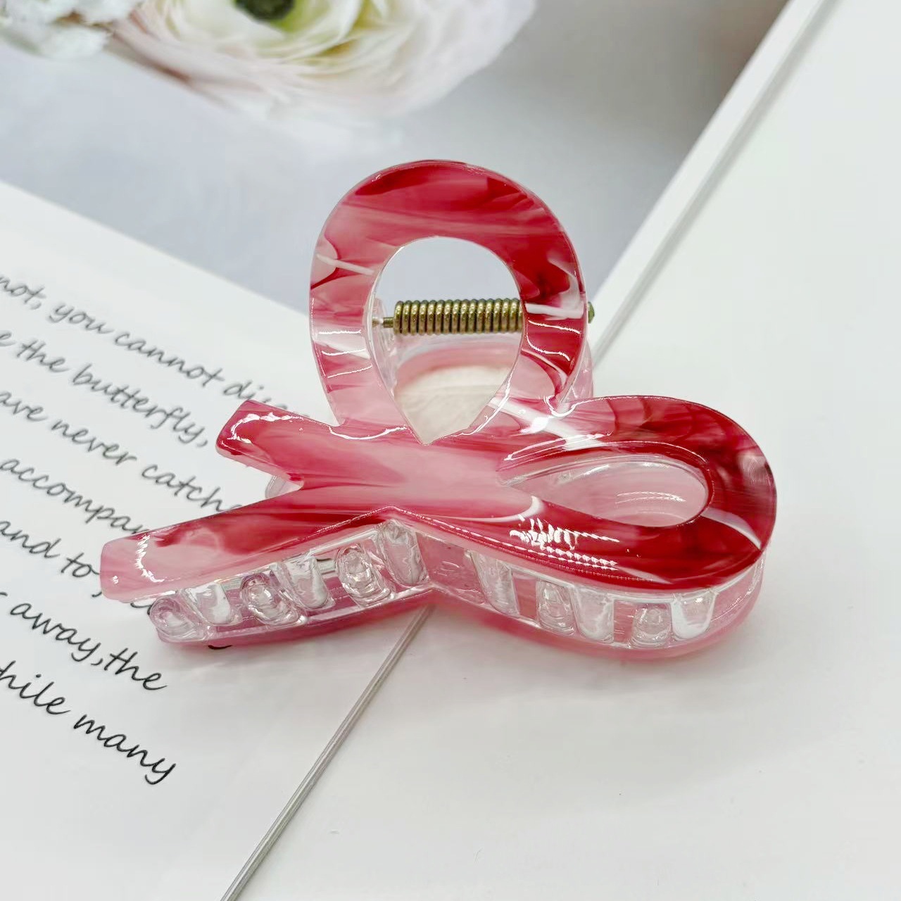 跨境新款中号小又字抓夹百搭半扎发晕染发夹后脑勺盘发鲨鱼夹
