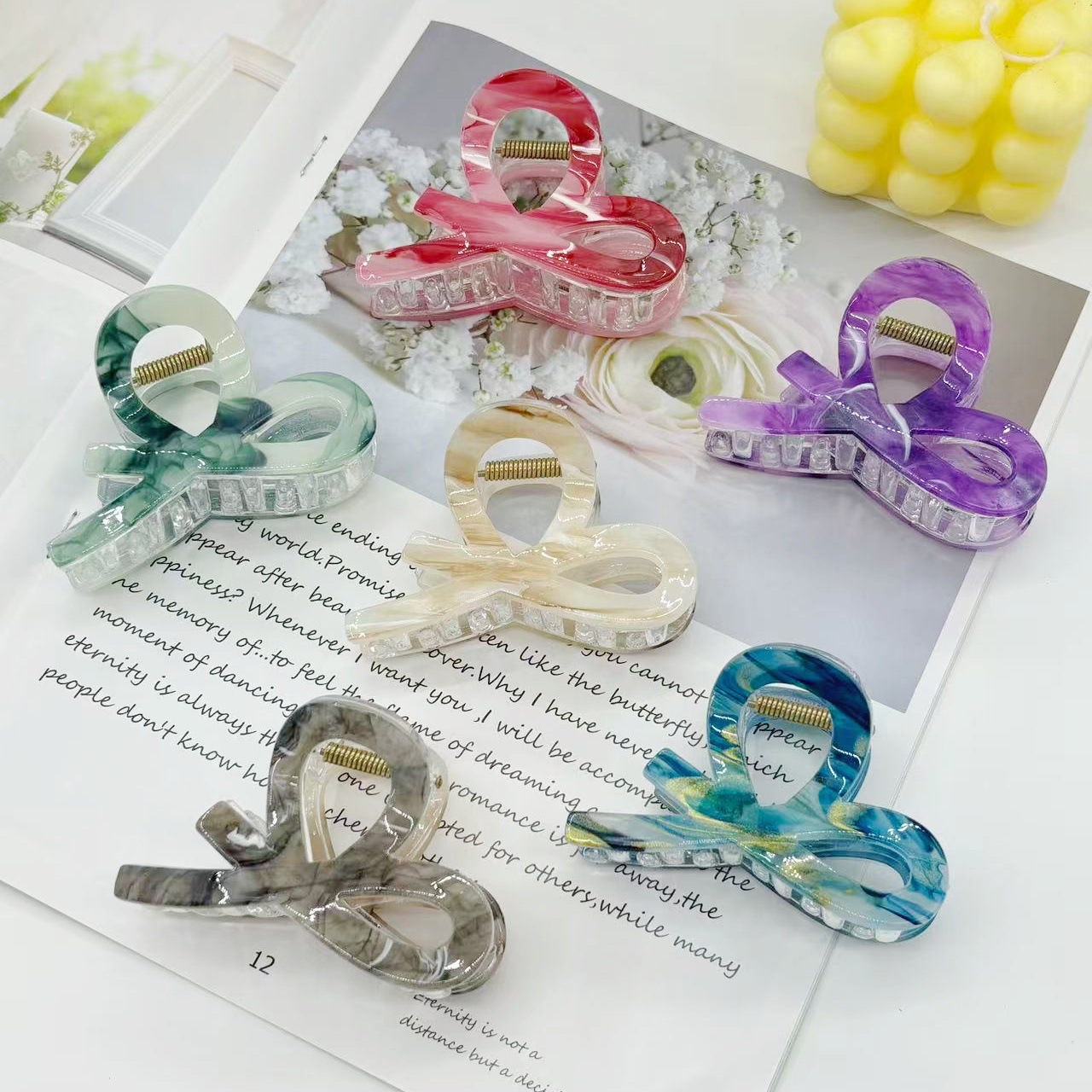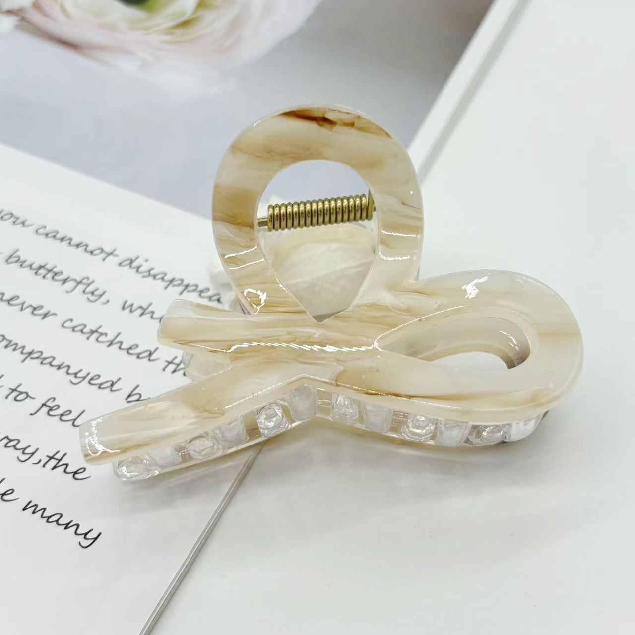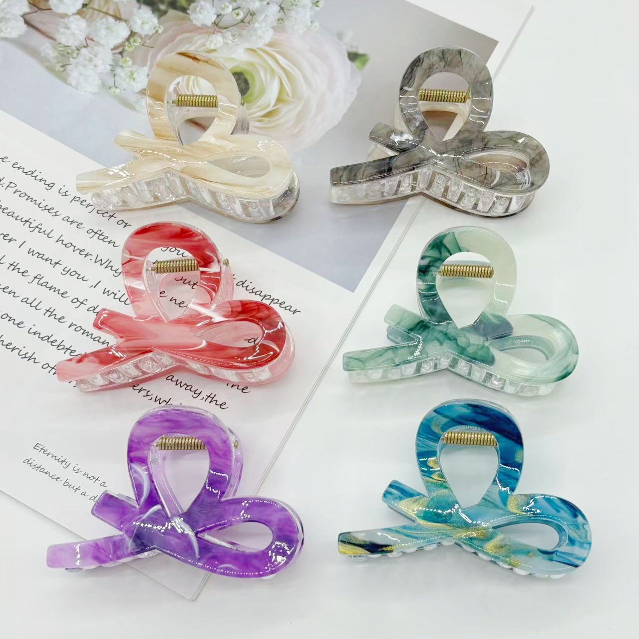 跨境新款中号小又字抓夹百搭半扎发晕染发夹后脑勺盘发鲨鱼夹