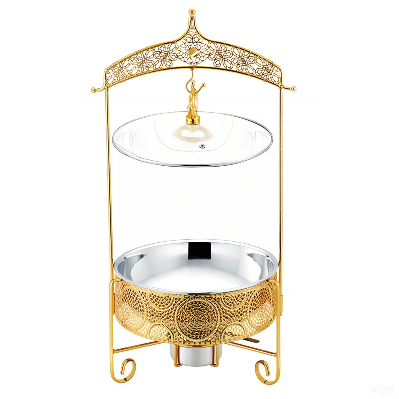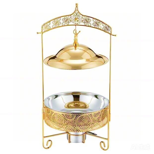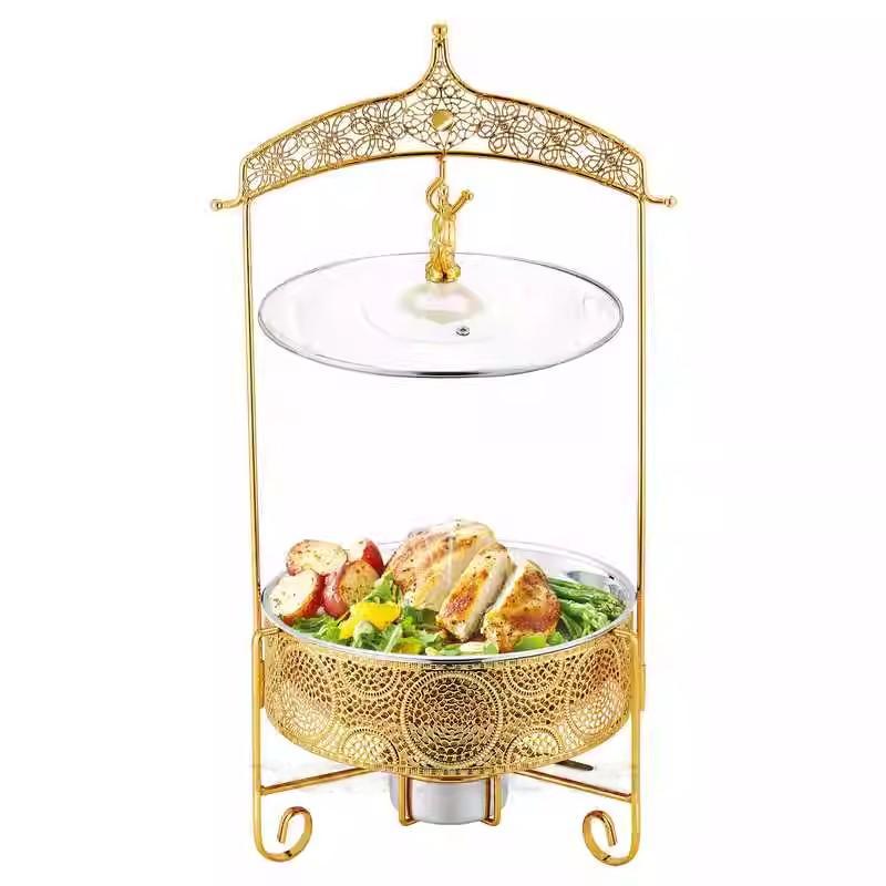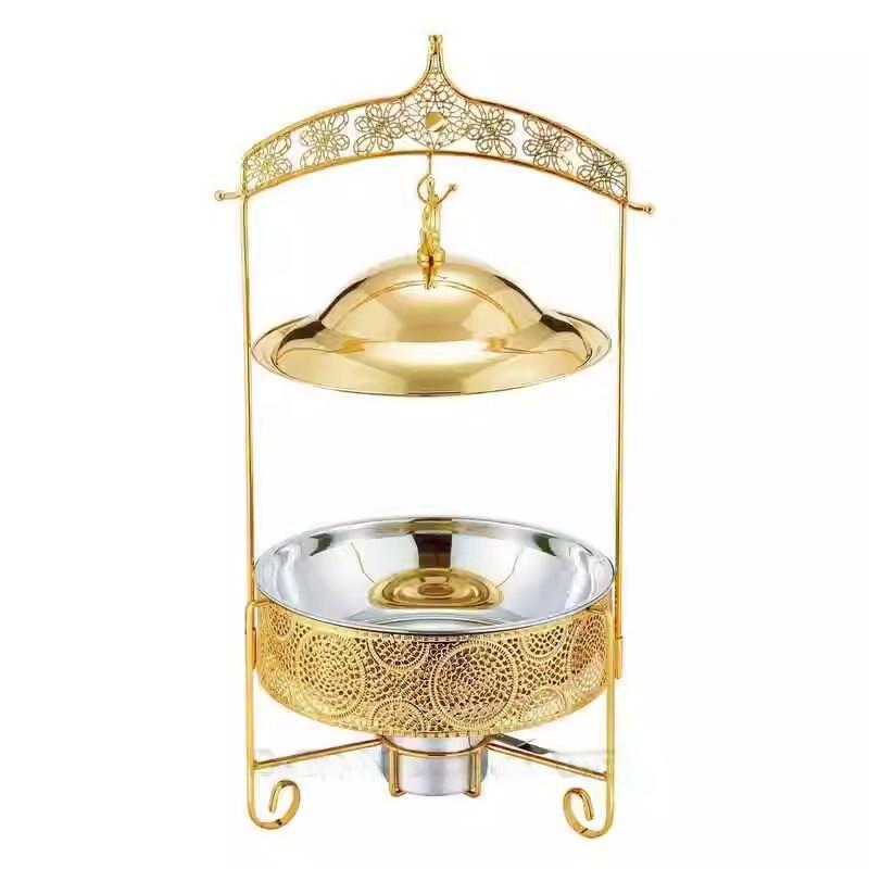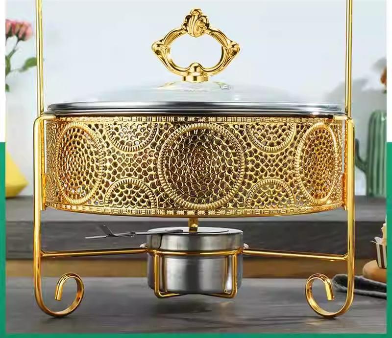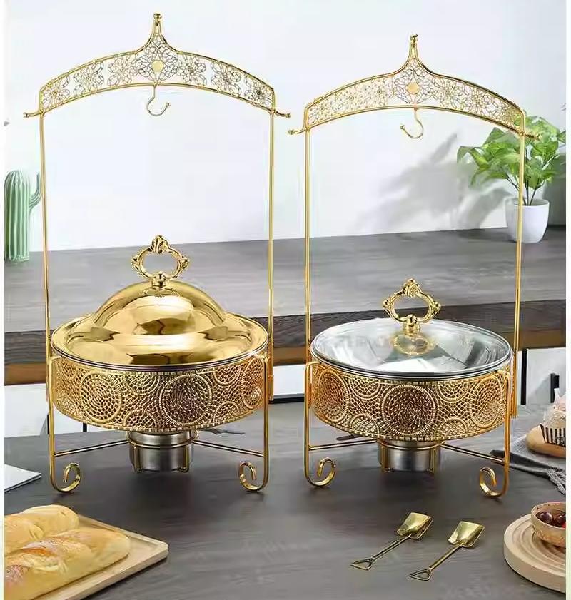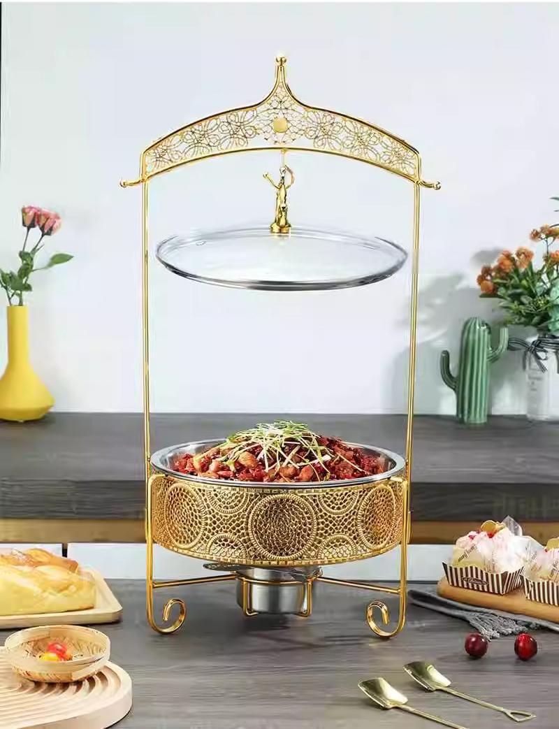 自助餐炉不锈钢酒店餐厅酒精加热保温炉金色圆形加热锅吊盖式餐炉