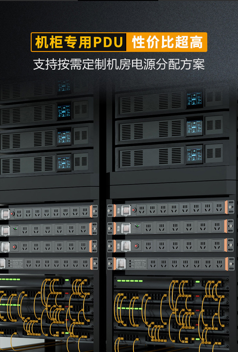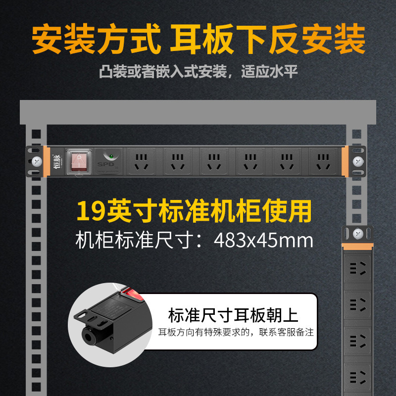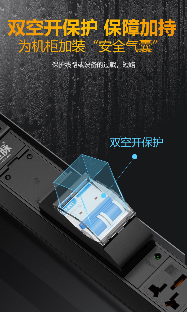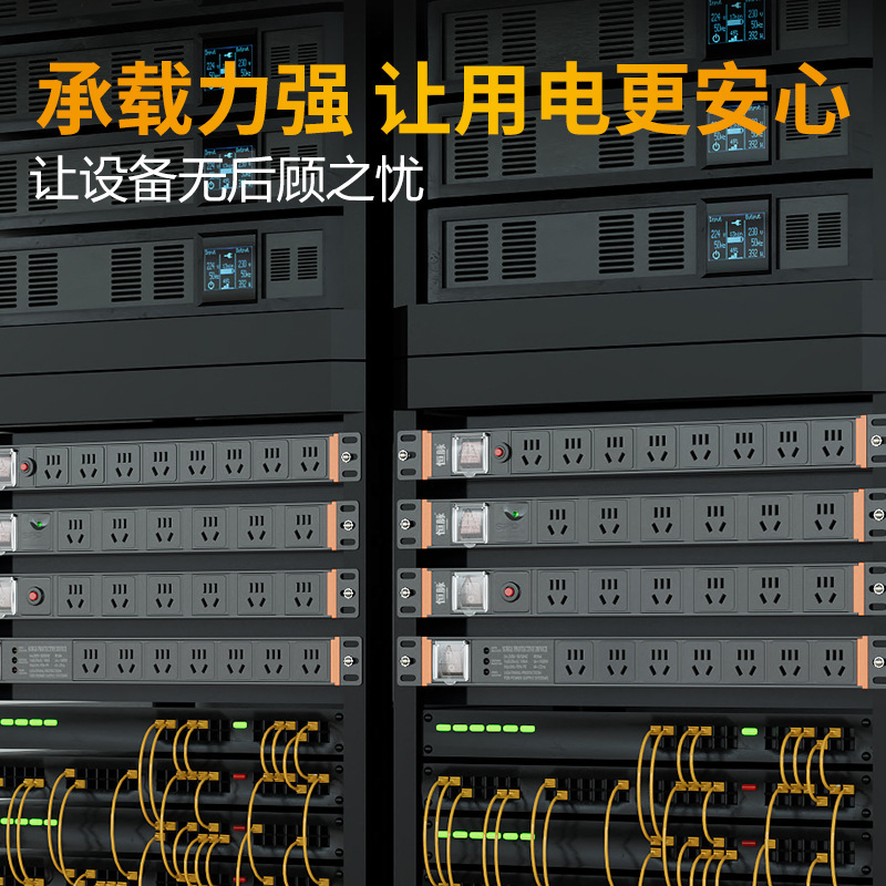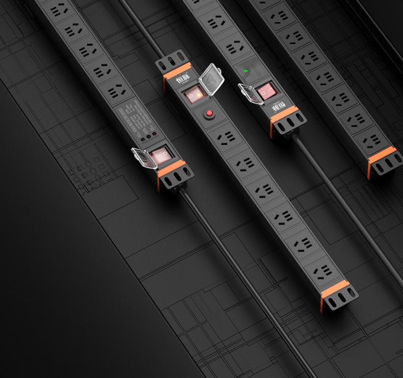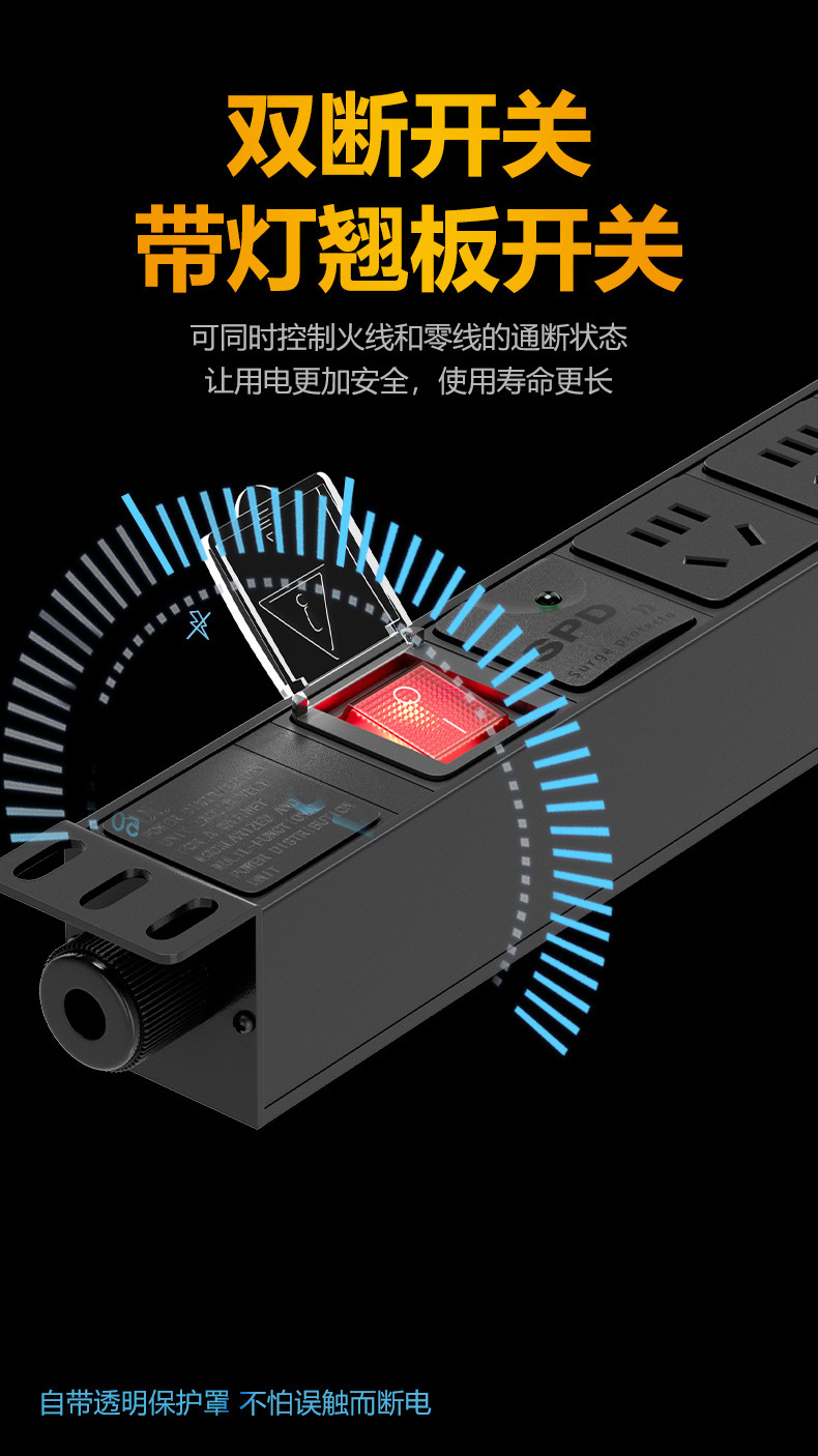 恒脉PDU铝合金19英寸机柜插座 6/8/10位开关防雷10A/16A电源排插