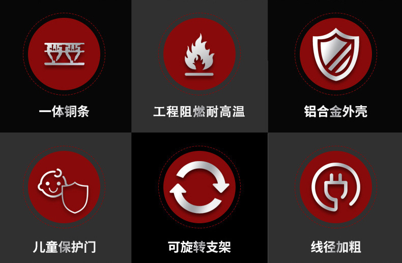 | 6-position-double break switch-overload protection-1.5 square meters-1.8 m line fiberglass plug(6位-双断开关-过载保护-1.5平方-1.8米线10A插头) | USD $12.76 | 1014 piece available |