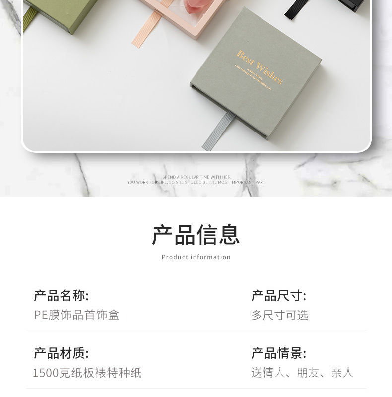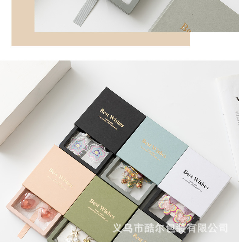 批发创意pe膜首饰盒子抽拉烫金穿戴甲盒子吊坠冰箱贴包装盒小礼盒