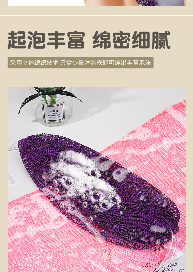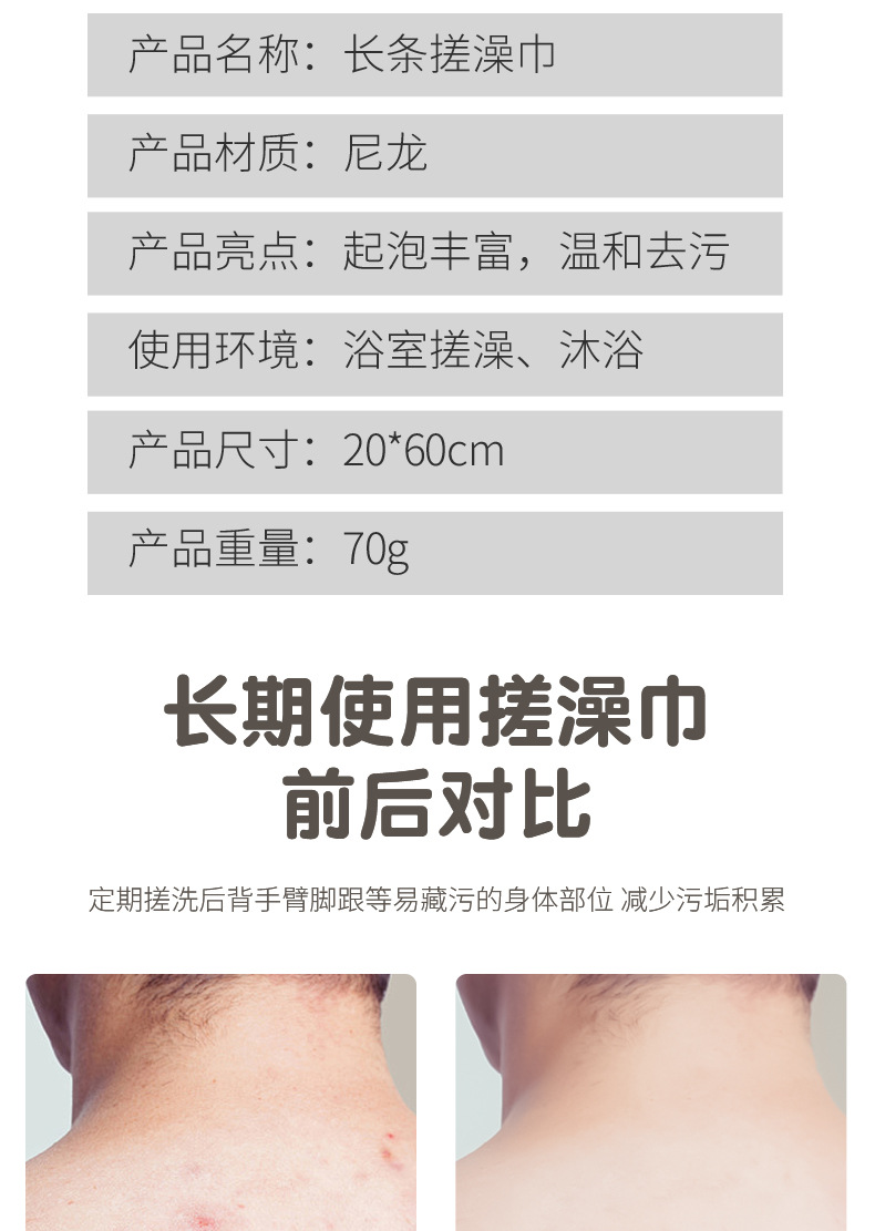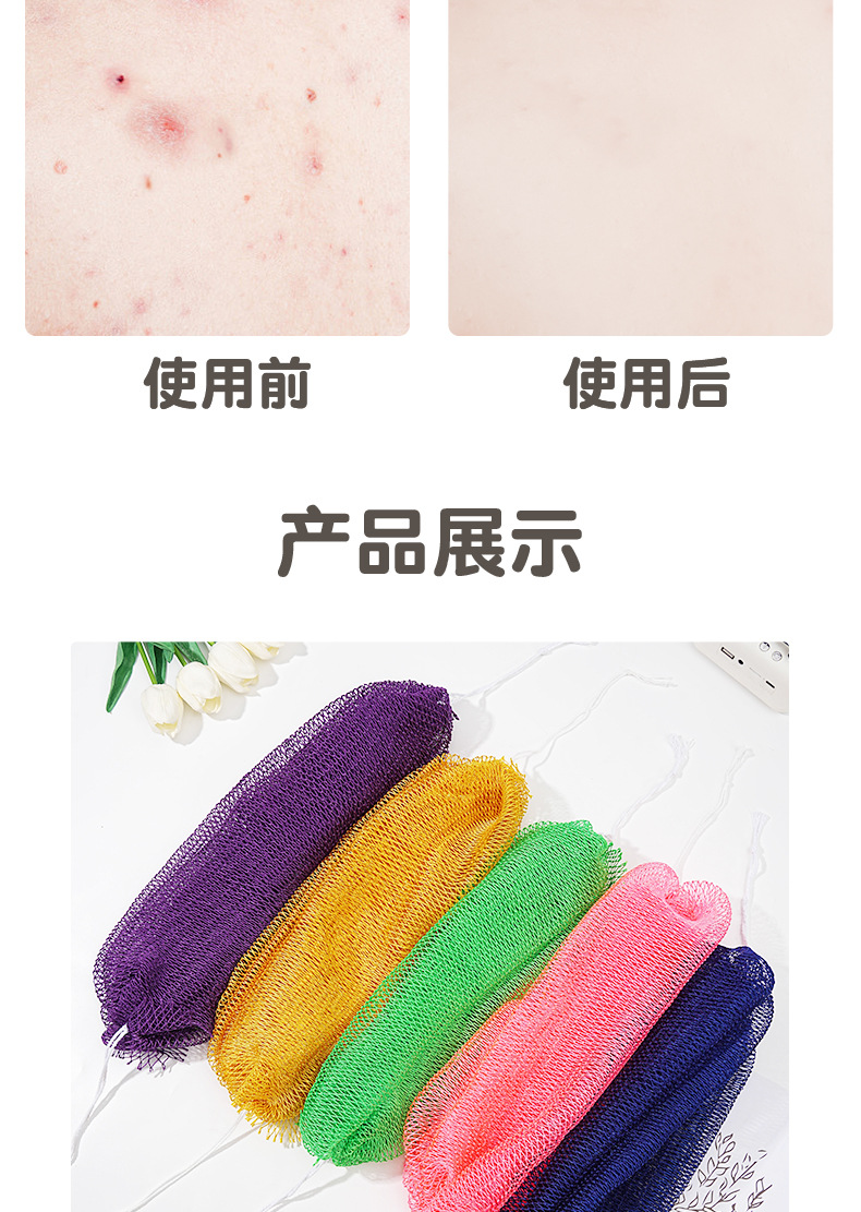 背部去角质搓澡巾长条带绳沐浴巾高弹力桑拿巾拉绳搓背沐浴神器