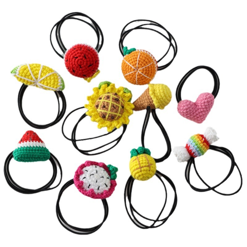 跨境网红款四季潮流钩织毛线水果儿童发绳小女孩扎马尾女童皮筋
