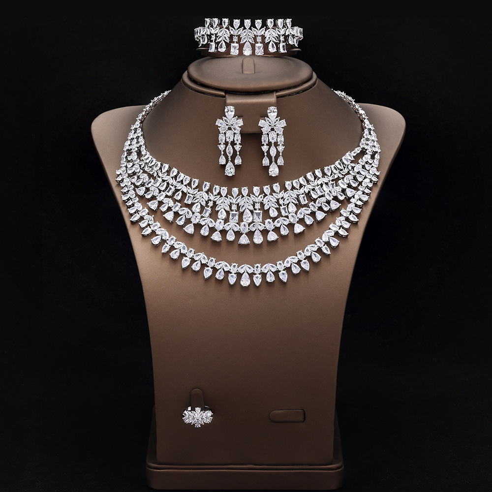 中东奢华闪耀锆石项链耳环套装新娘婚礼礼服晚宴高级首饰流行配饰