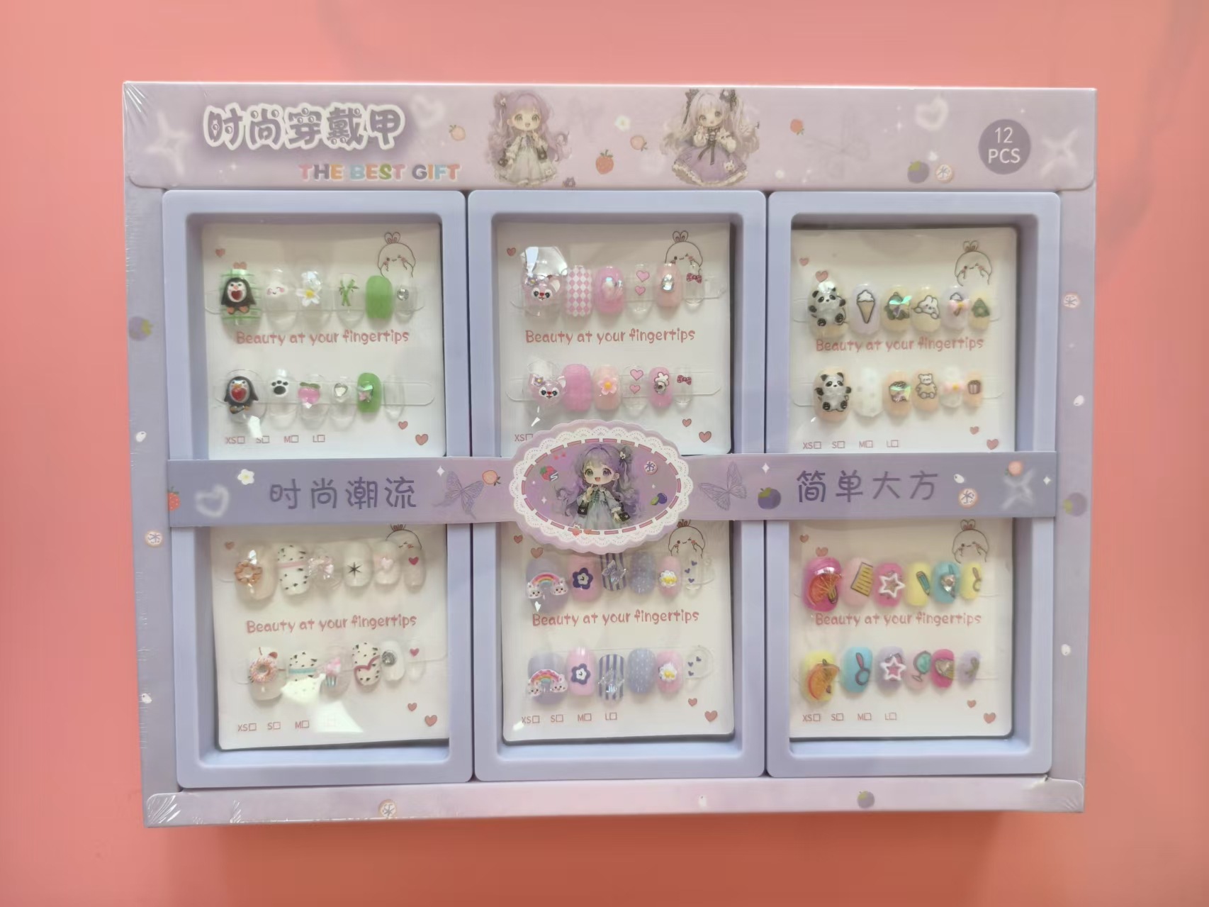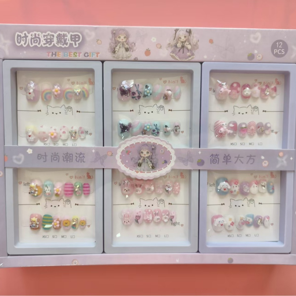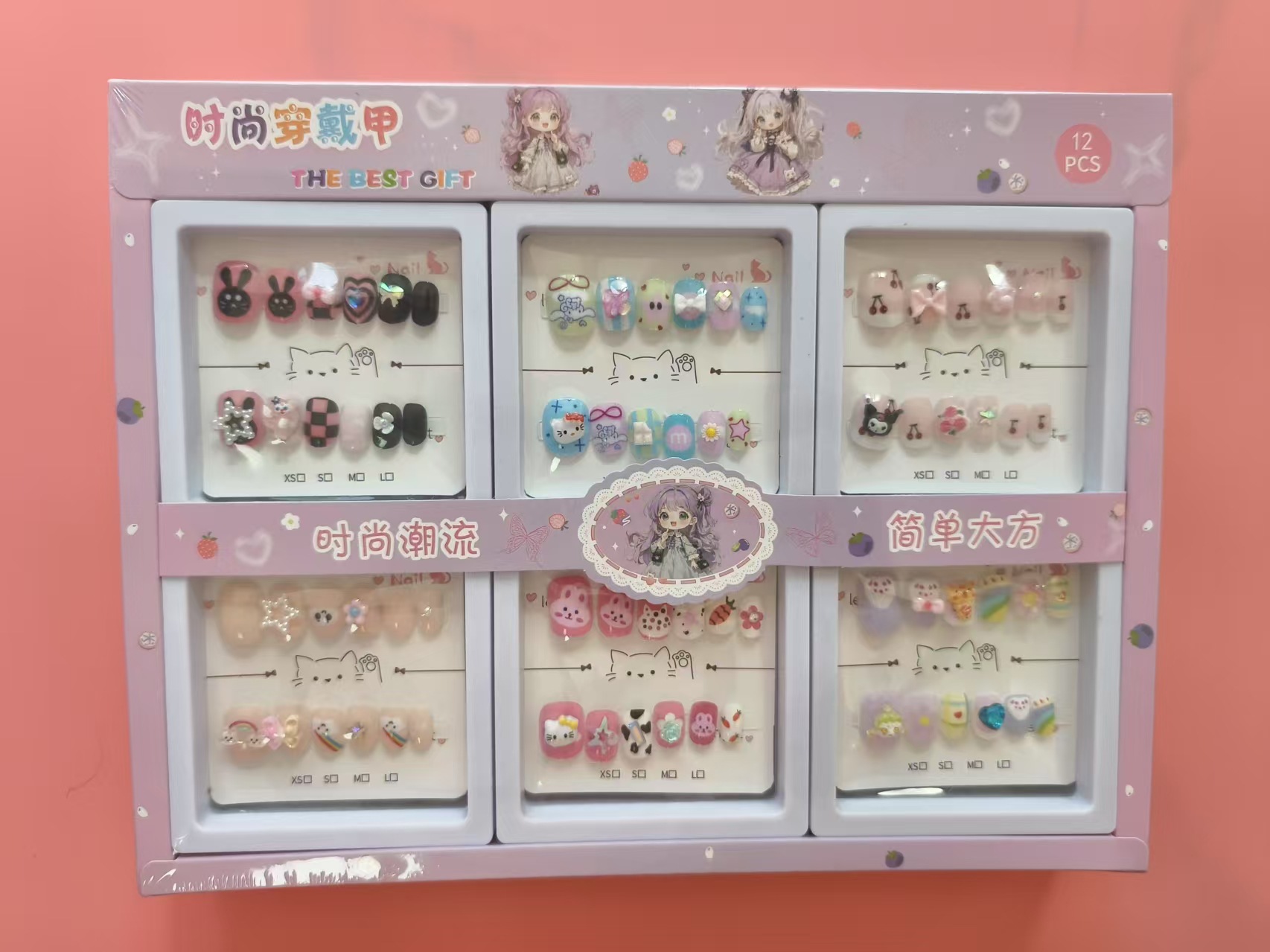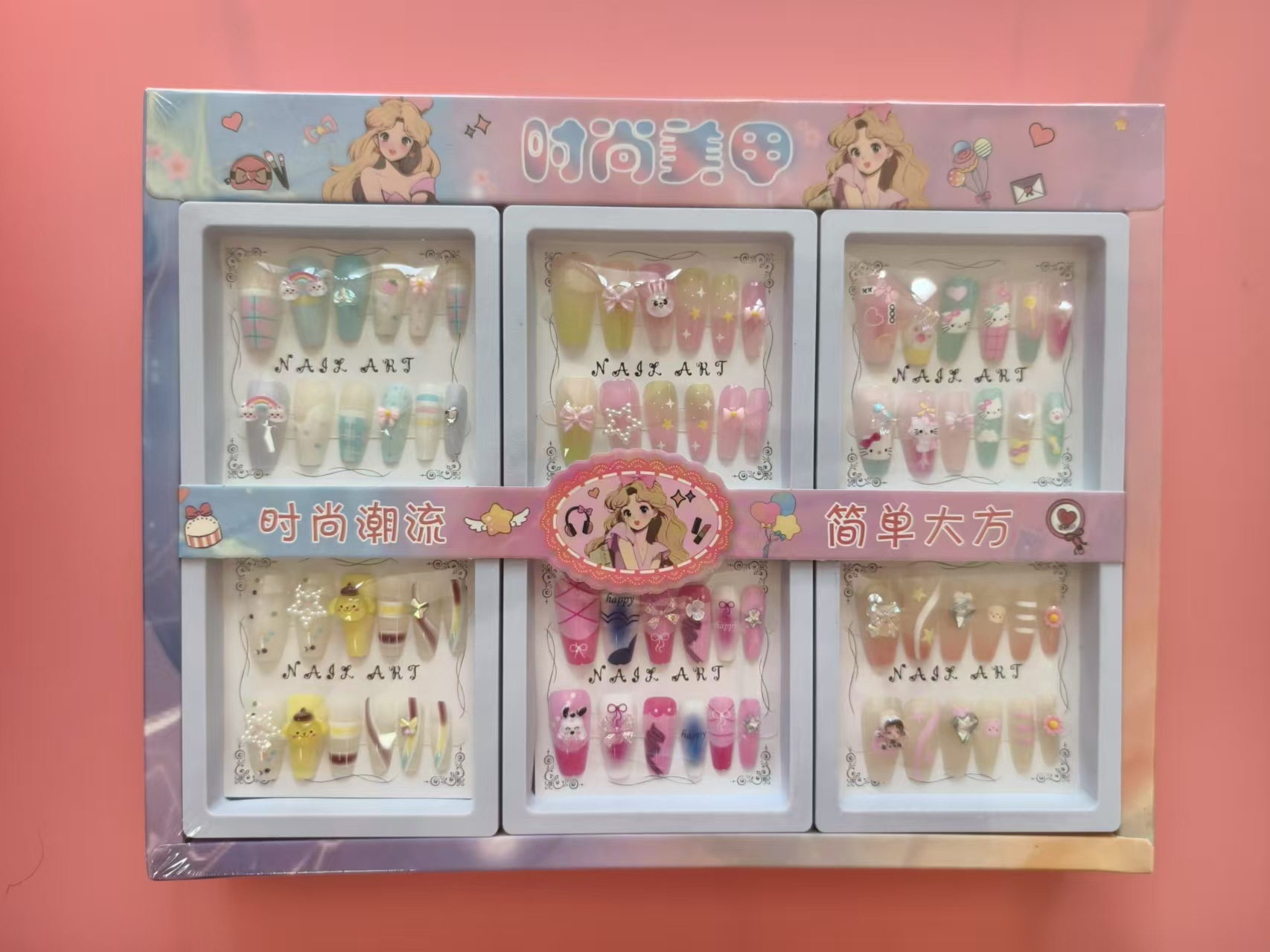 新款可爱指甲贴儿童女孩长款短款穿戴指甲贴装饰精品厂家直销