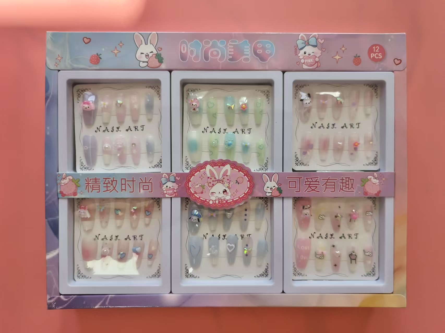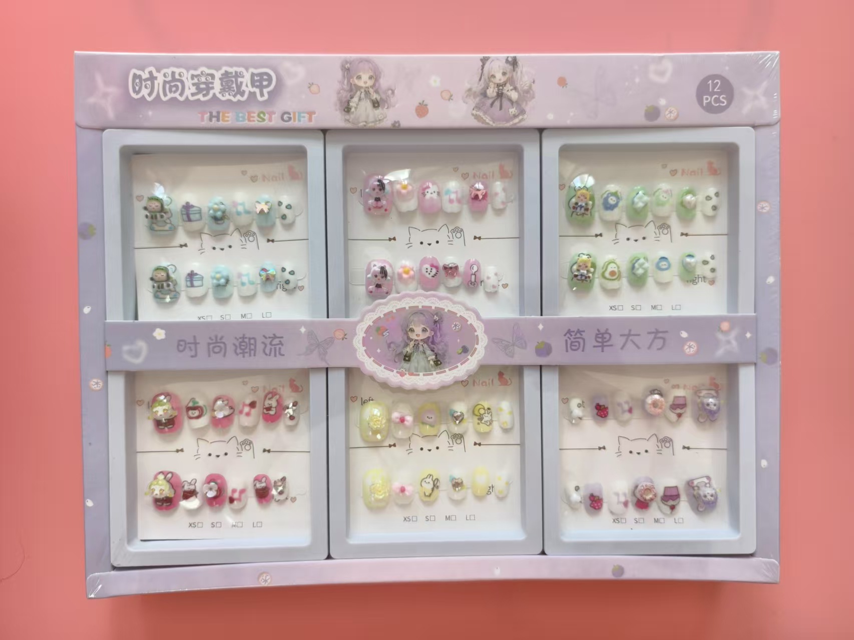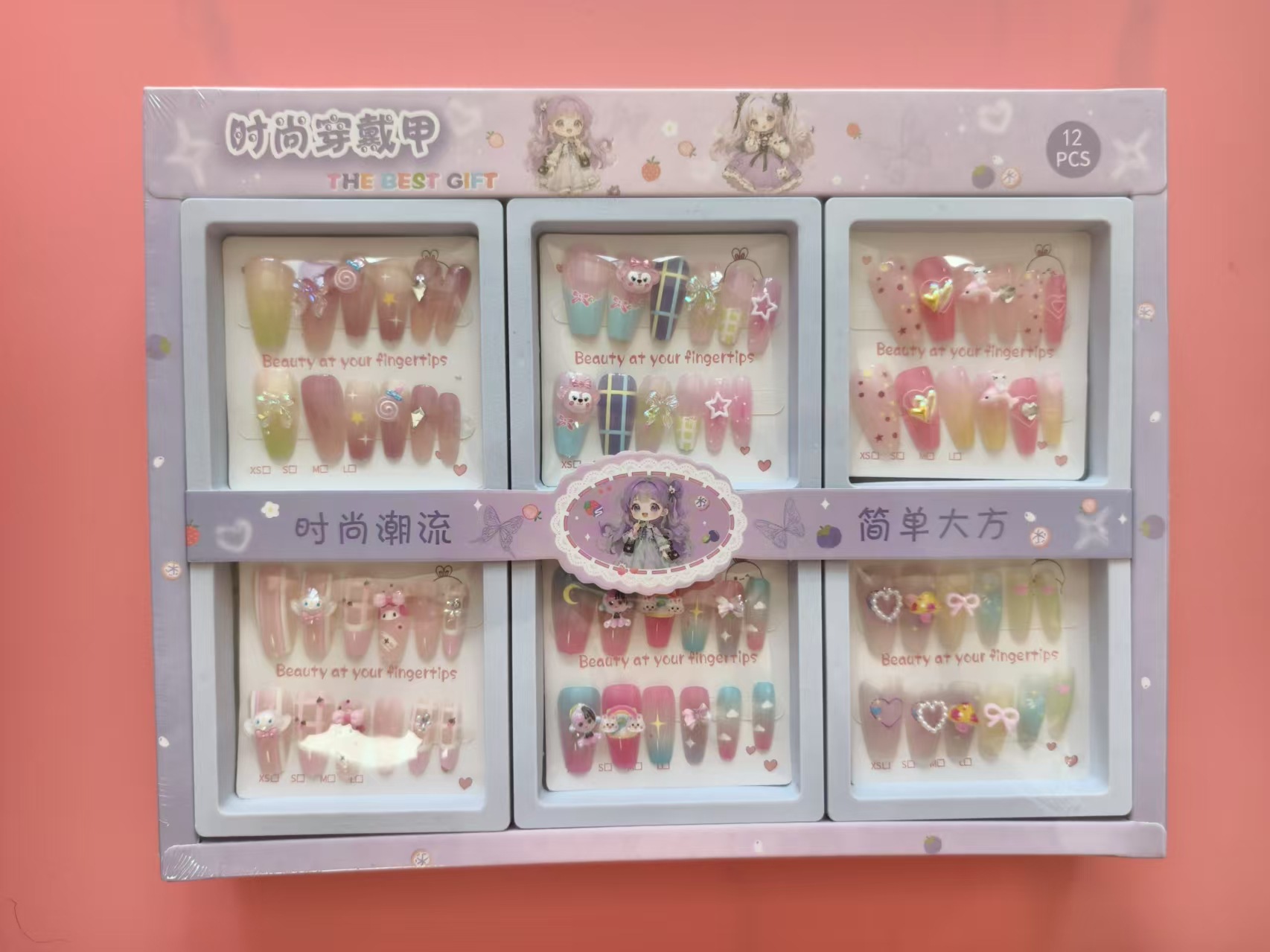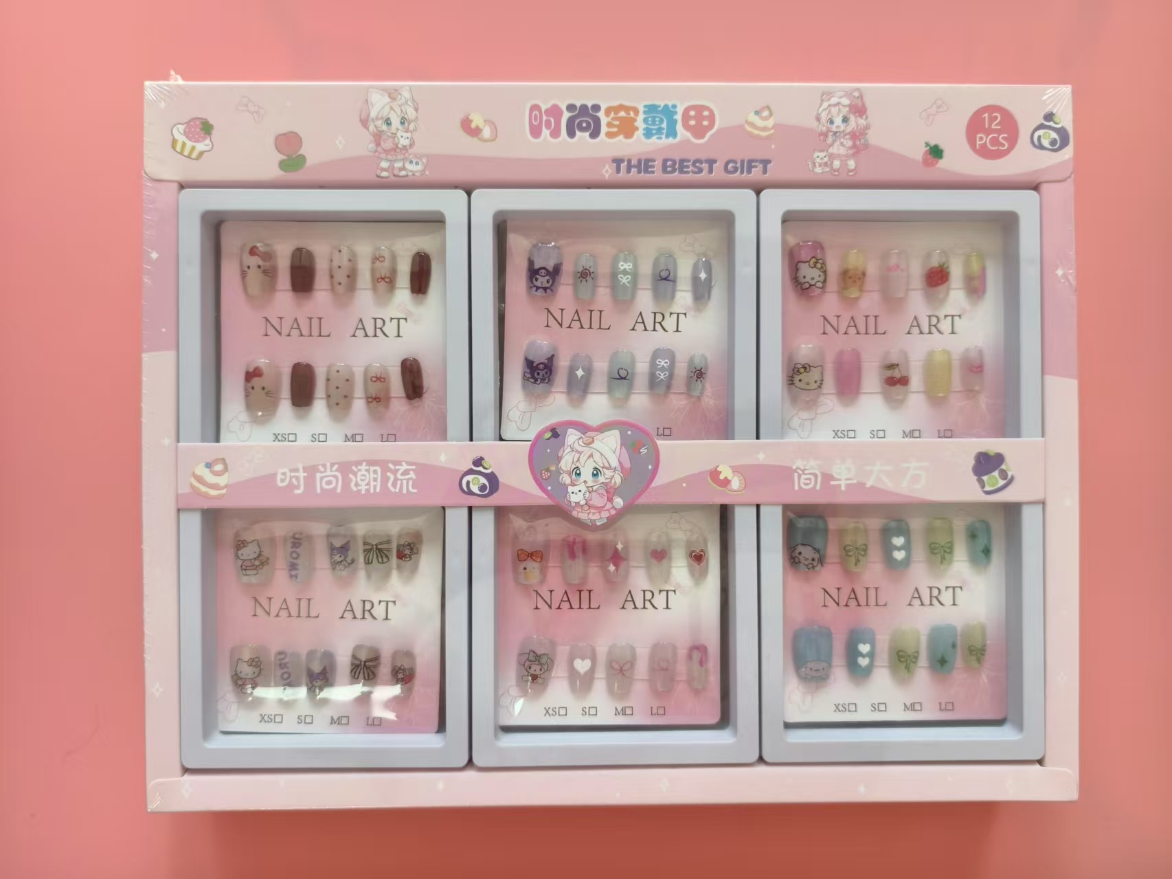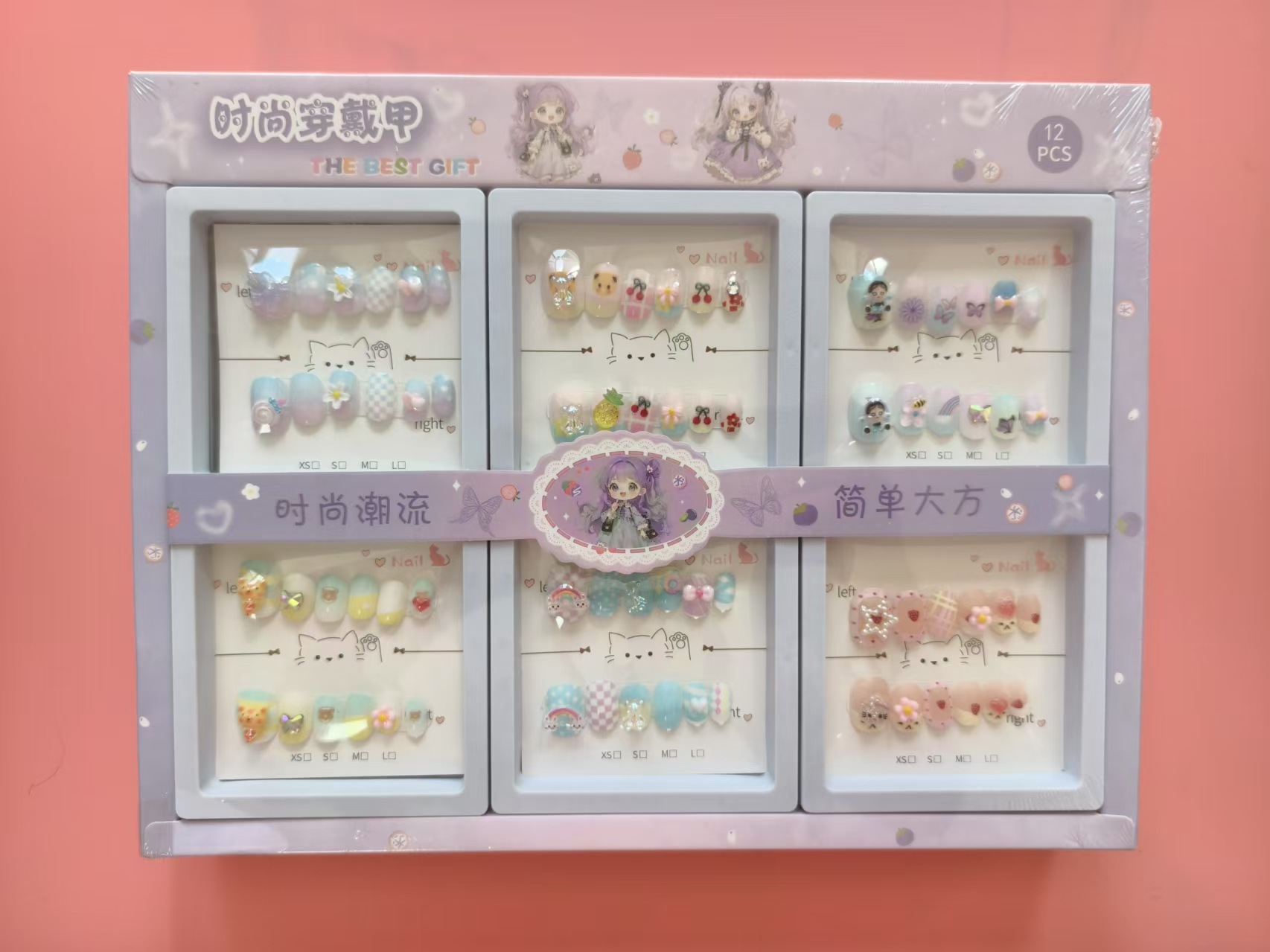 新款可爱指甲贴儿童女孩长款短款穿戴指甲贴装饰精品厂家直销