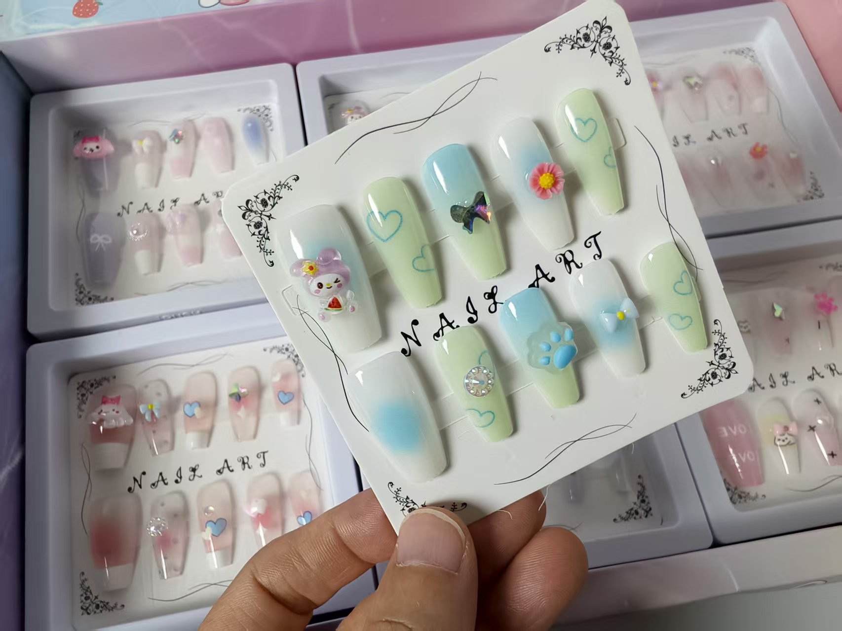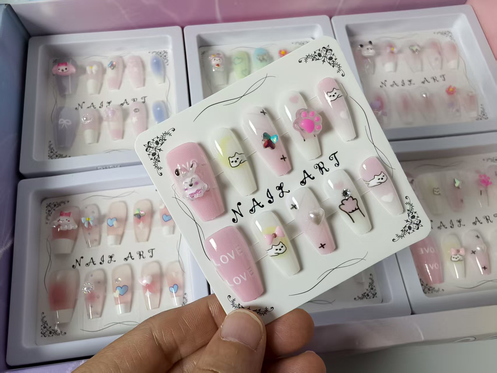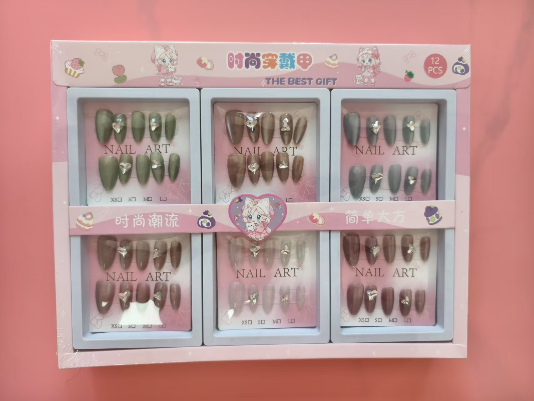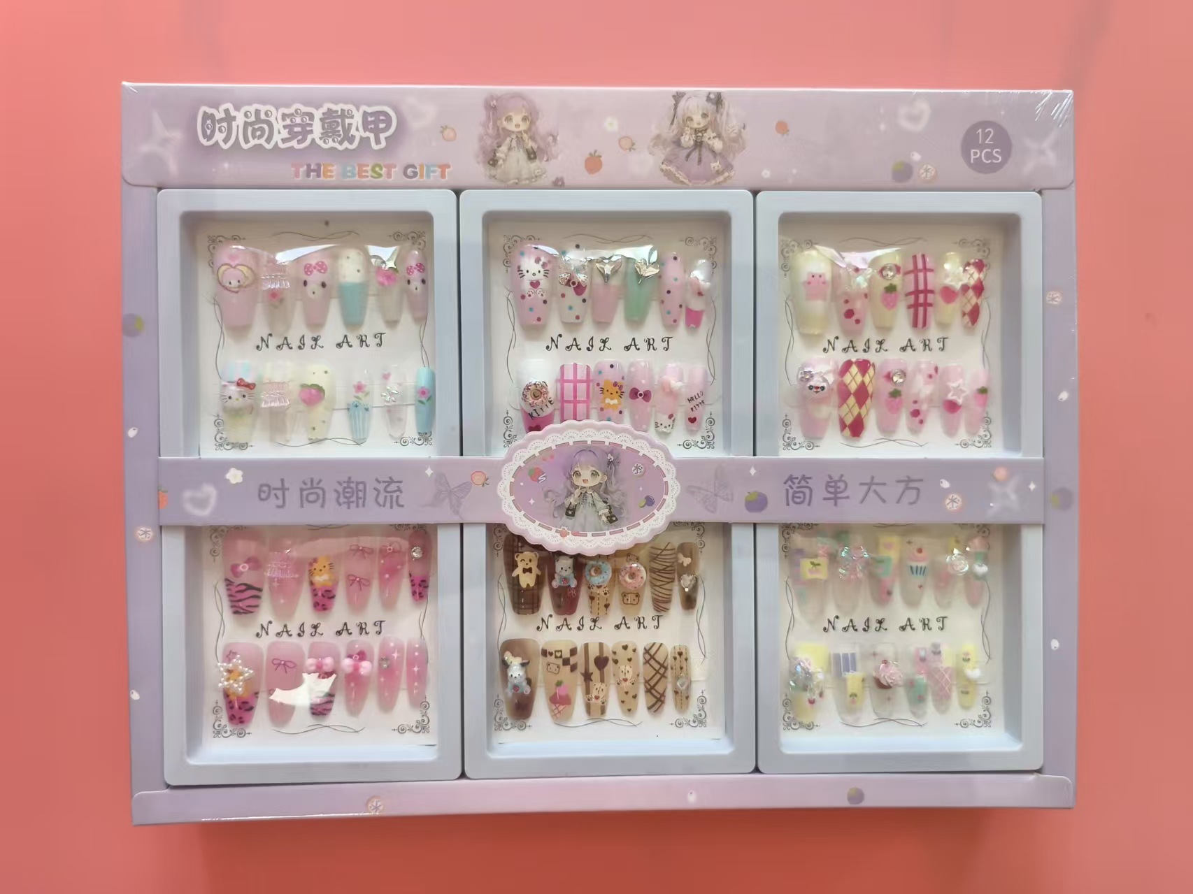 新款可爱指甲贴儿童女孩长款短款穿戴指甲贴装饰精品厂家直销
