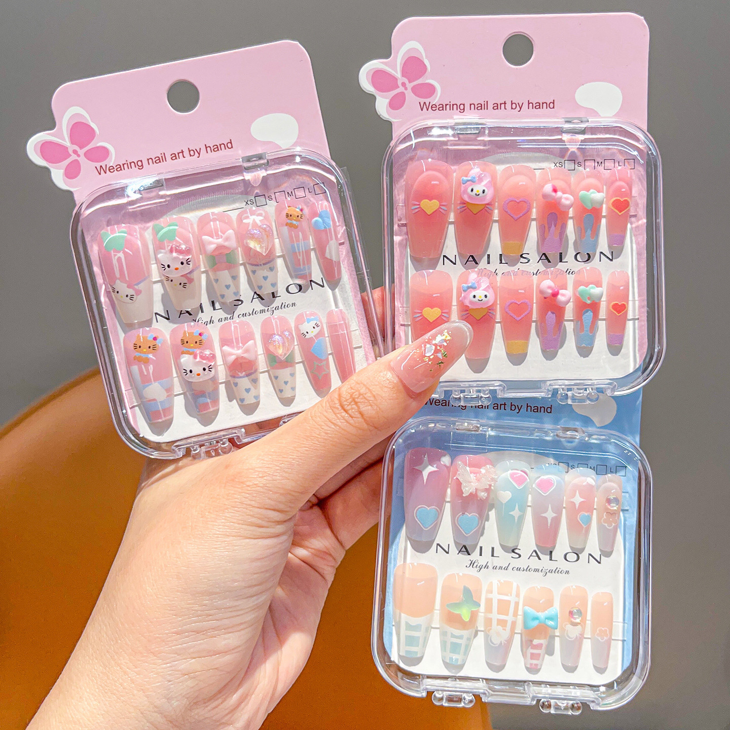 儿童穿戴甲卡通可爱2025新款女童长款指甲贴显白女孩小学生美甲贴