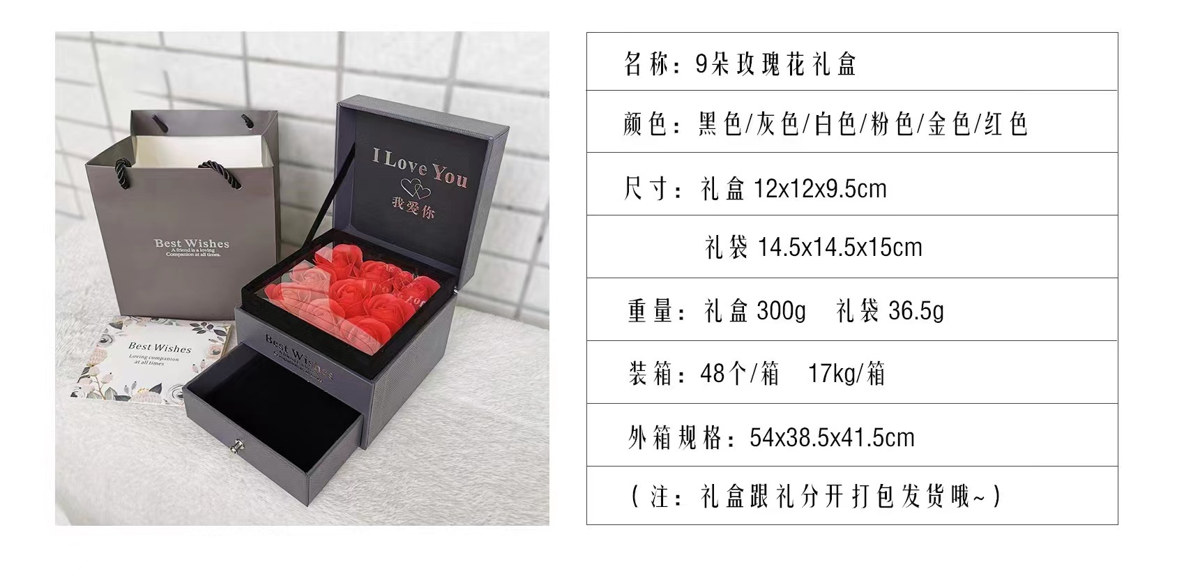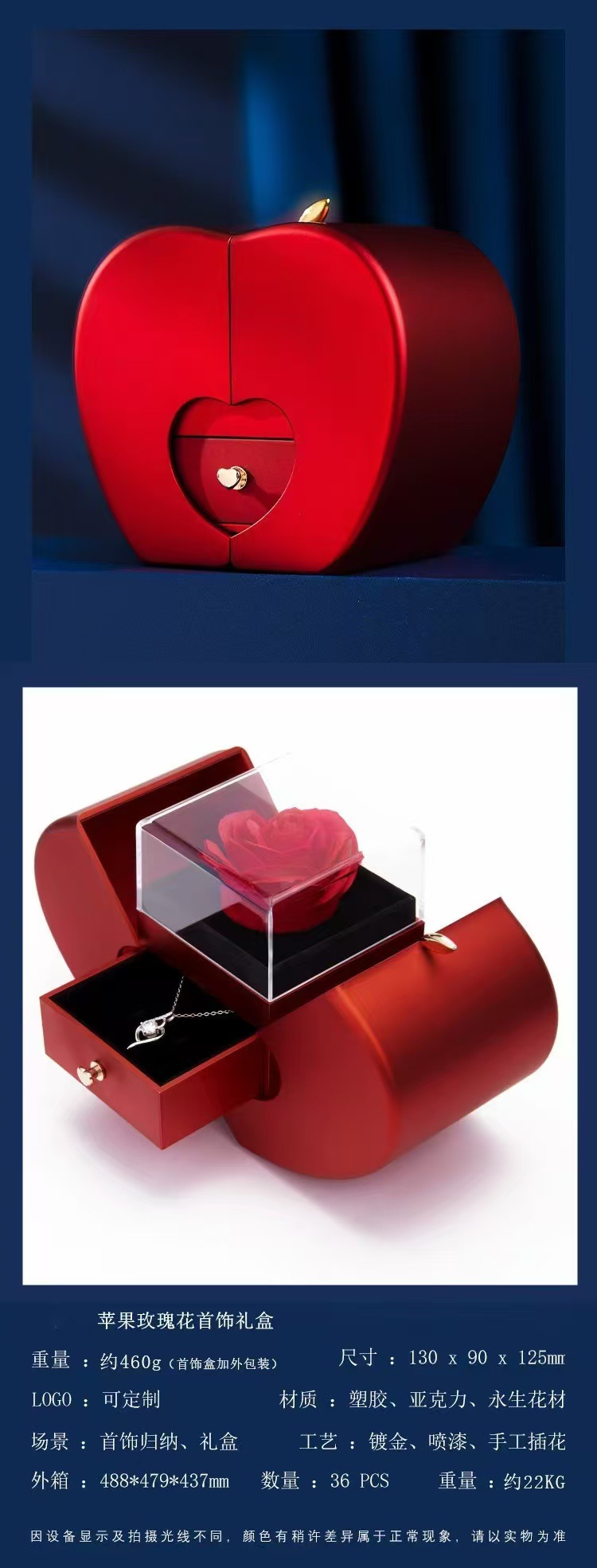 跨境欧美100种语言项链投影水晶我爱你桃心吊坠玫瑰花情人节礼物