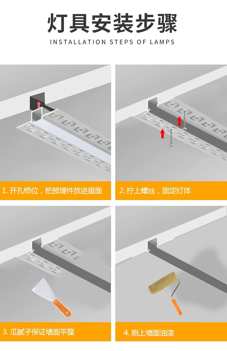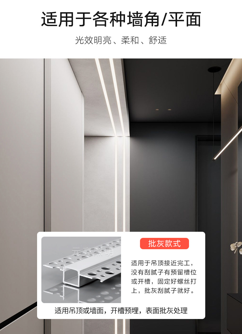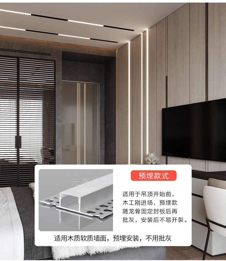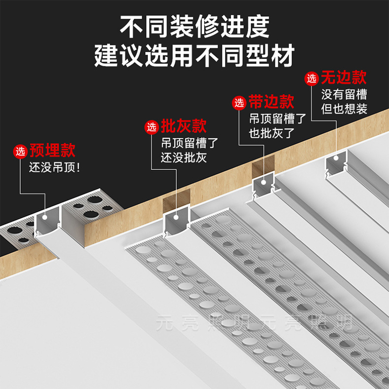 led线型灯铝槽线条灯嵌入式线性灯预埋花边灯槽吊顶铝合金型材