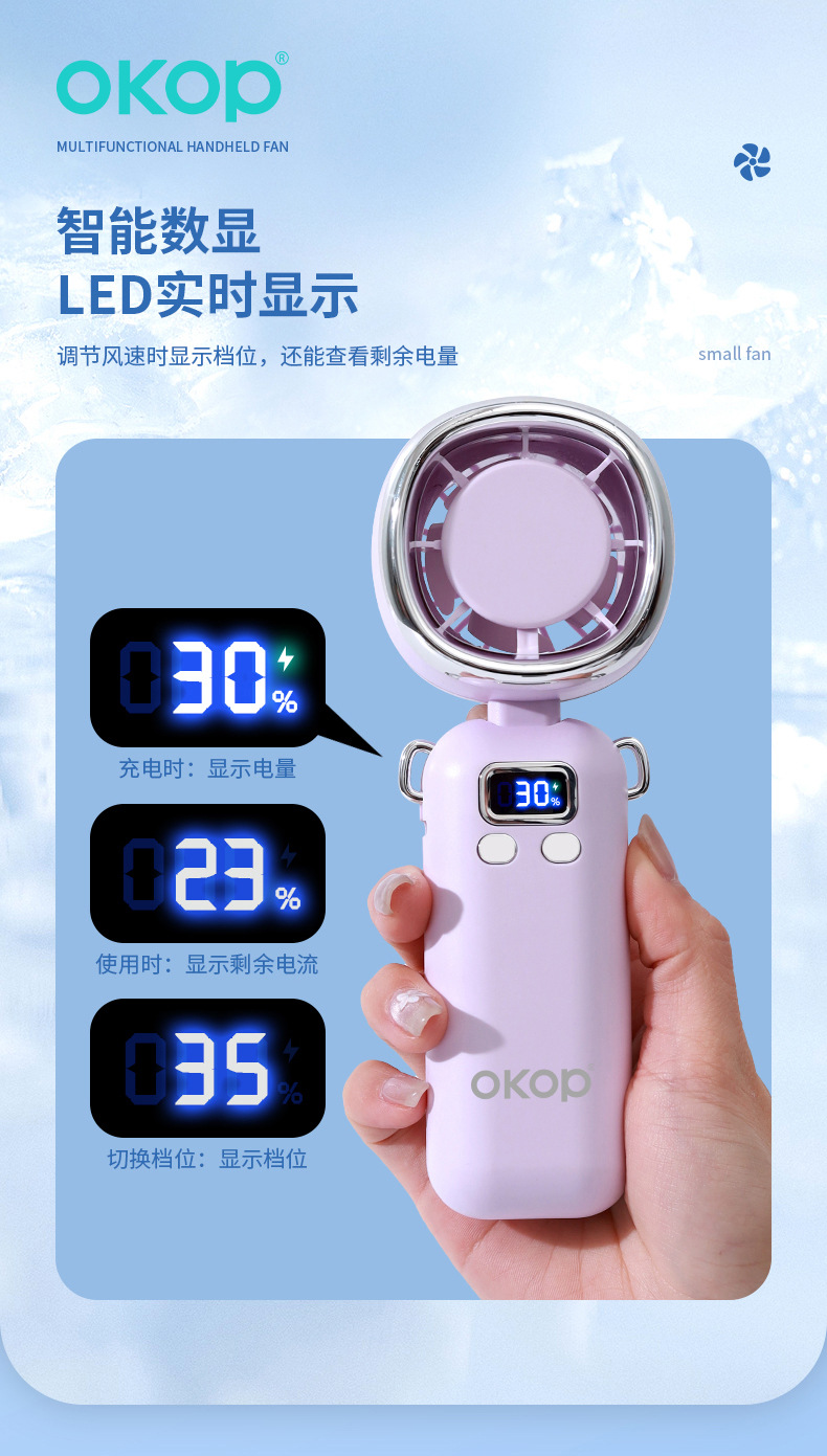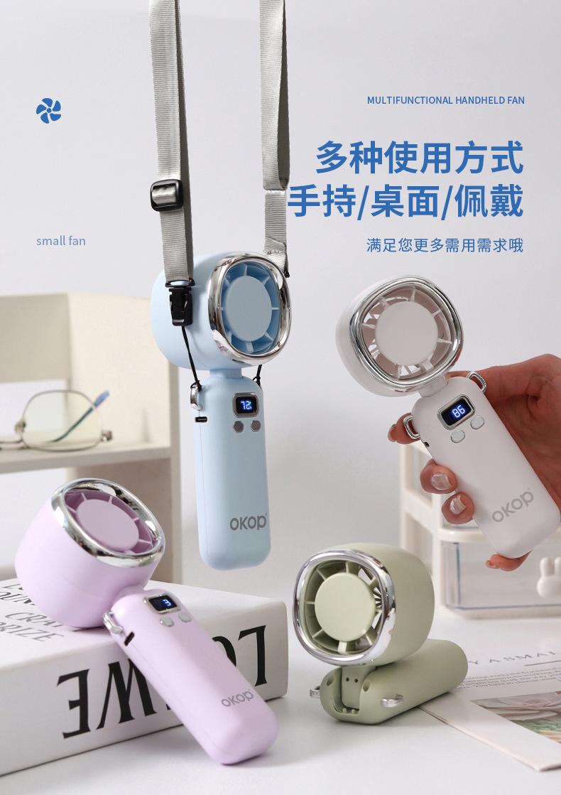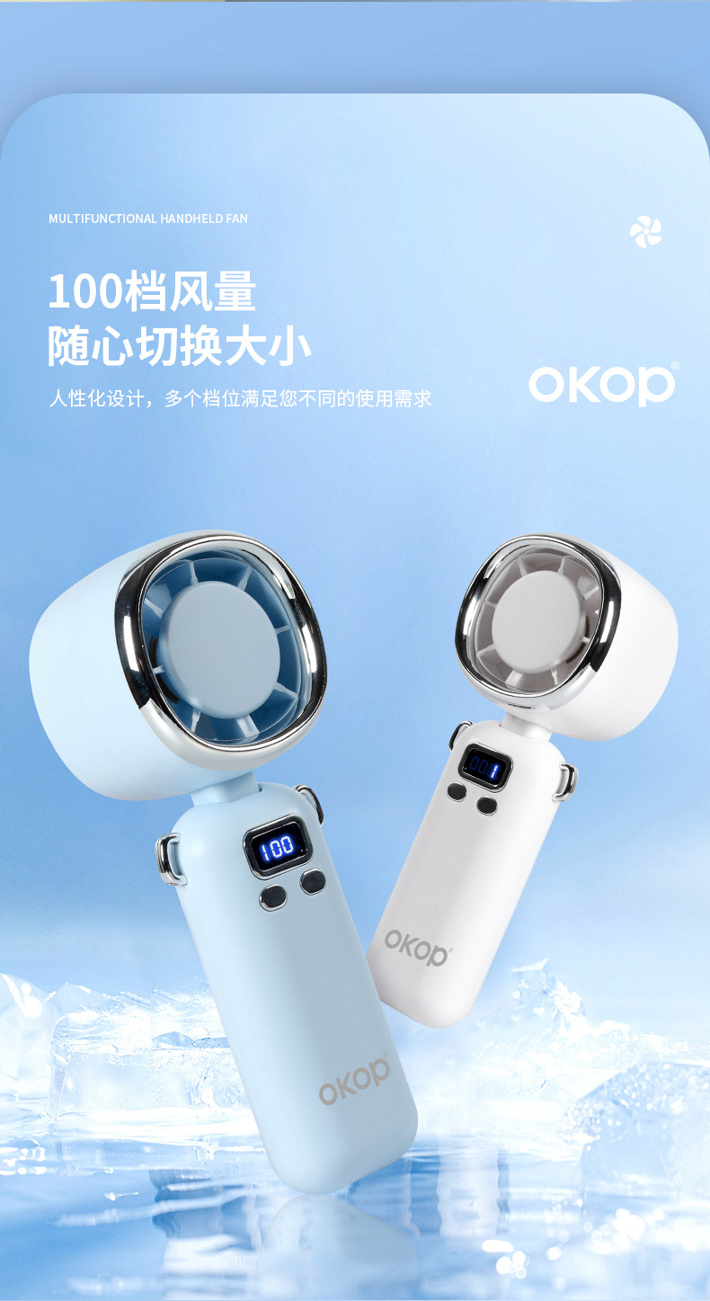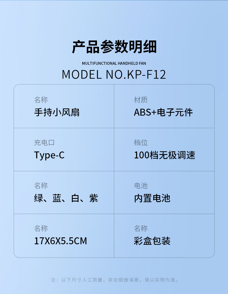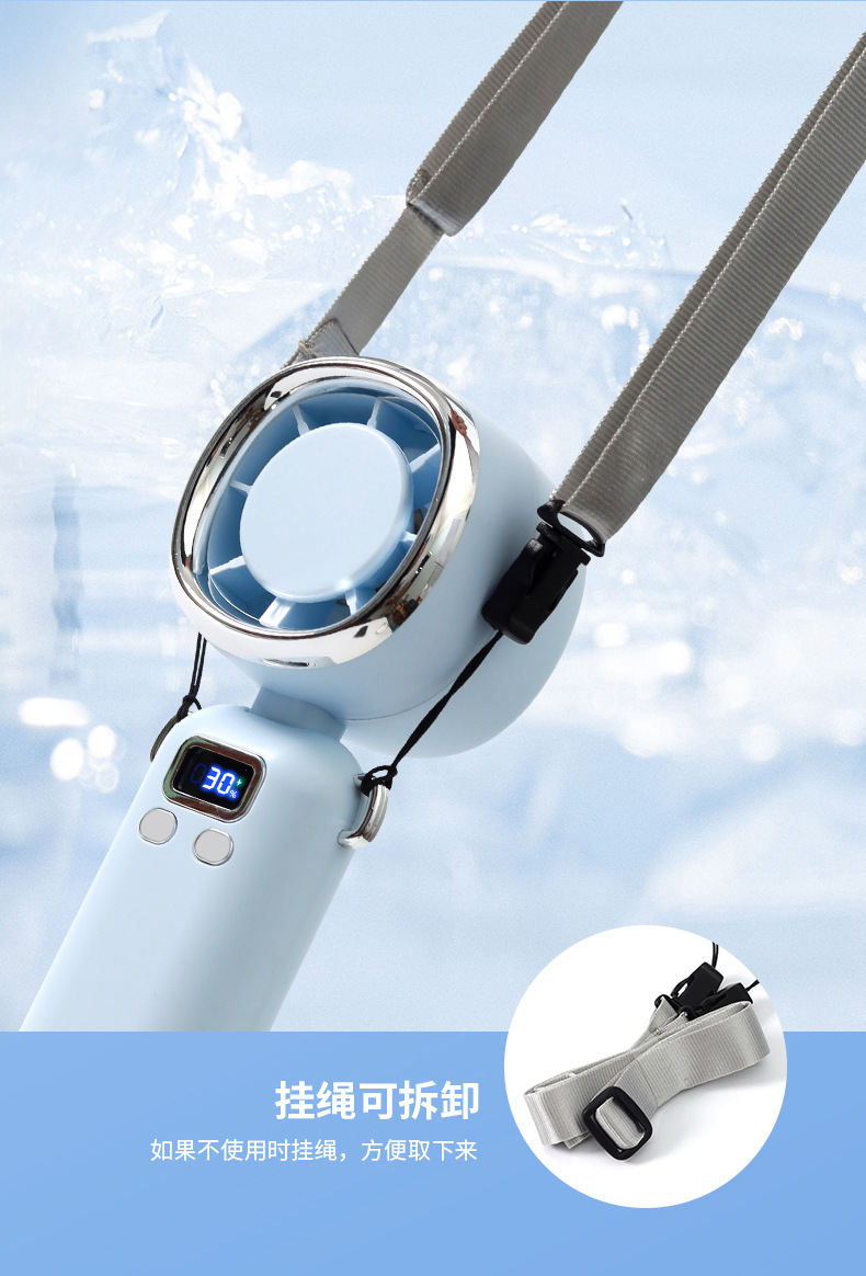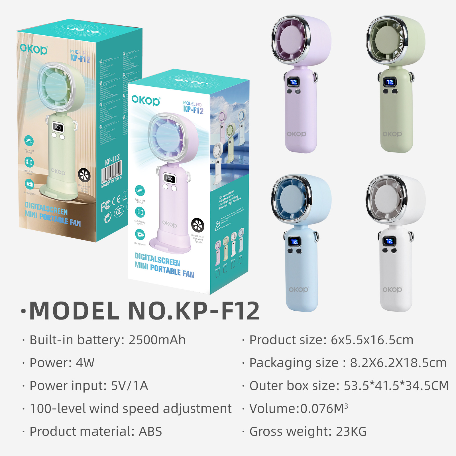 F12手持小风扇办公室桌面静音数显100档风速户外便携长续航跨境