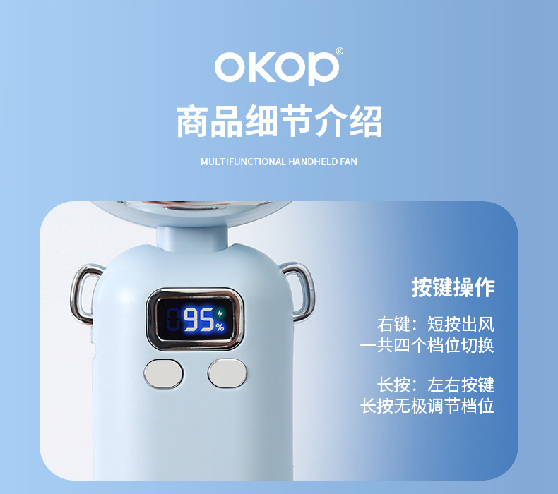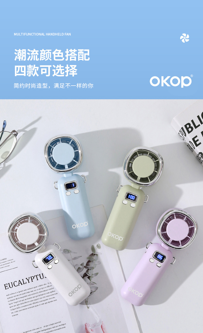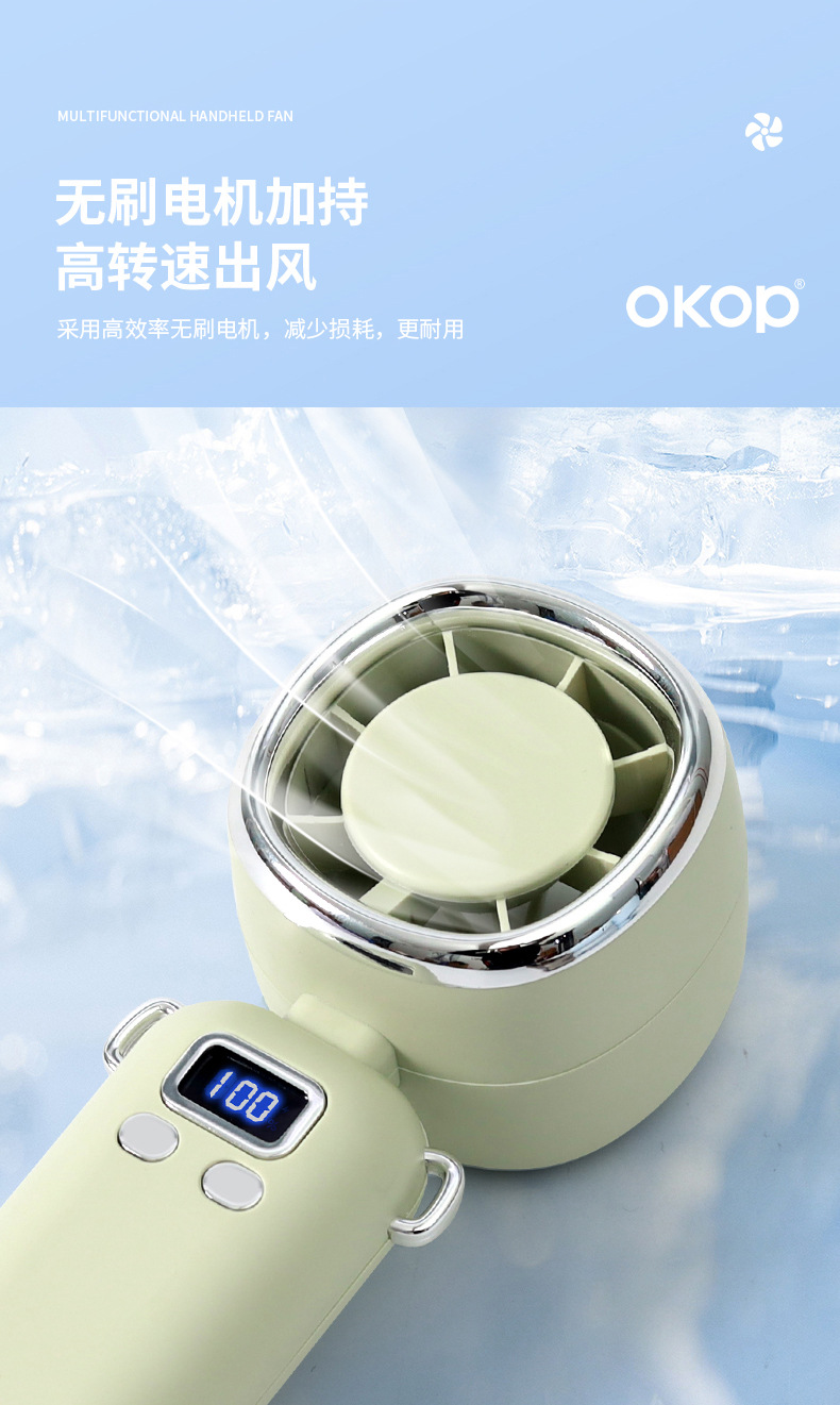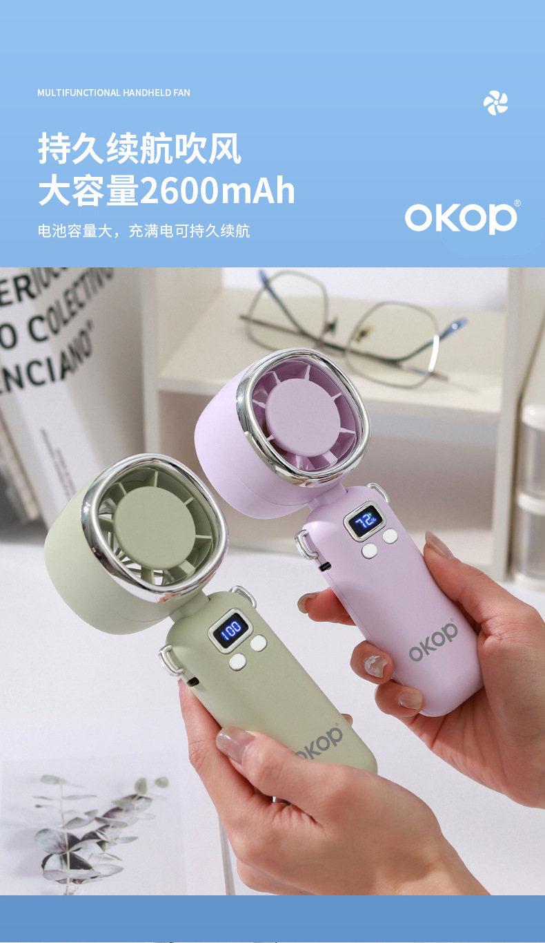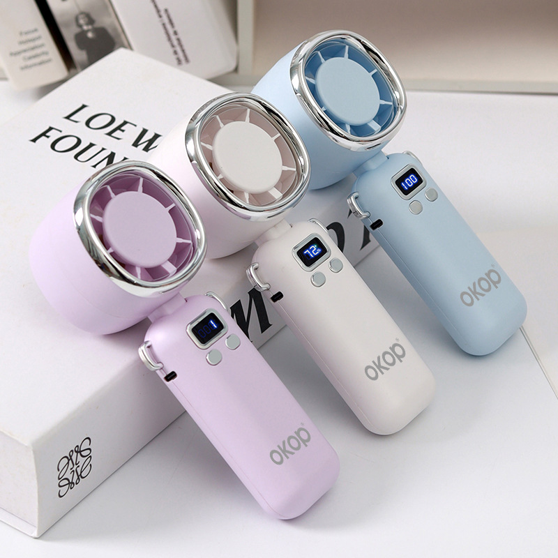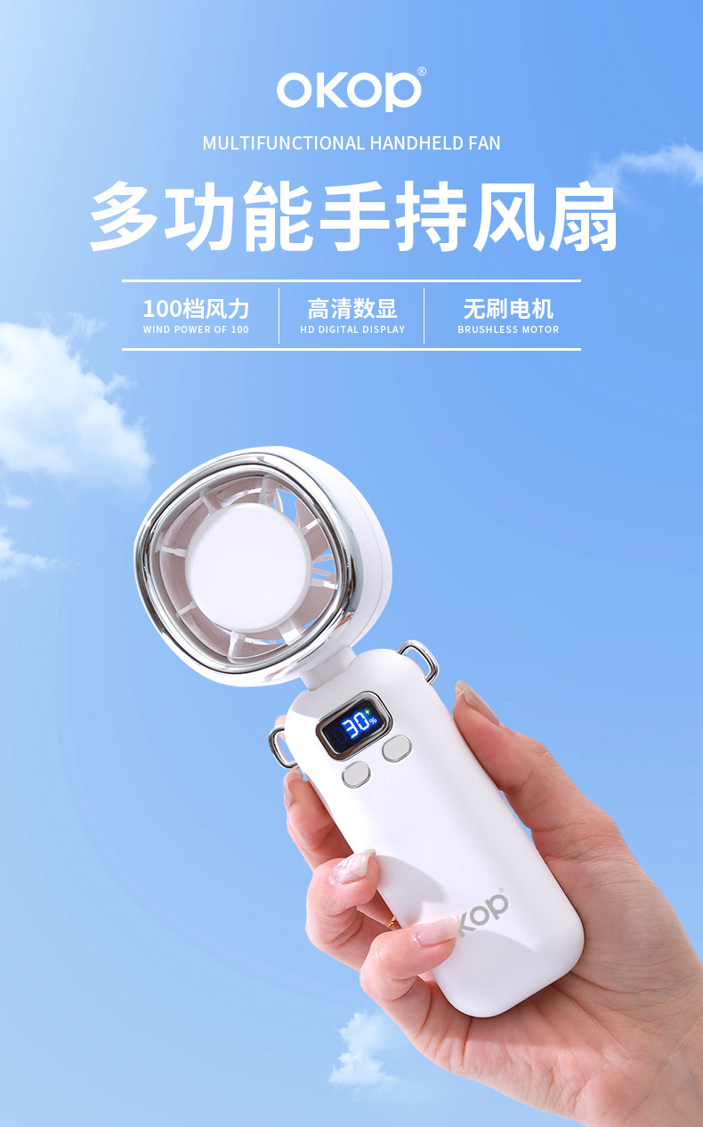 F12手持小风扇办公室桌面静音数显100档风速户外便携长续航跨境