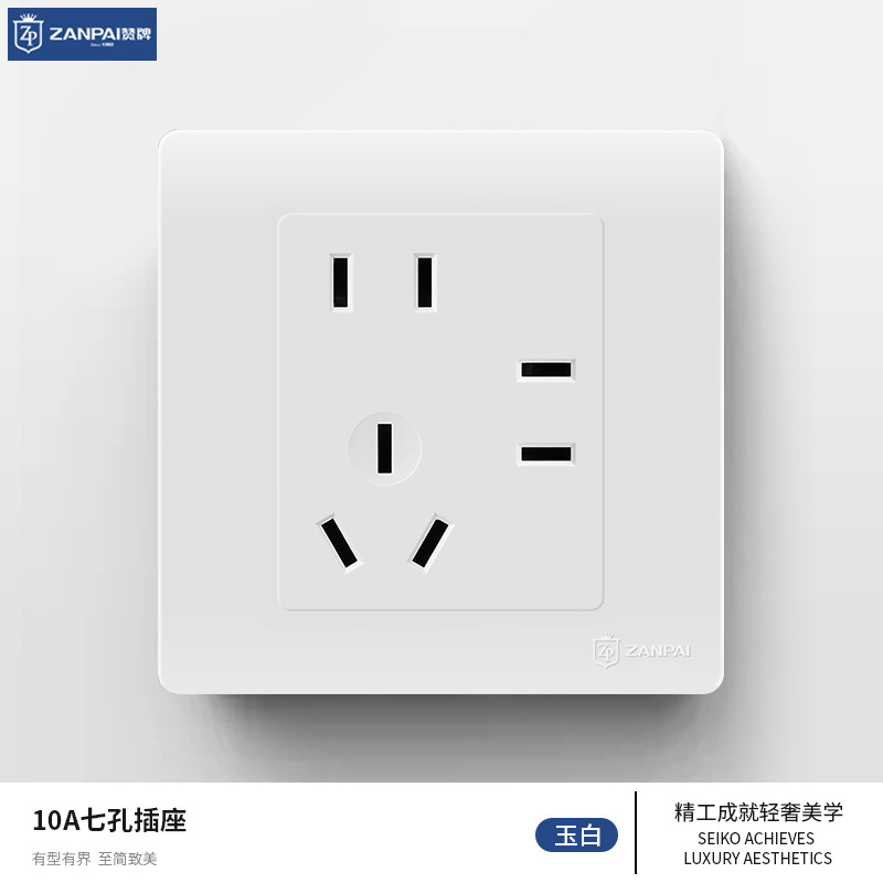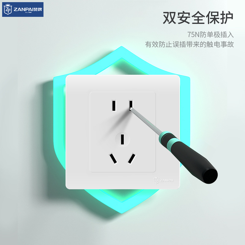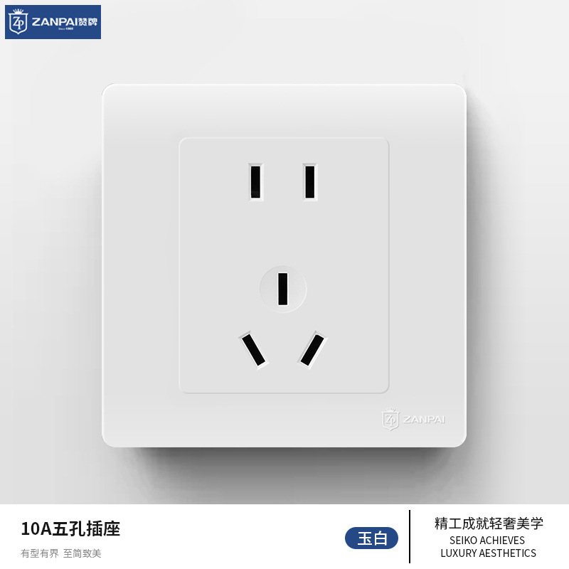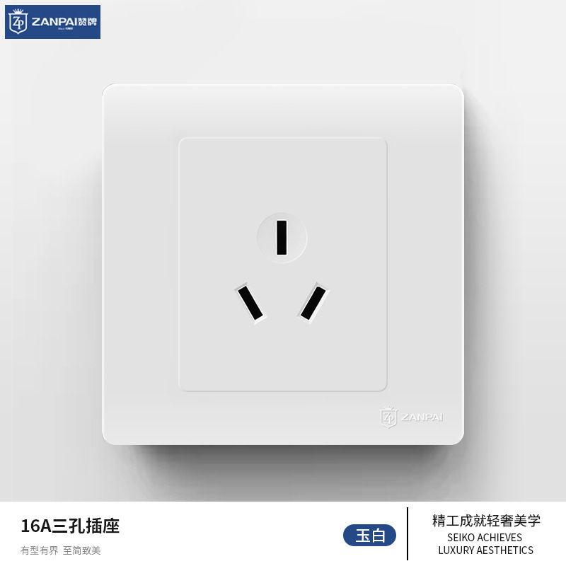 赞牌暗装86型五5孔插座面板一开单控16A两开双控墙壁插座工程款