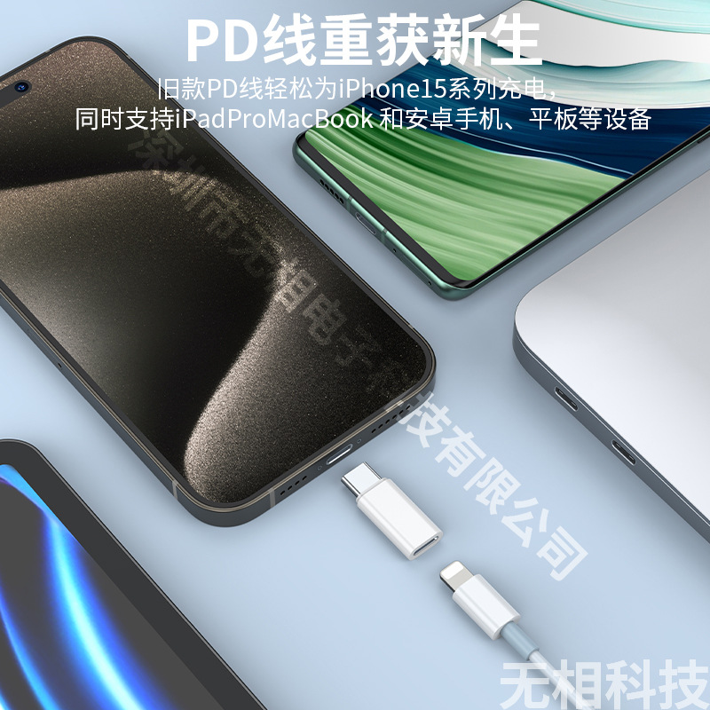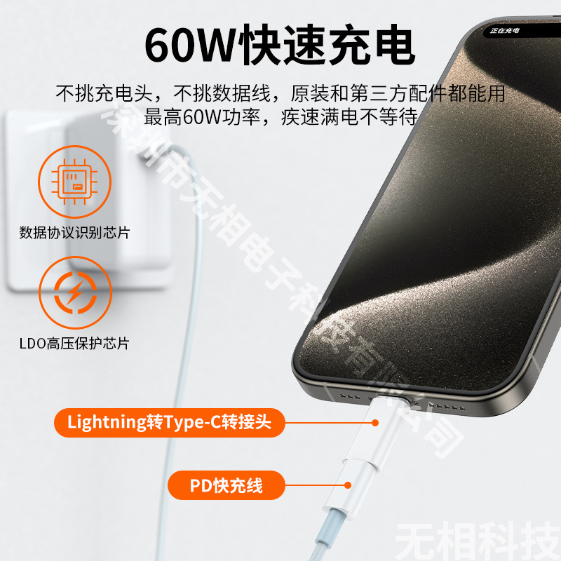 适用苹果iphone17Pro 60W快充转接头lightning母转type-c公转换器