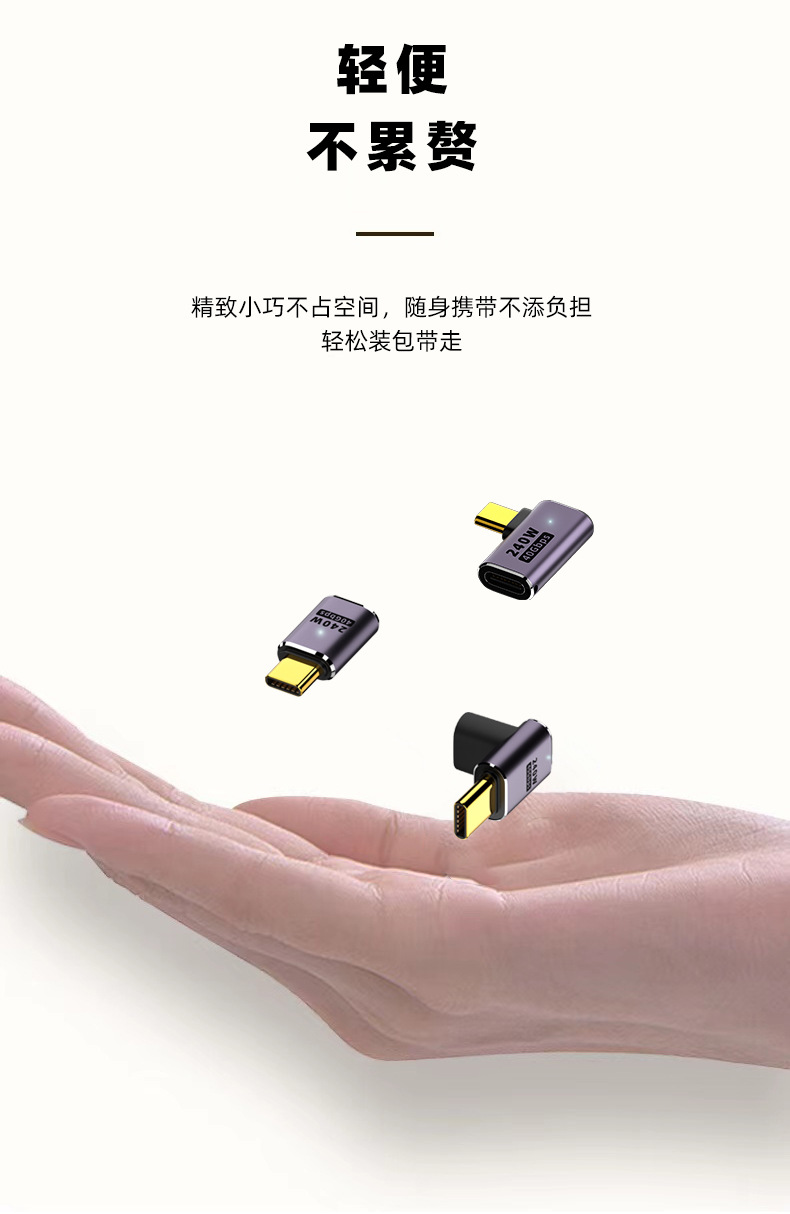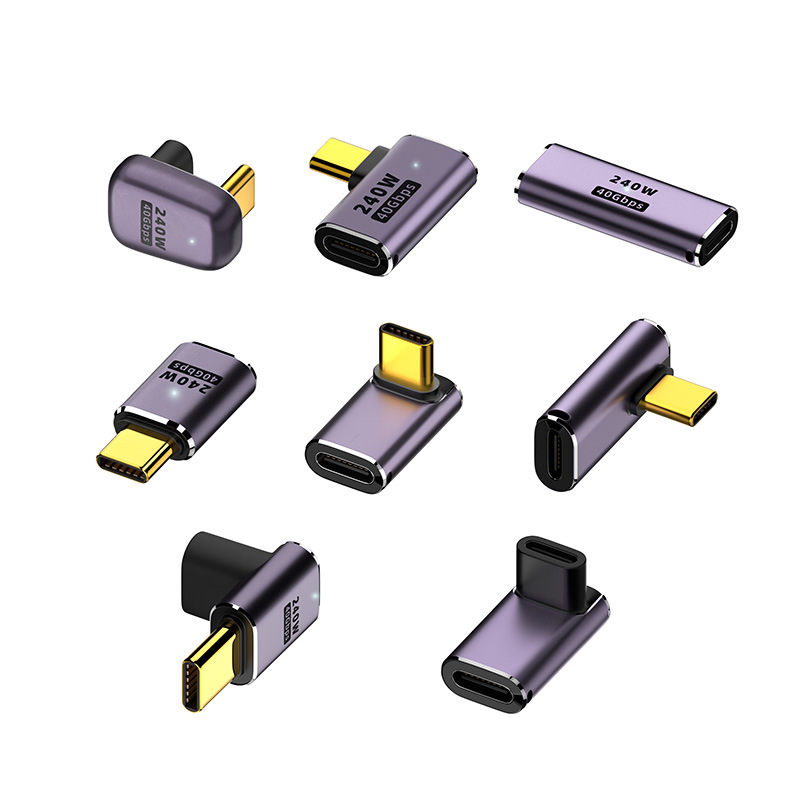 雷电4弯头typec公母延长C公转C母pd240W快充40GB传输全功能转接头