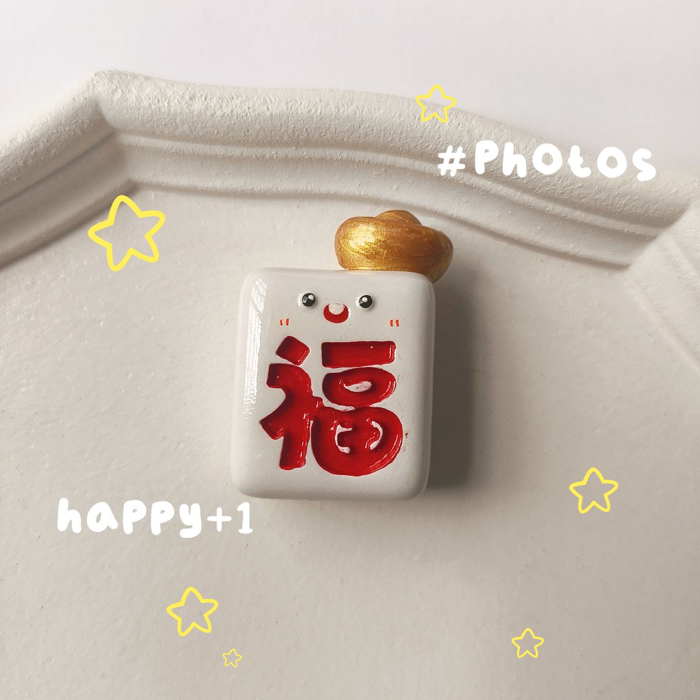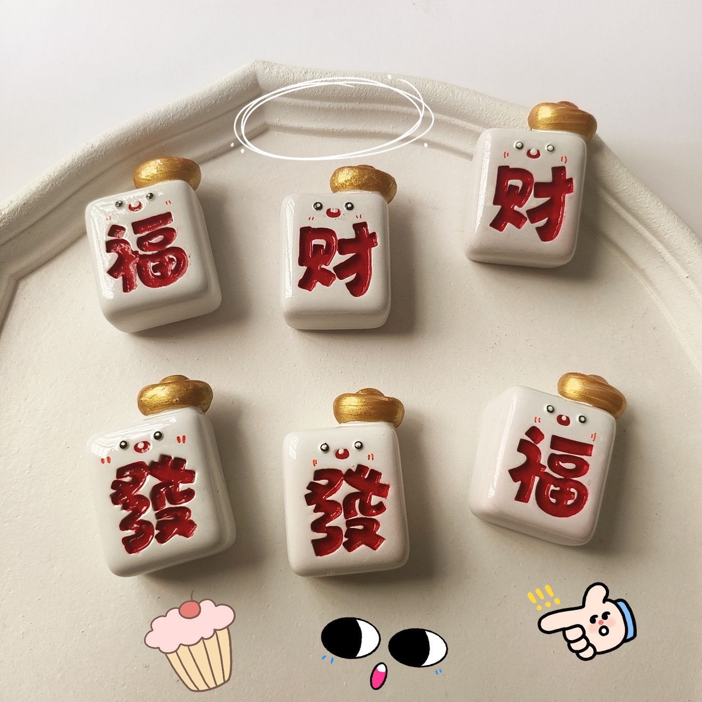 创意国潮卡通麻将发财福喜庆冰箱贴磁贴配件配饰树脂材质磁力贴