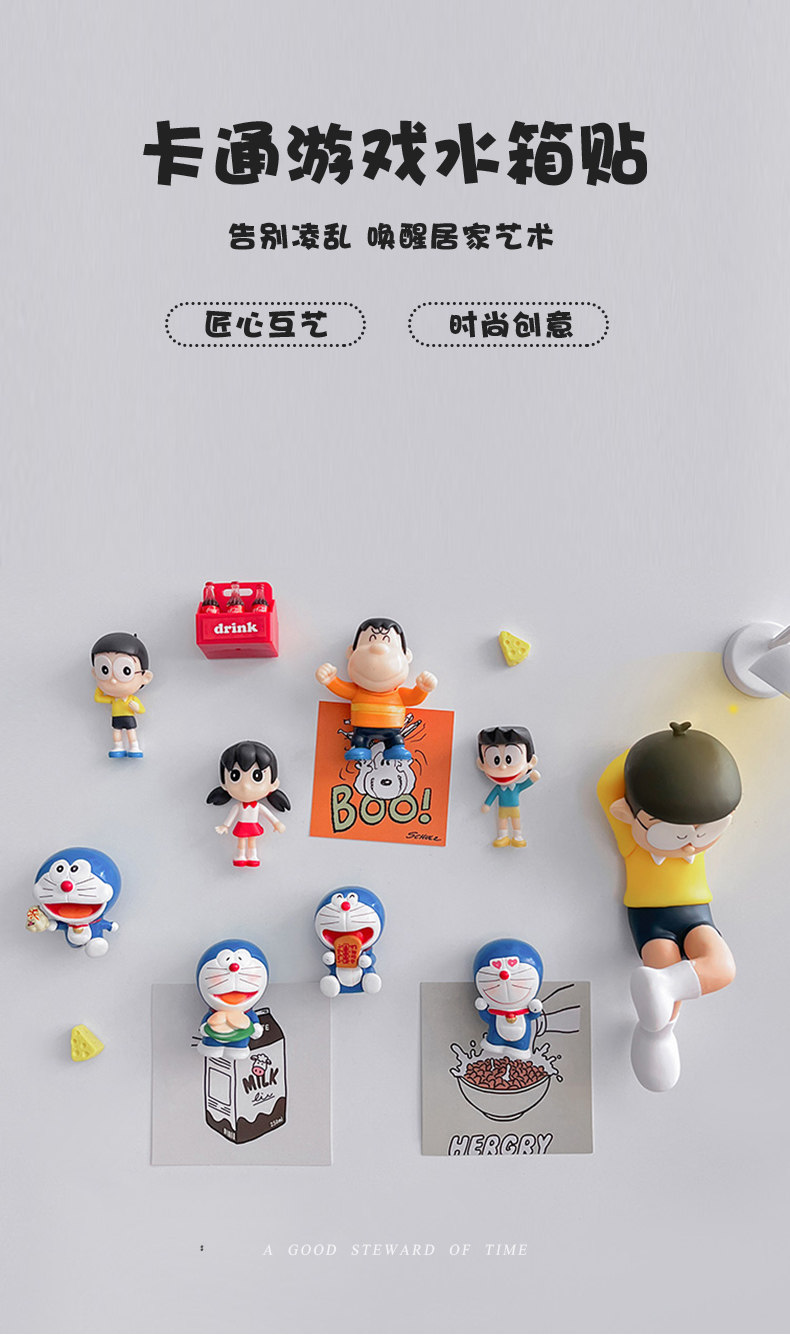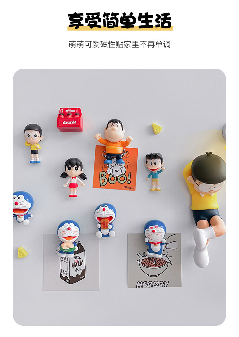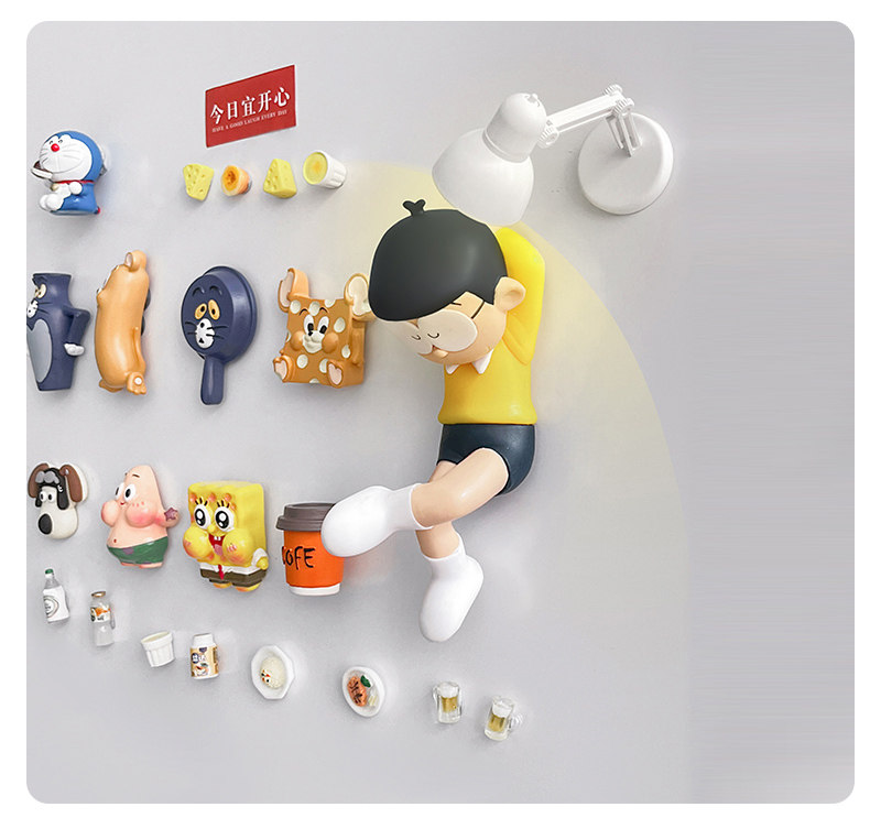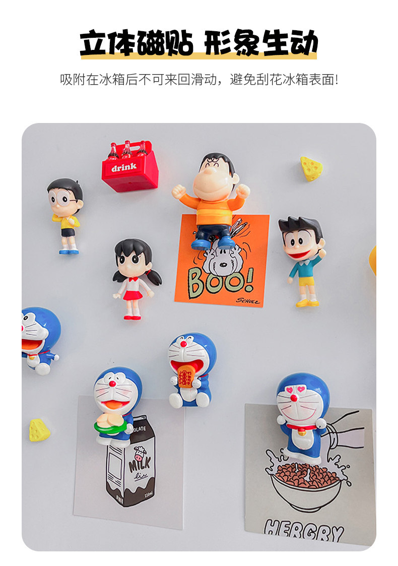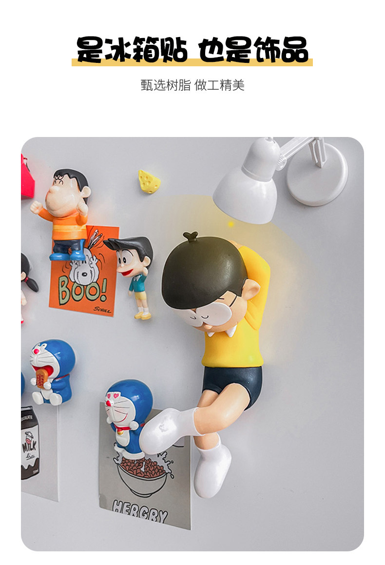 创意睡觉大熊 哆啦a梦冰箱磁吸贴个性3d立体无痕贴入户门家居装饰