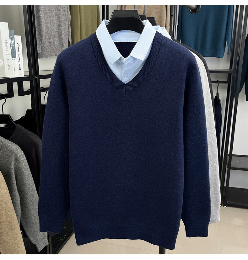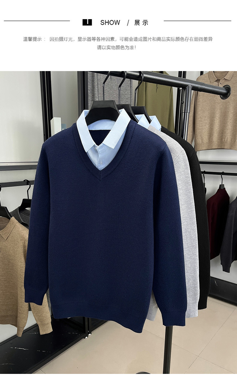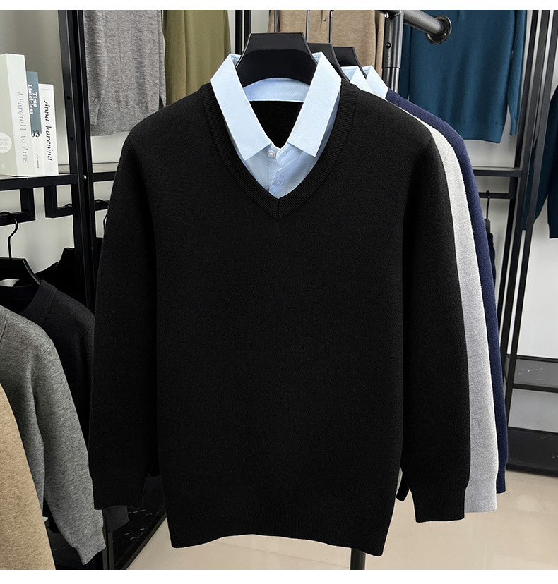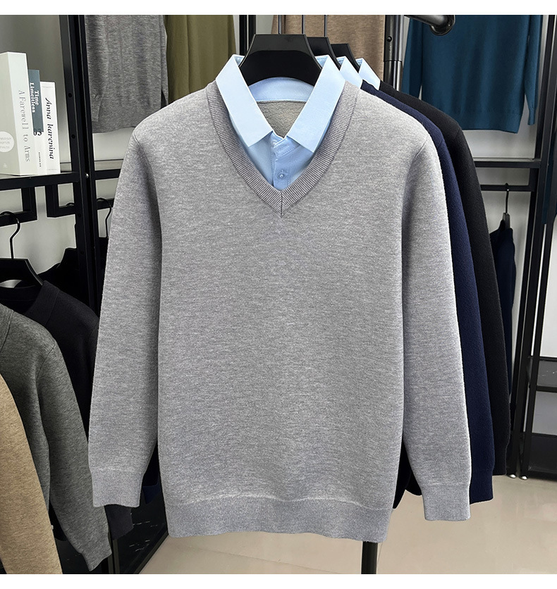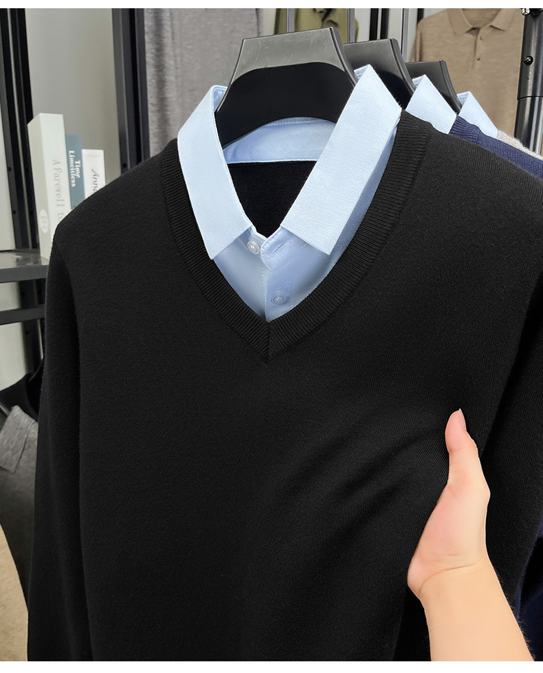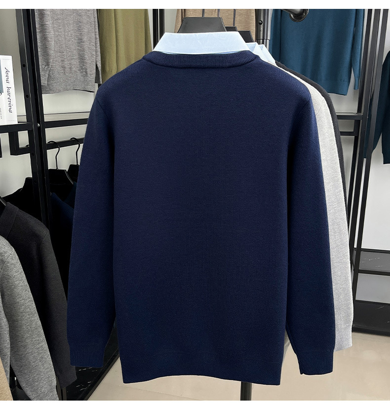 2025秋冬一体绒加绒加厚600克毛衣男针织假两件衬衫领纯色打底衫