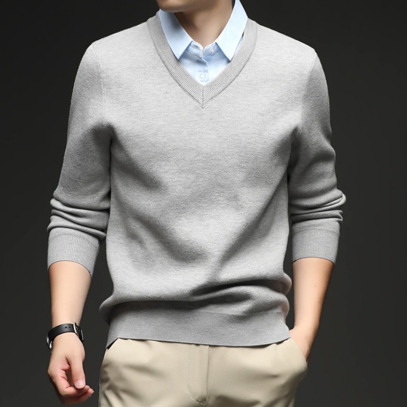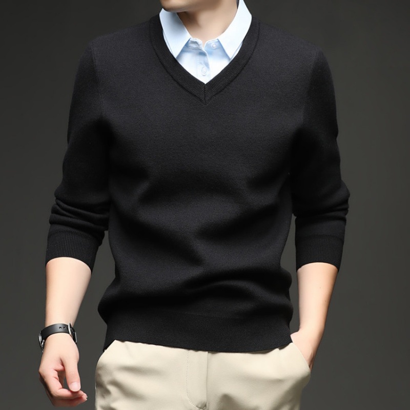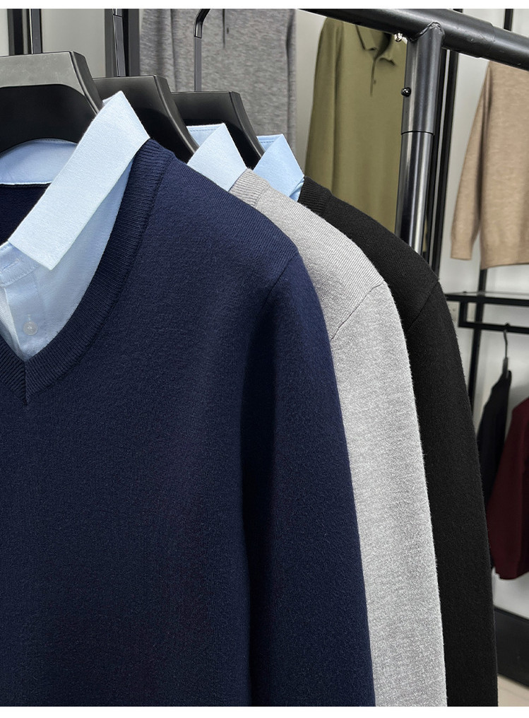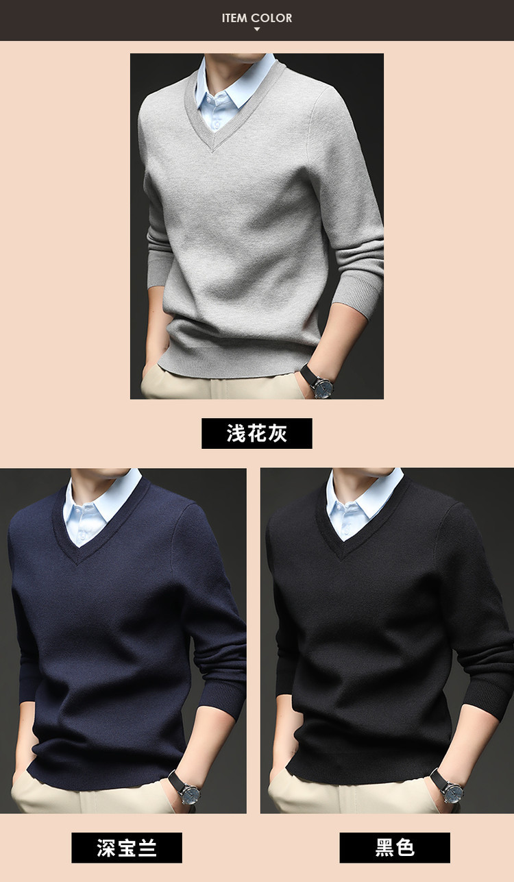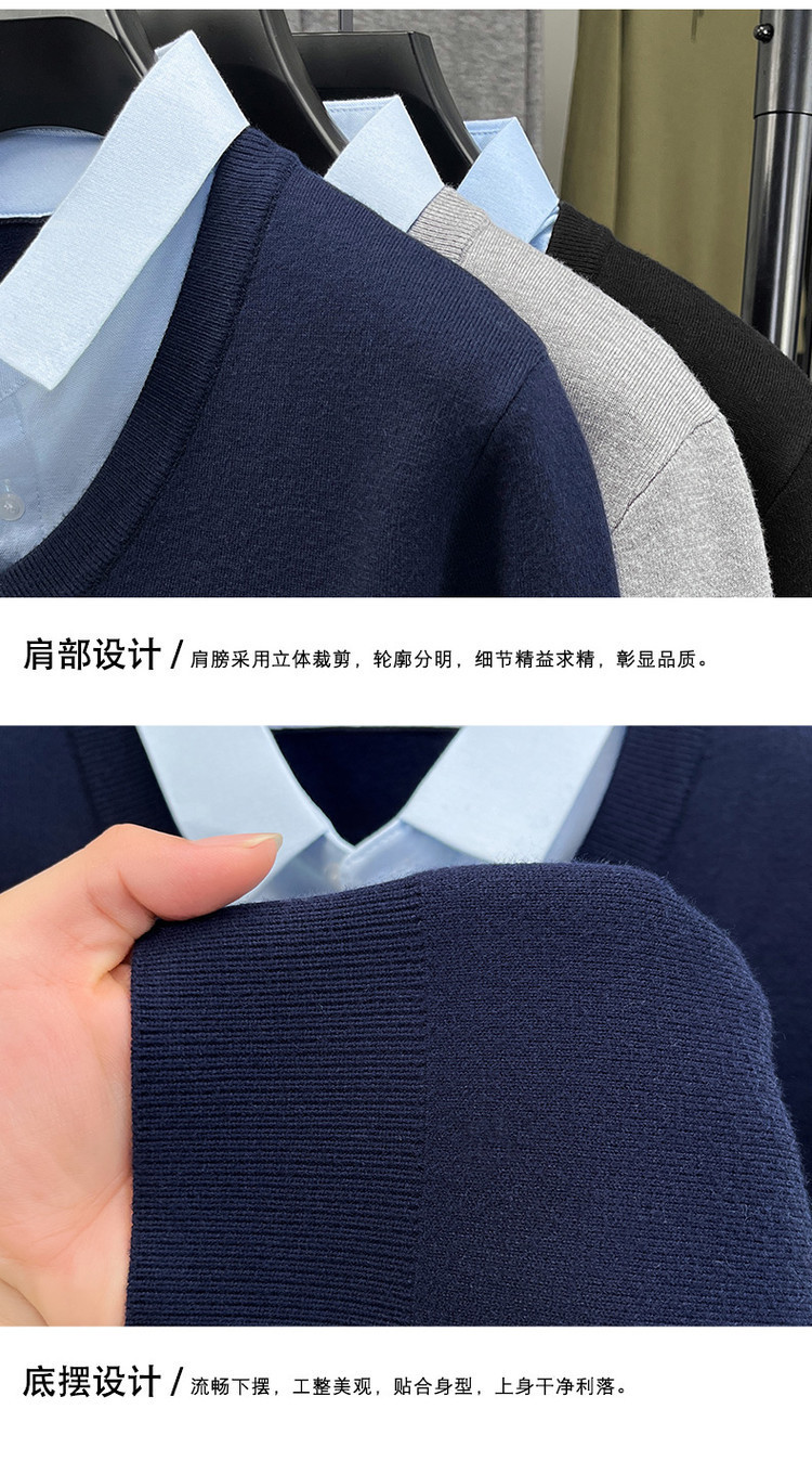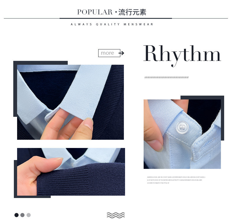 2025秋冬一体绒加绒加厚600克毛衣男针织假两件衬衫领纯色打底衫
