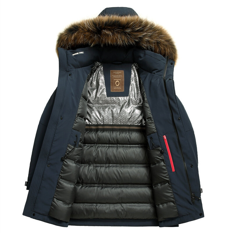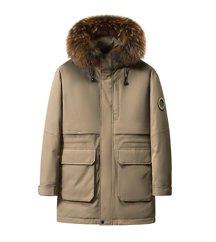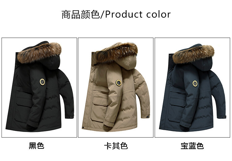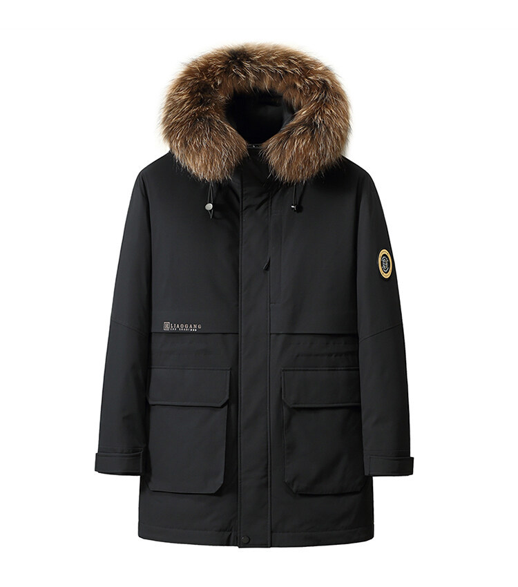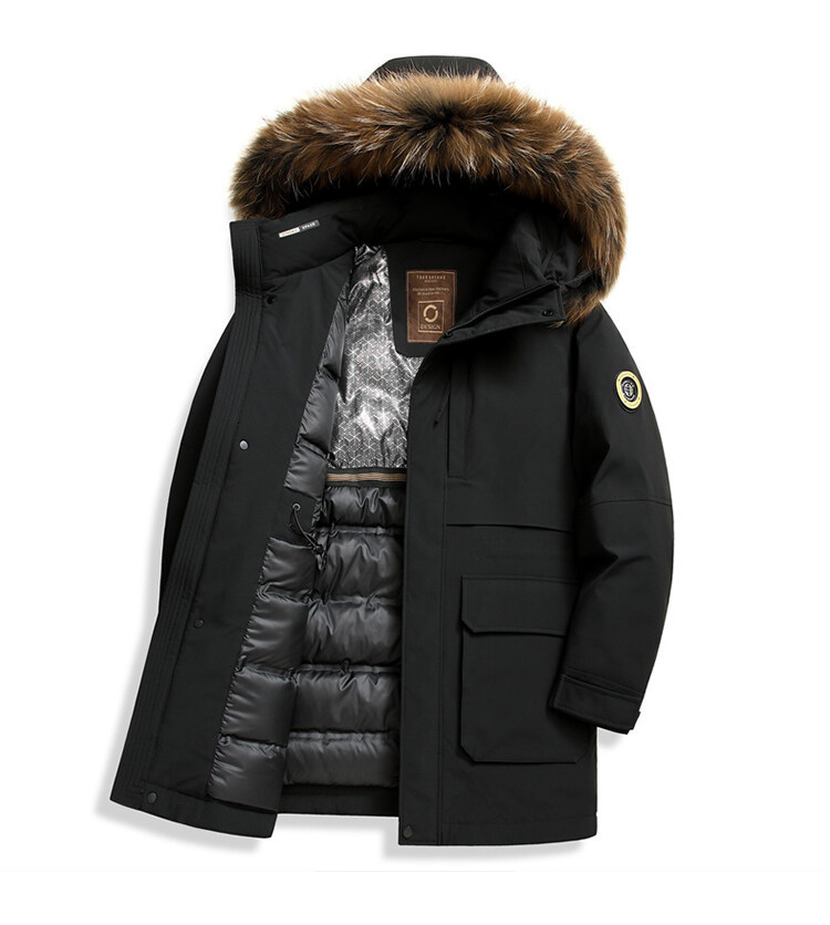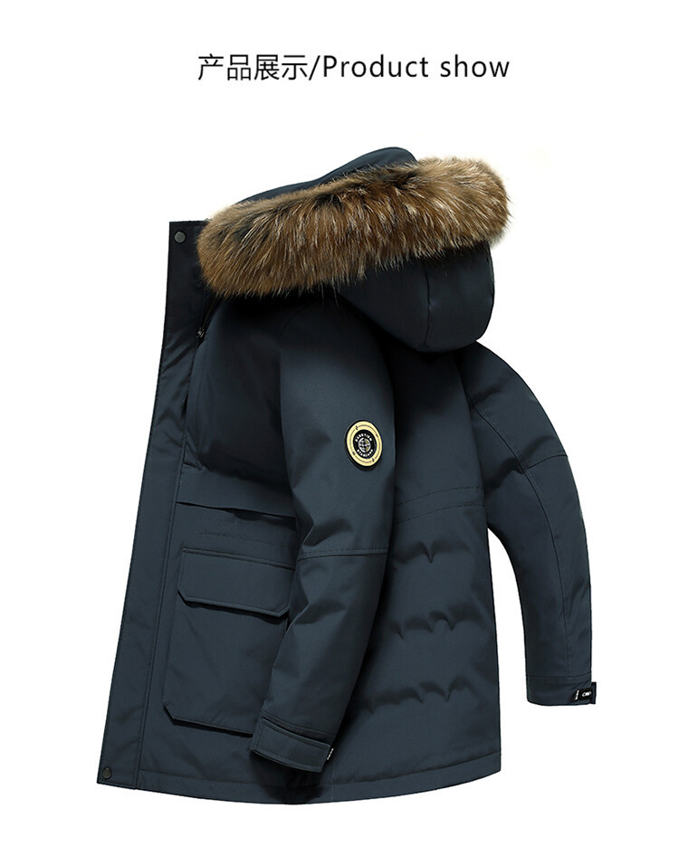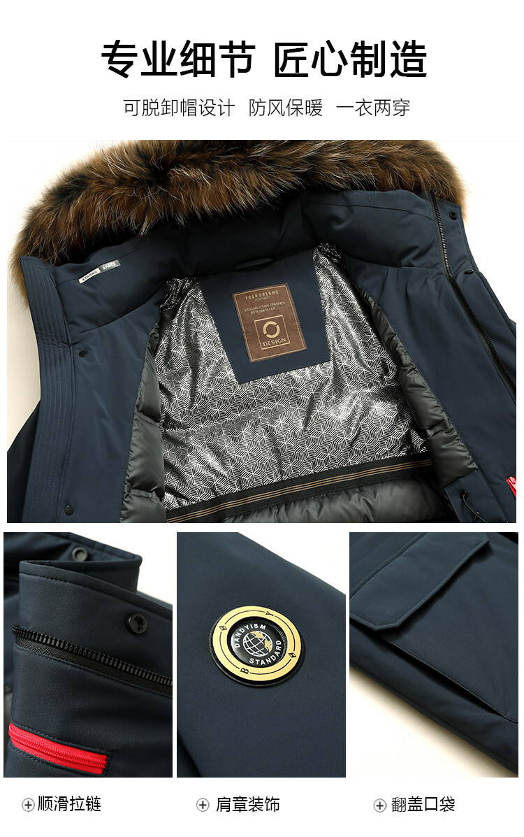 【极寒鹅绒】高端冬季羽绒服男士貂毛领户外派克风中长款保暖外套