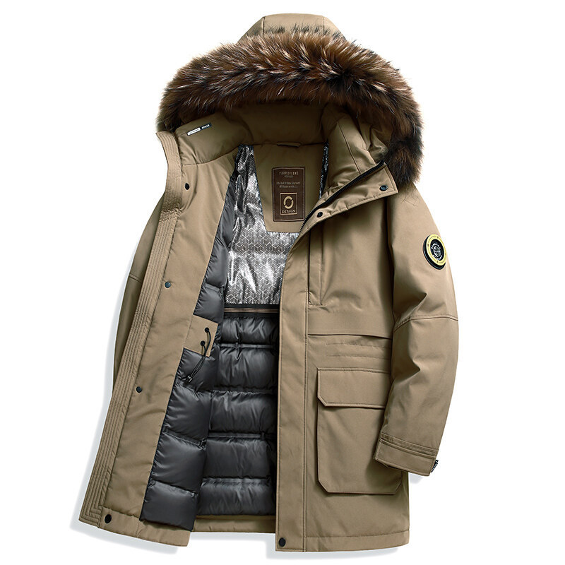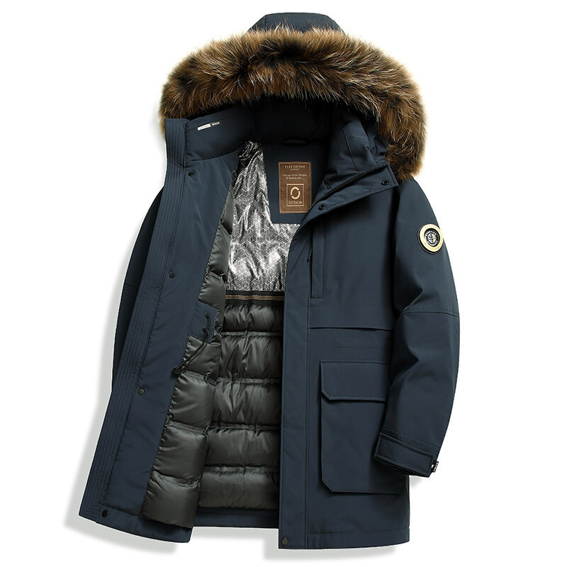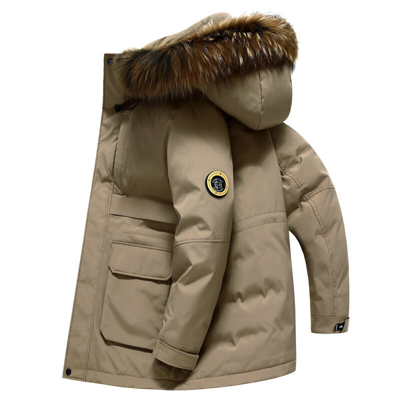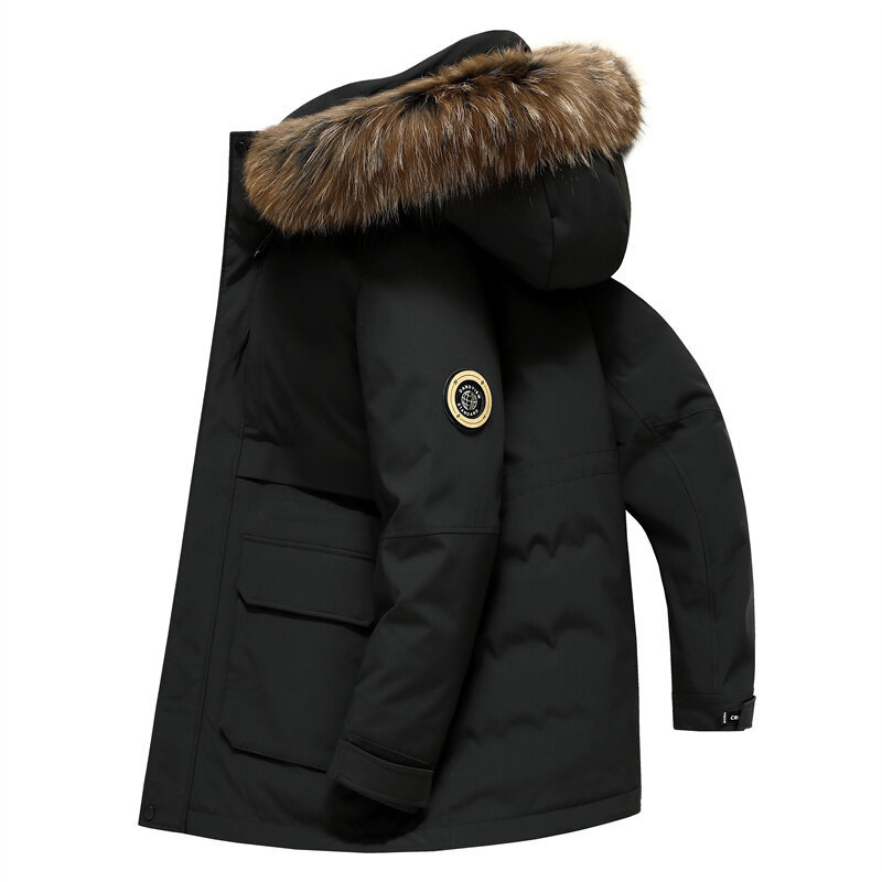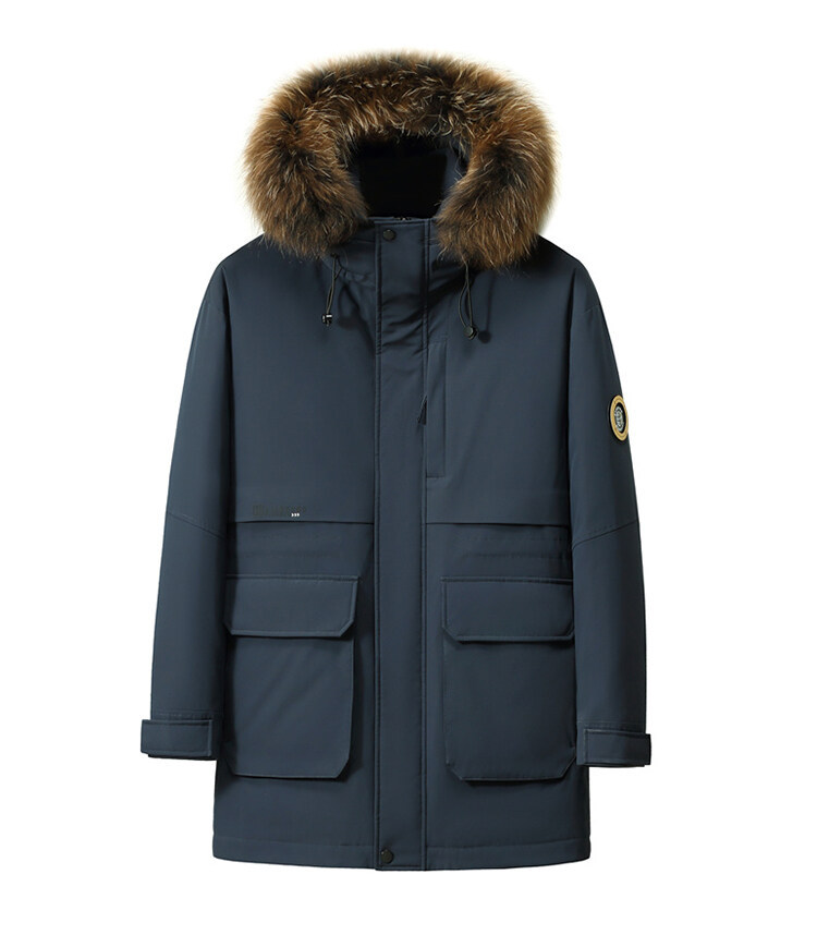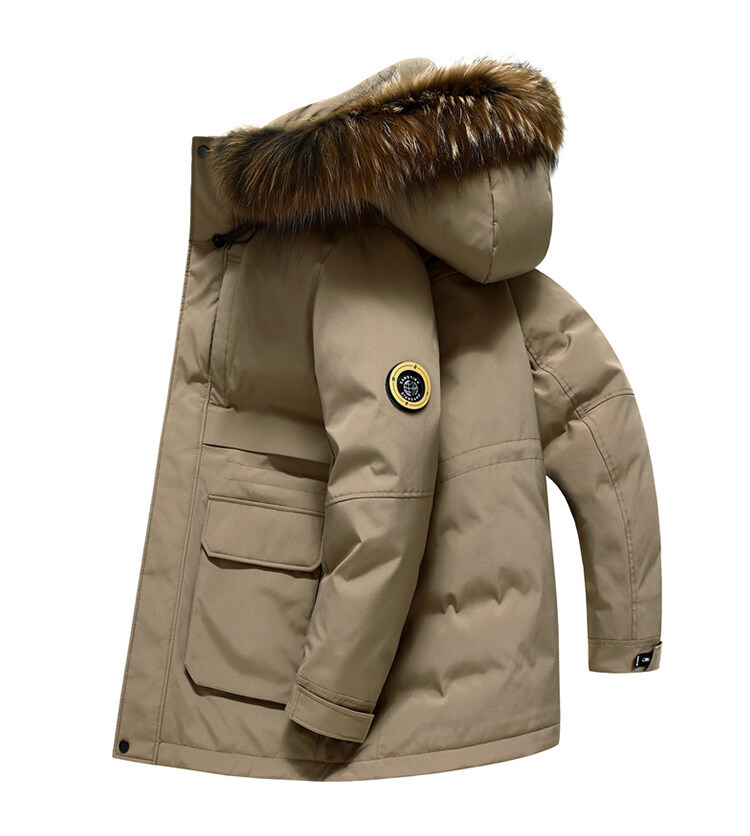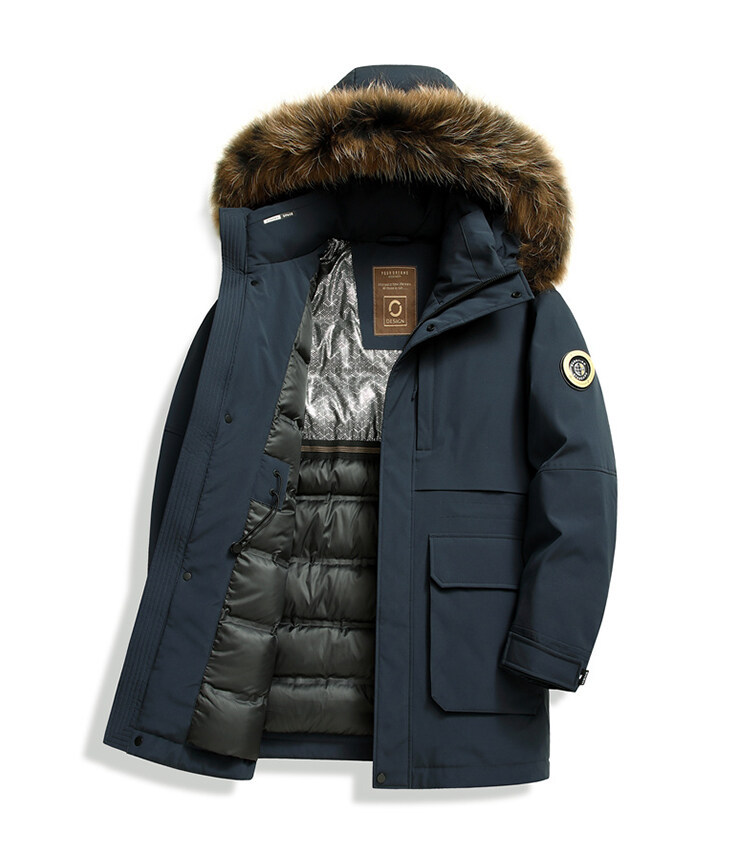 【极寒鹅绒】高端冬季羽绒服男士貂毛领户外派克风中长款保暖外套