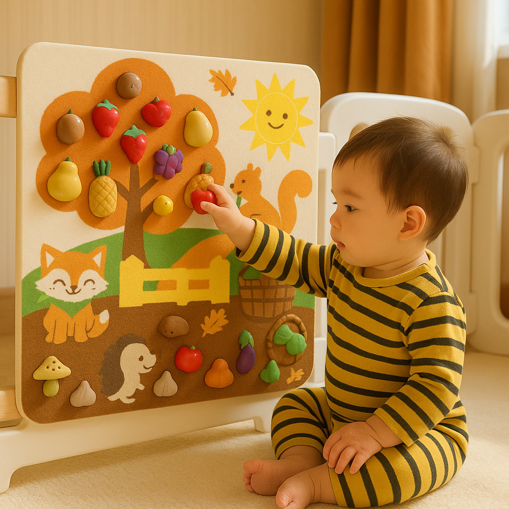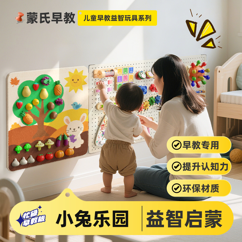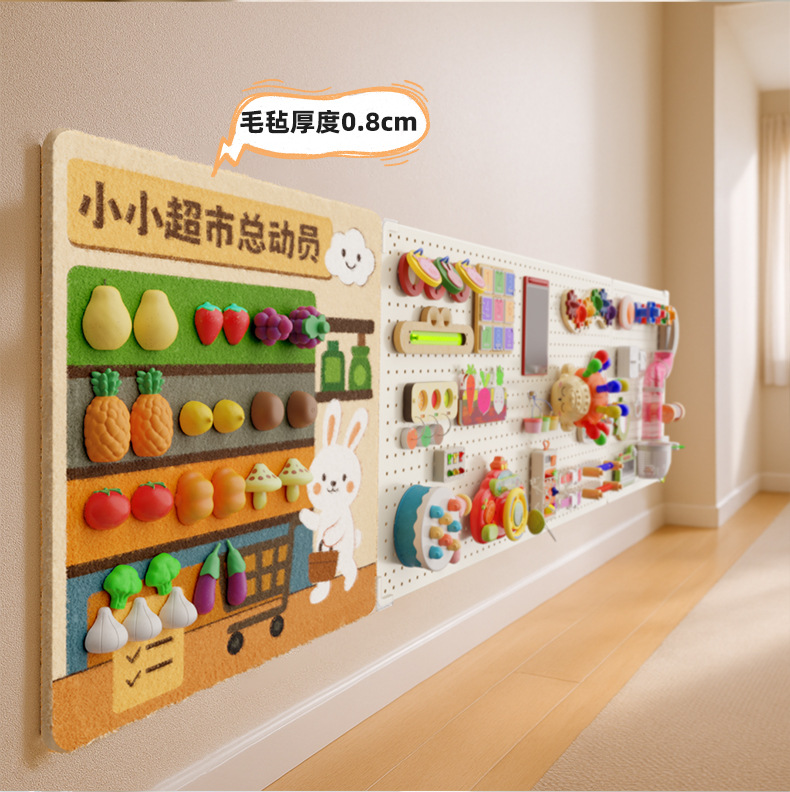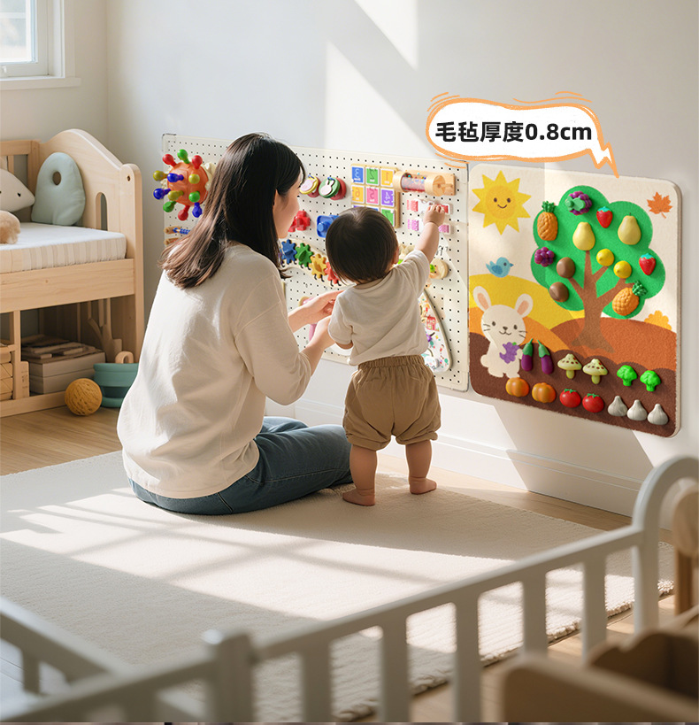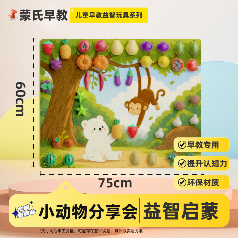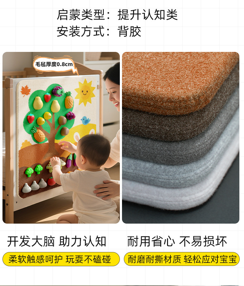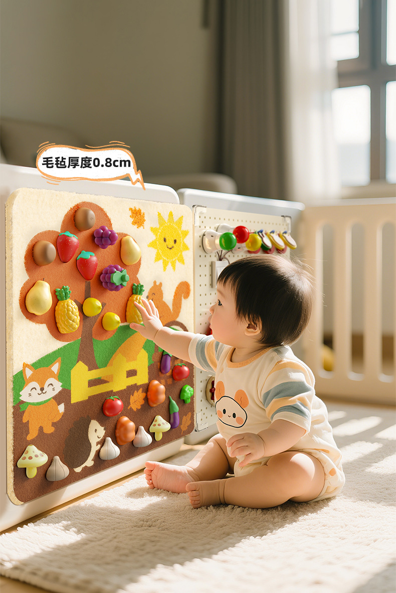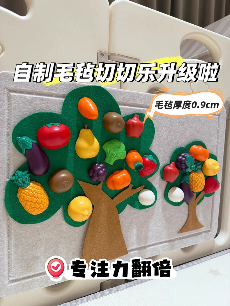 跨境宝宝早教益智毛毡板水果切切乐忙碌板免打孔毛毡学习板安静书