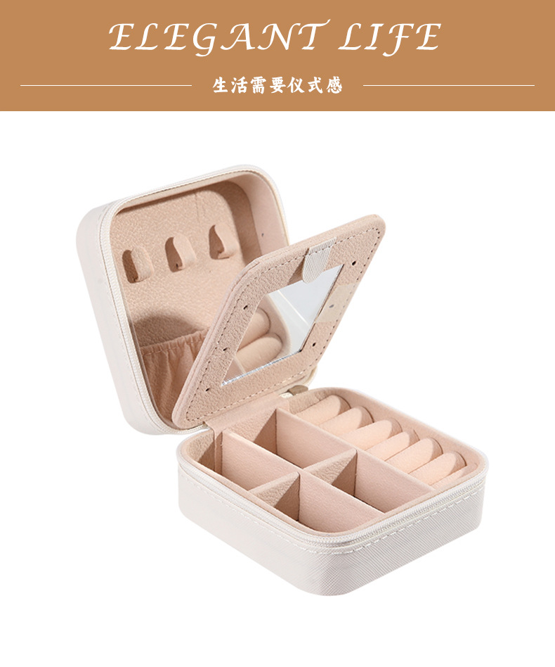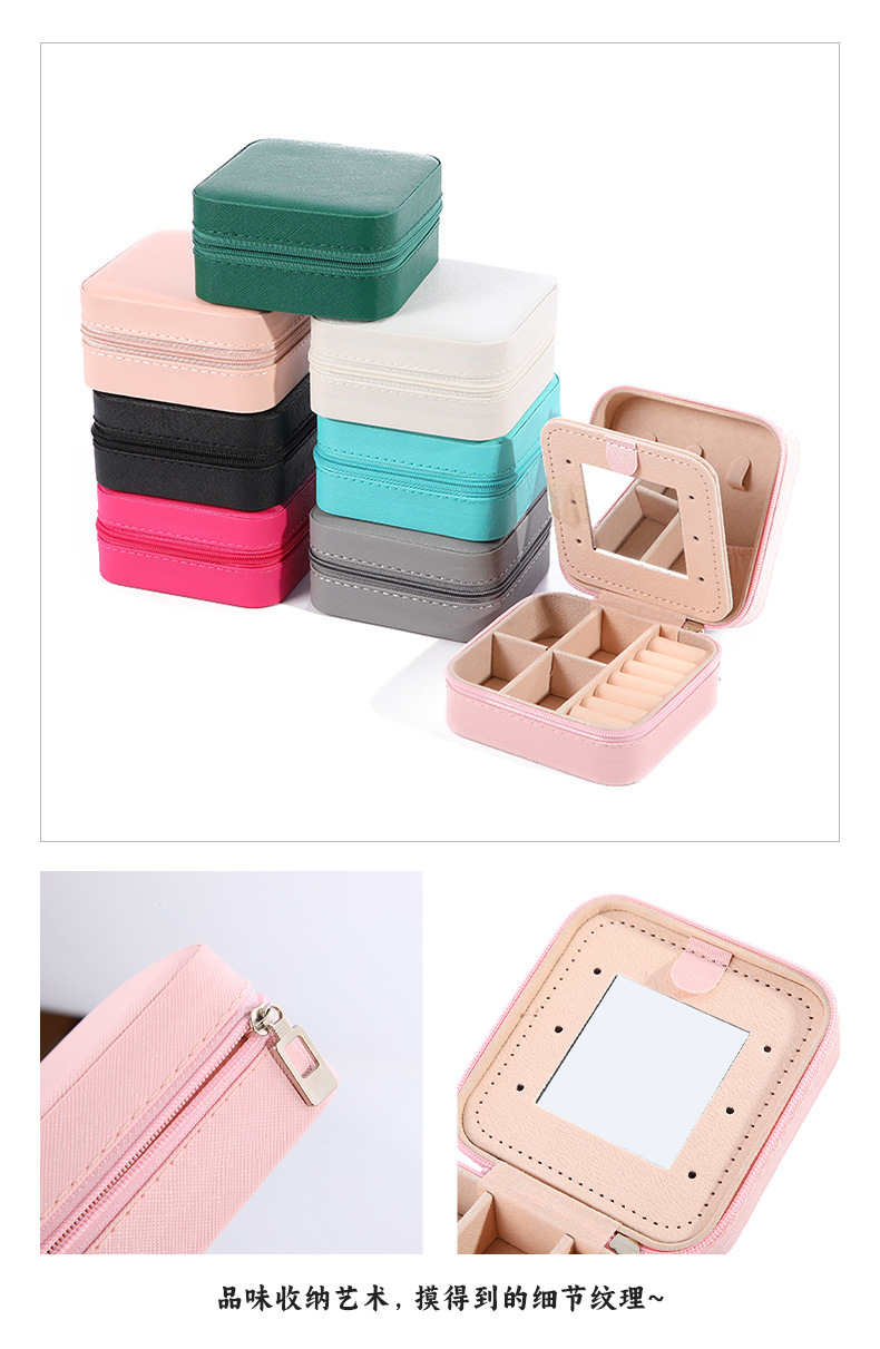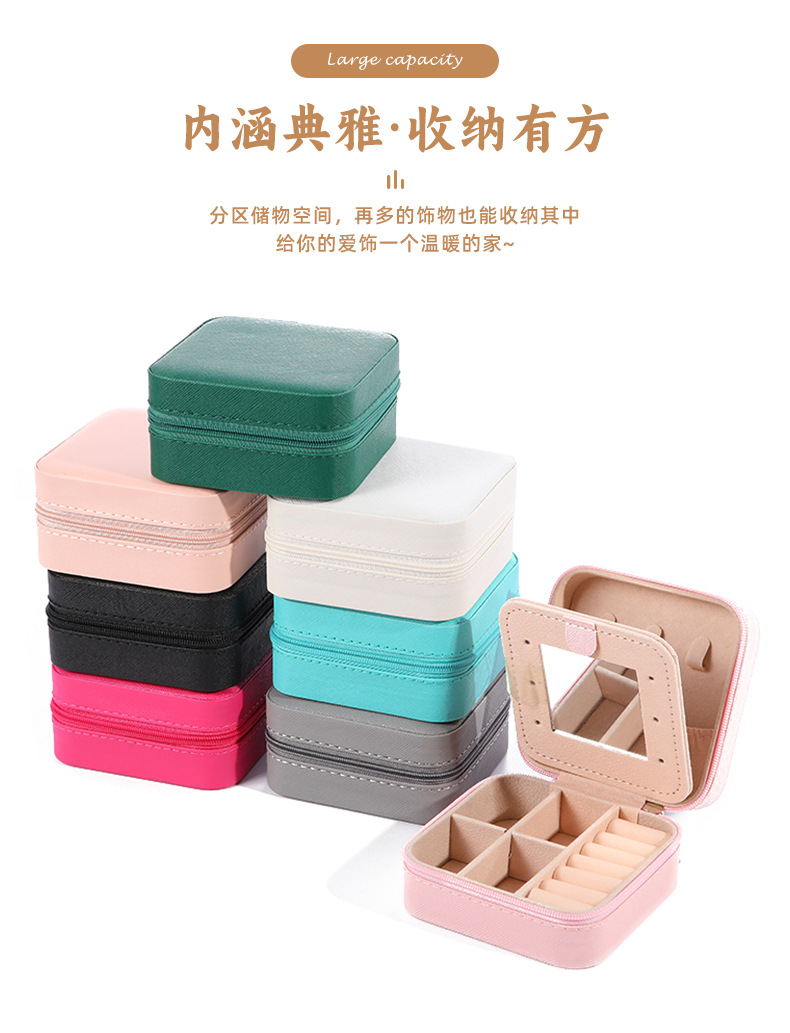 简约多色便携首饰盒项链耳环饰品收纳盒自带镜子现货批发厂家直销