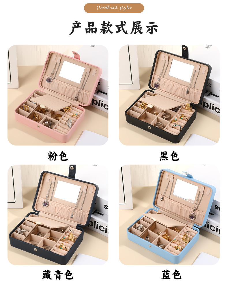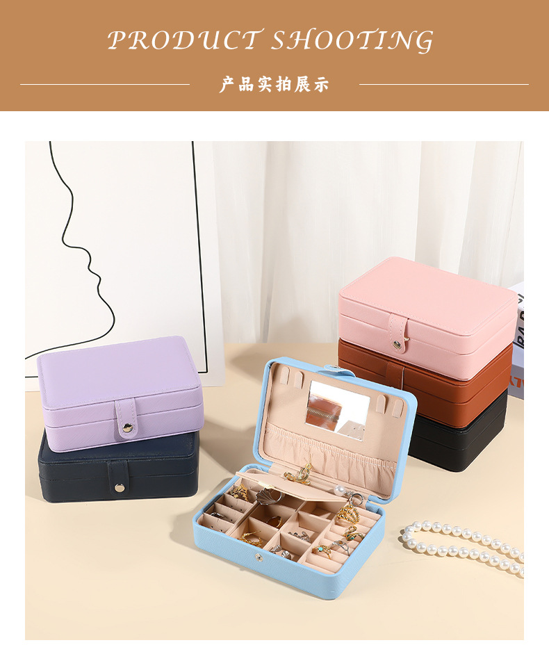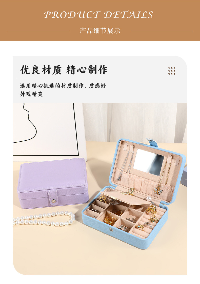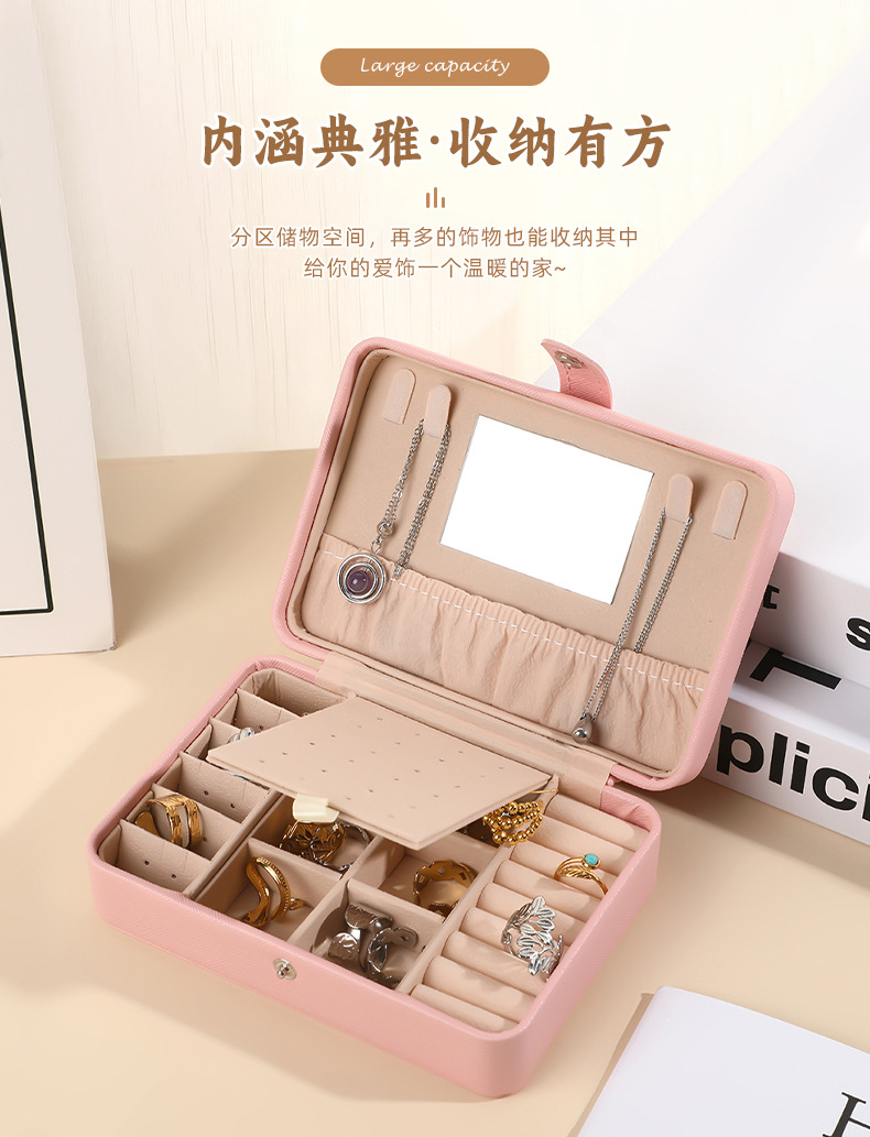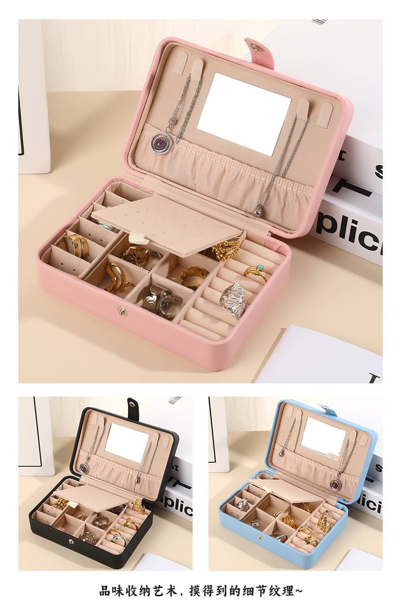 时尚PU皮质首饰盒带镜子项链戒指收纳盒轻奢按扣首饰包装盒批发
