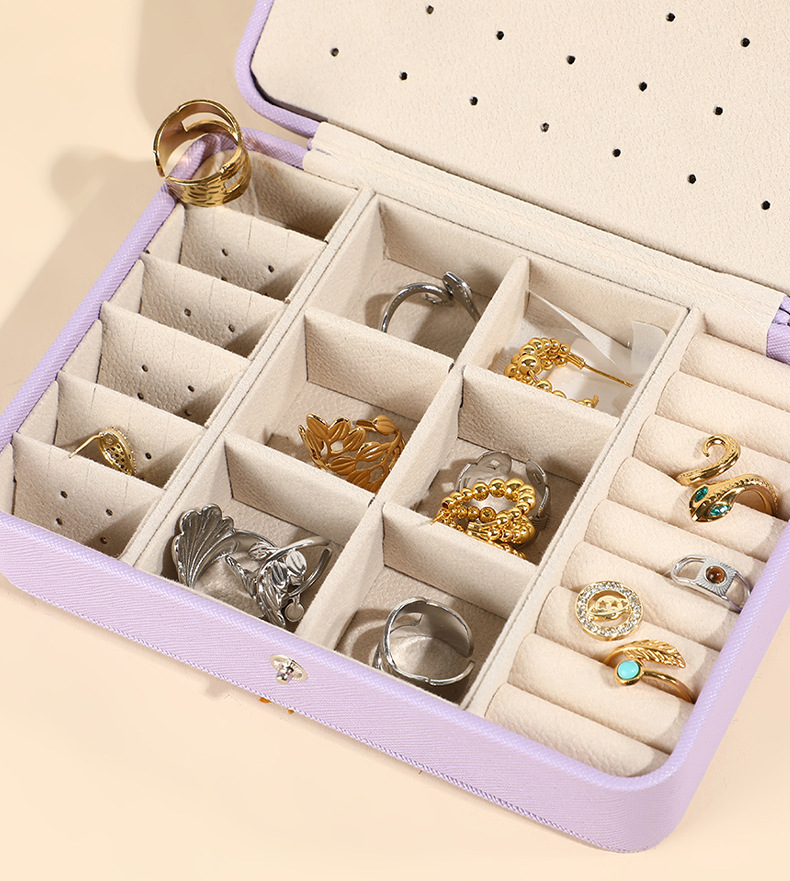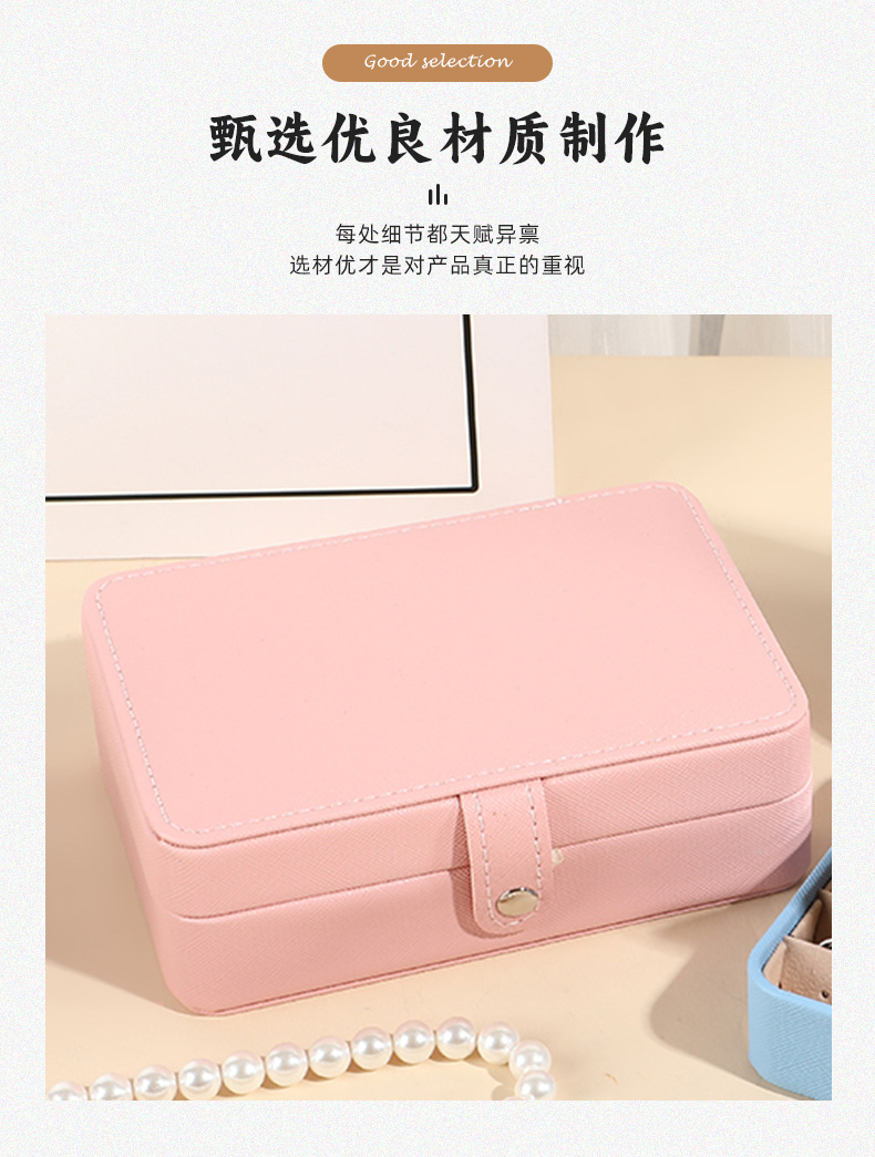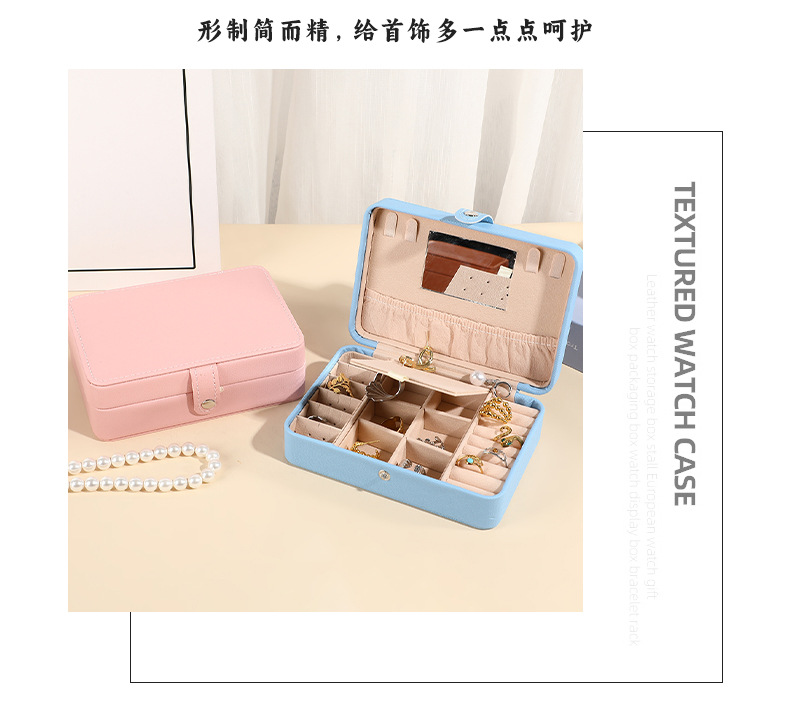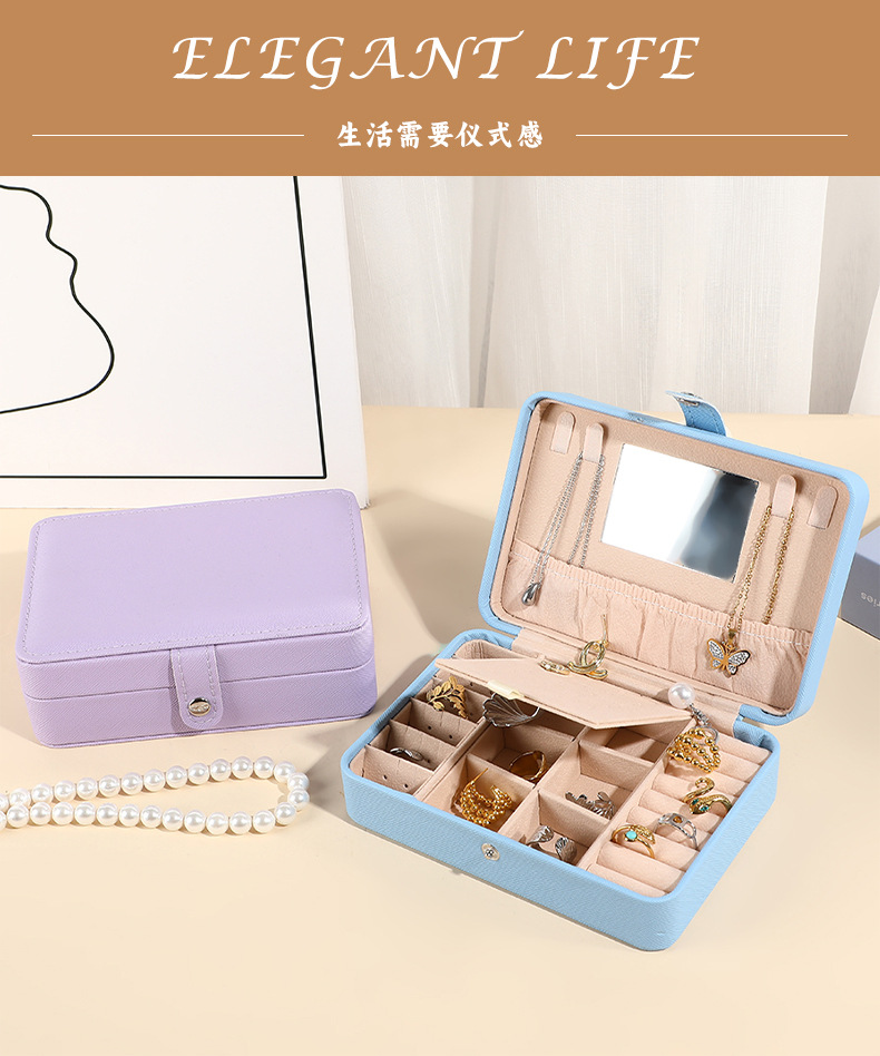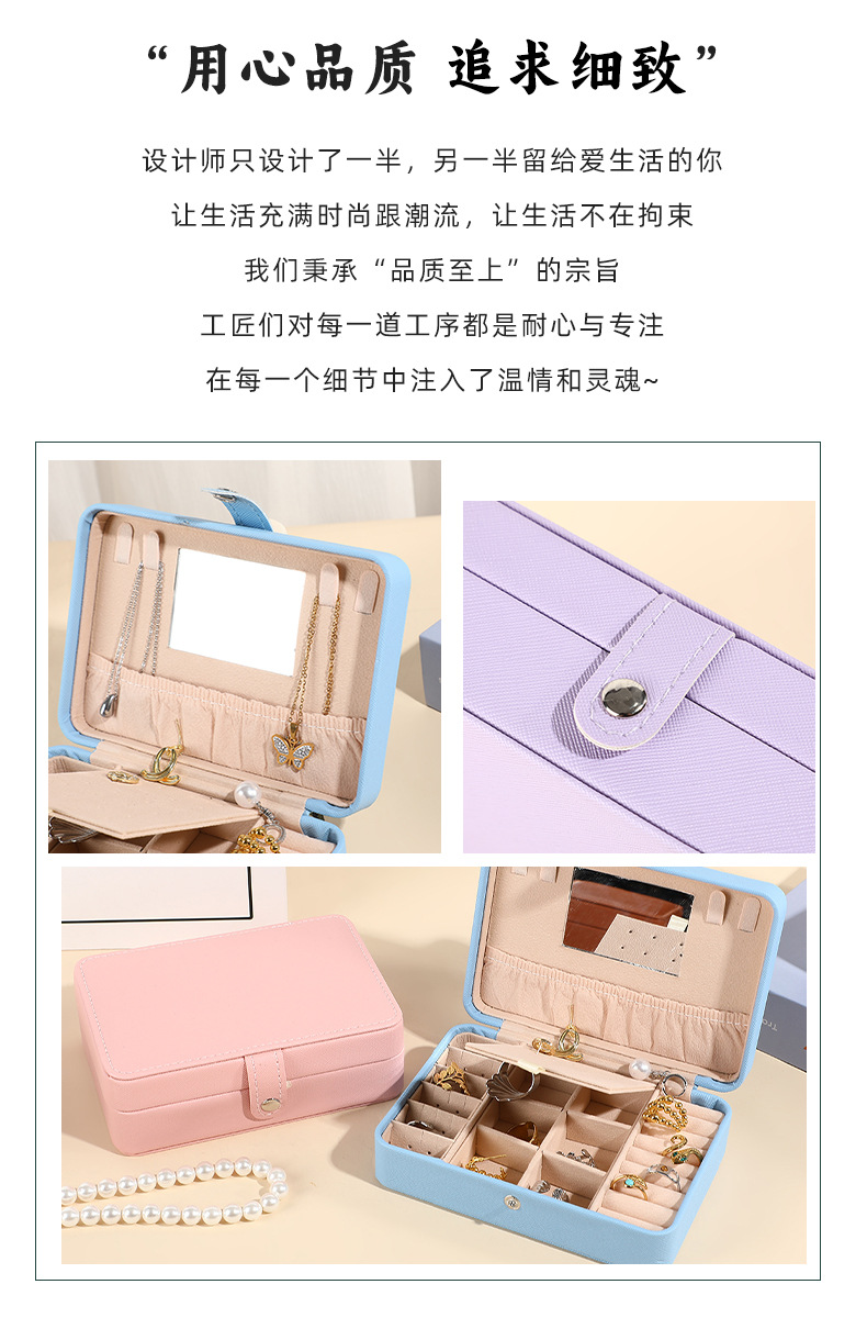 时尚PU皮质首饰盒带镜子项链戒指收纳盒轻奢按扣首饰包装盒批发