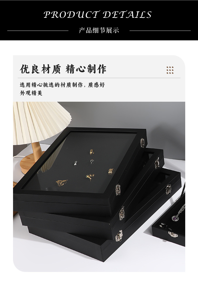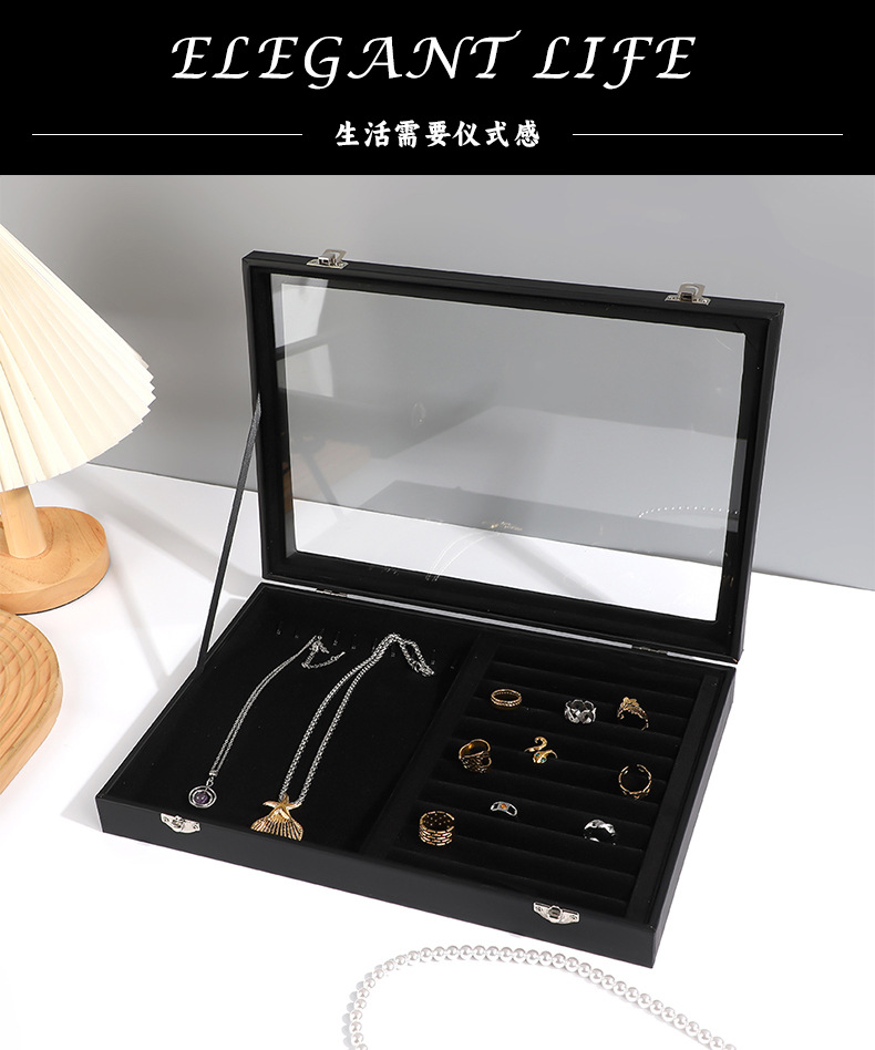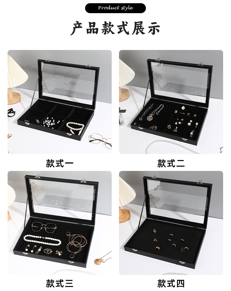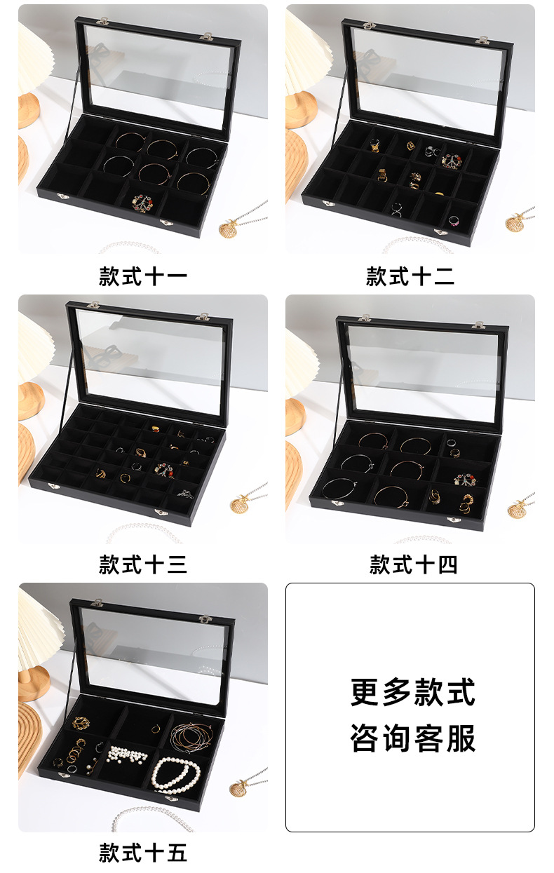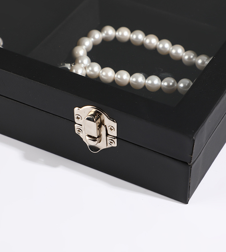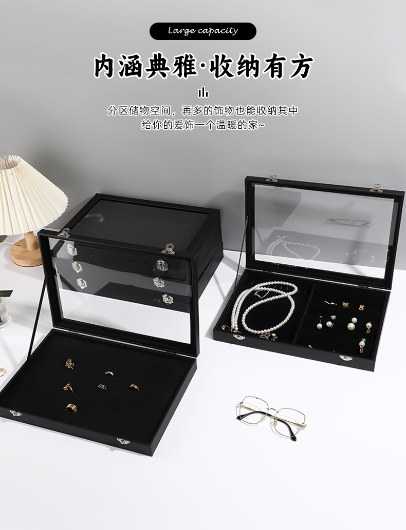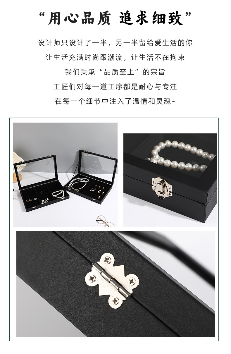 首饰包装盒透明可视戒指项链收纳盒家用pu简约黑色饰品包装盒批发