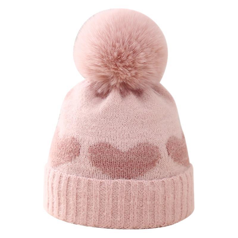 2024新款冬季婴儿帽子双层加厚提花爱心针织帽0-12月新生儿毛线帽