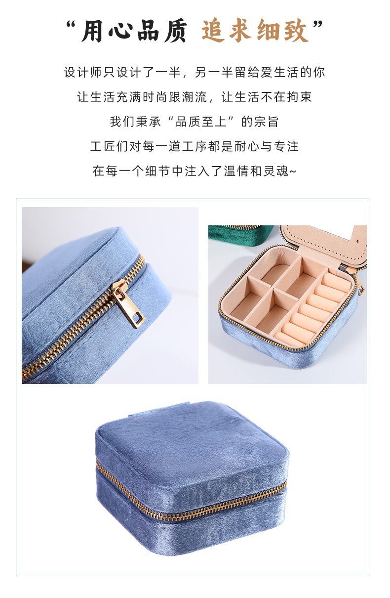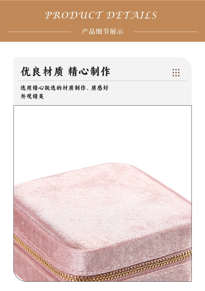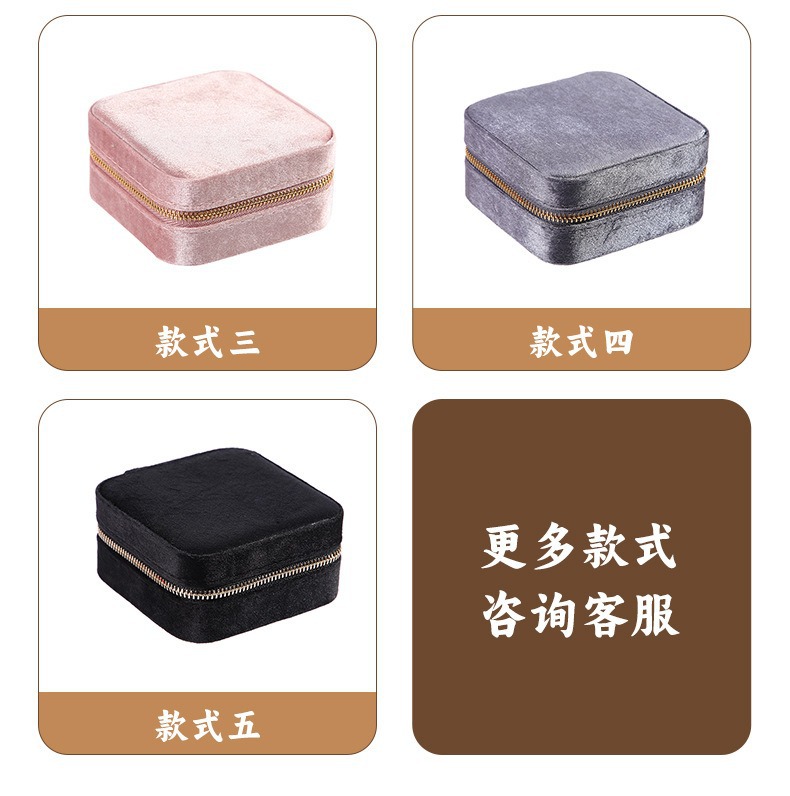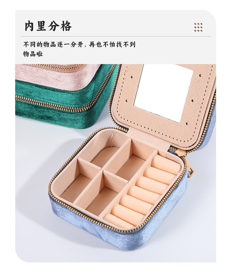 毛绒带镜子方形首饰盒简约便携首饰收纳盒时尚项链饰品收纳盒批发