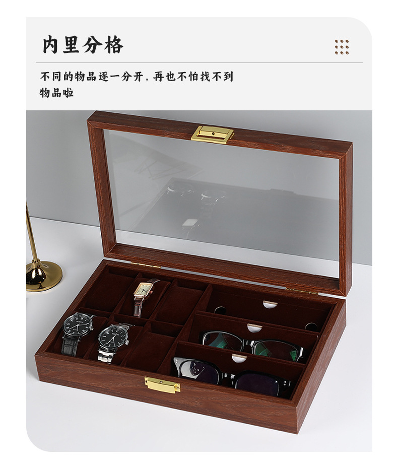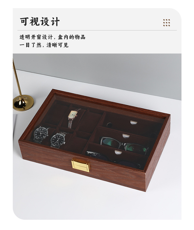 新款复古木纹手表盒时尚玻璃天窗首饰收纳盒高质量手表收藏展示盒